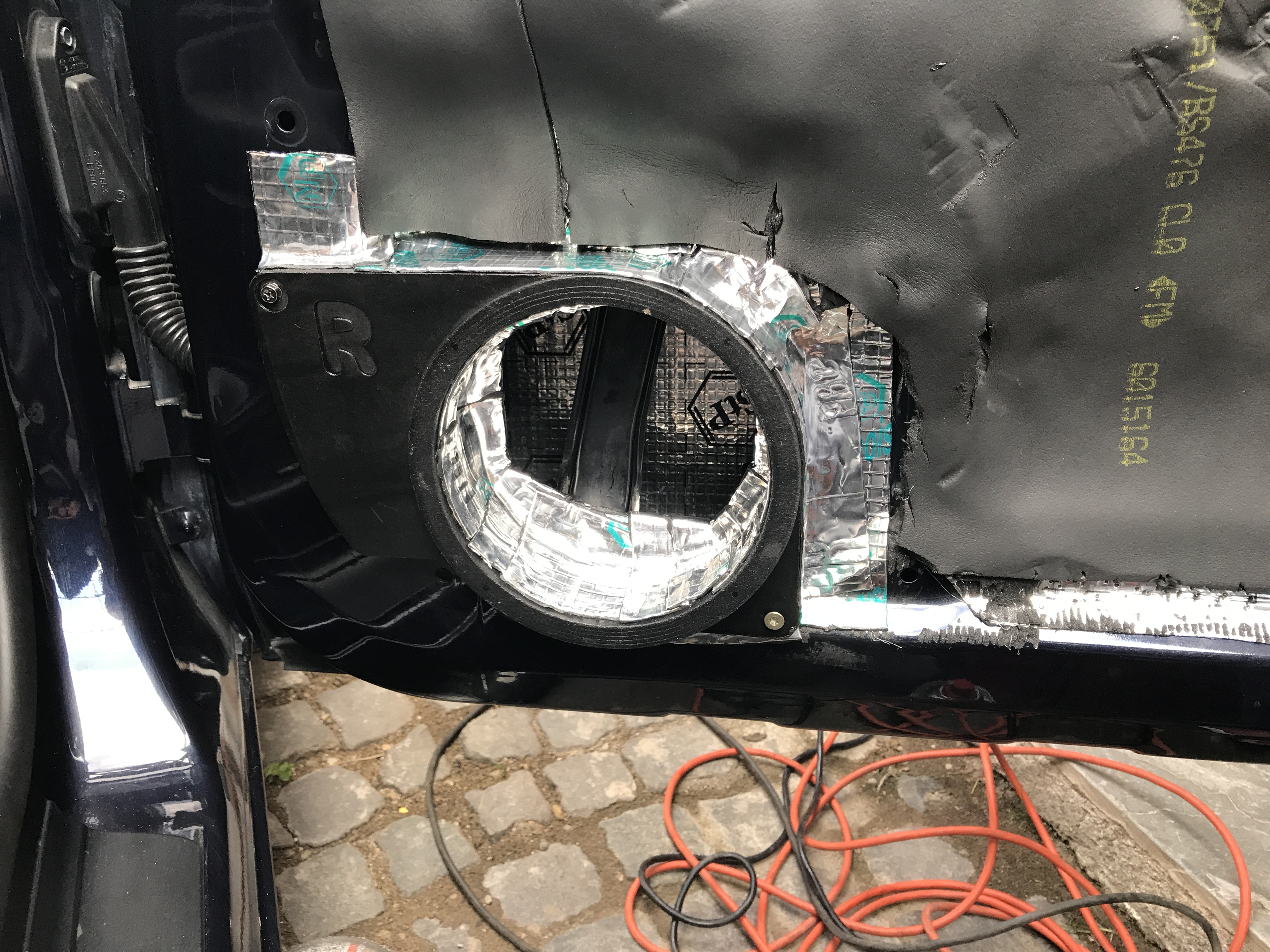 Kedze som rozmaznany predoslymi Audinami, tak mi logicky chybali iste veci v mojom bmw... Medzi ne patrilo aj napriklad osvetlenie zeme z dveri a rovnako tak vystrazne cervene svetlo, ktore upozorni na otvorene dvere. Audi tam ma svetla, Skoda tam ma odrazky a bmw tam nema nic... takze som sadol na net a objednal set svetiel pre audi, zobral orezavatko a 3 hodiny sa hral s tapacirmi, nasledne som natiahol kable z kabiny cez prechodky dveri a vsetko napojil. Vysledok je OEM look ktory tam mal byt uz od vyroby.