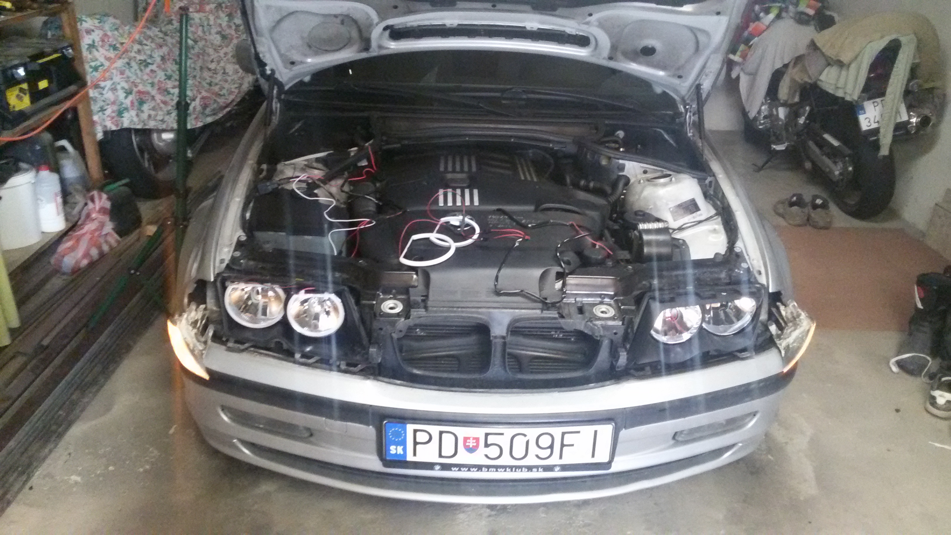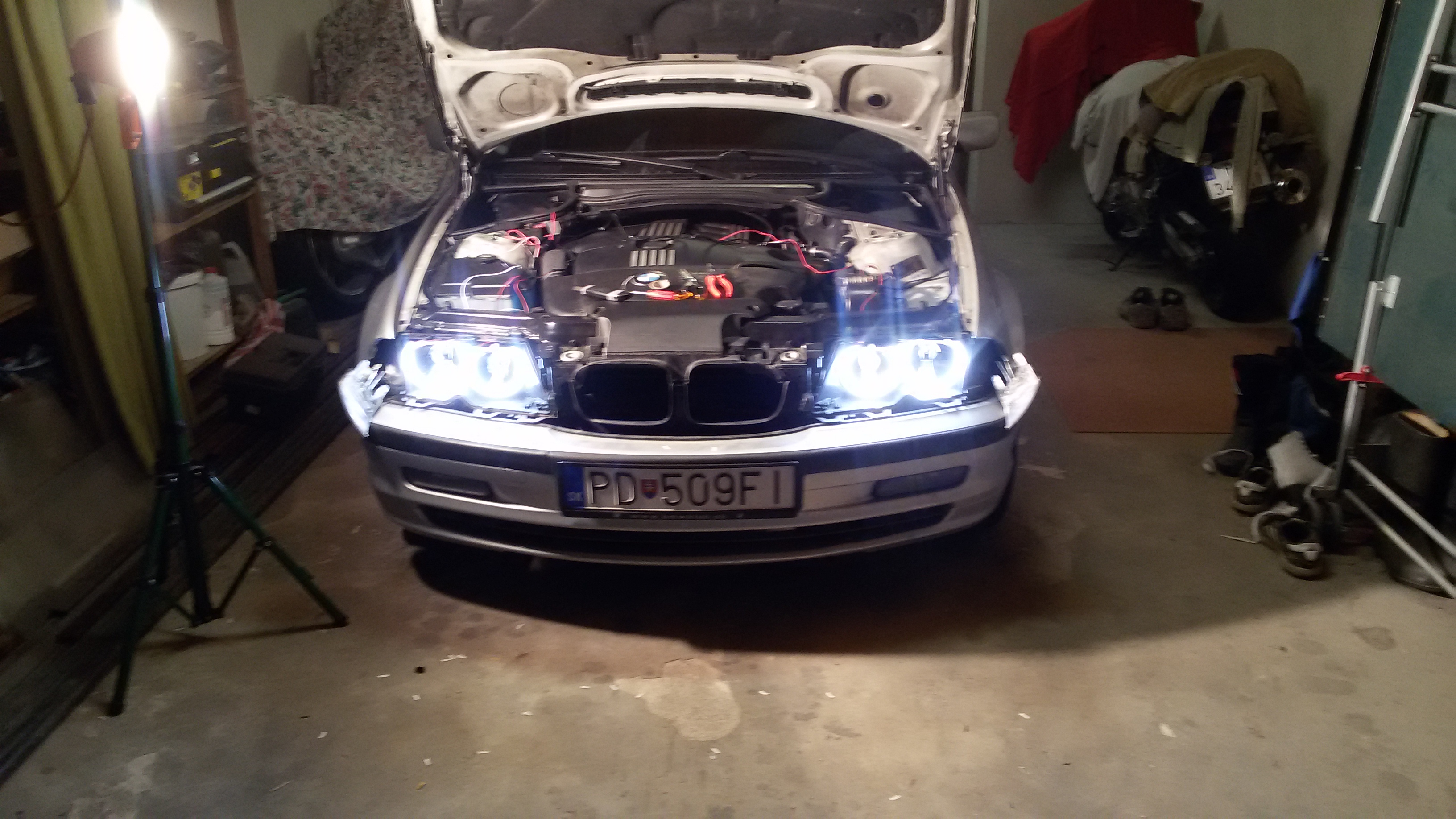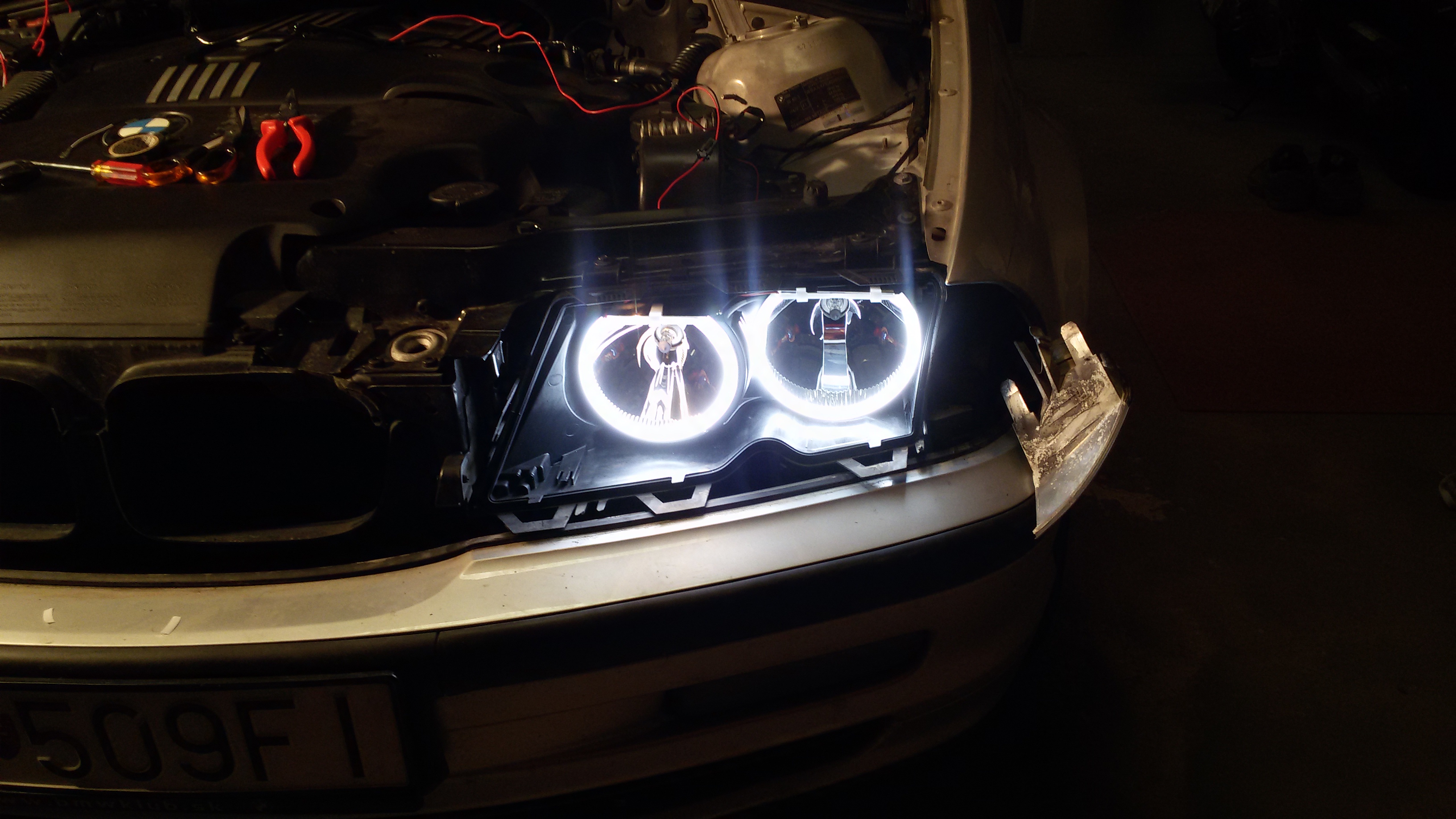 Tak po 4 hodinkách mám konečne pozapájané Angel eyes kružky , svietia pekne , som spoko O:). Došla aj záslepka na egr to bola pár minútová zaležitosť až na moju šmantlavosť že mi padol kľuč aj šróbik cez motor až na spodný kryt. Tak som si musel zhodiť aj ten a vybrať to z tade :lol: :lol: . Mám 100 kw nemalo by hlásiť žiadnu chybu tak som zvedavý.
