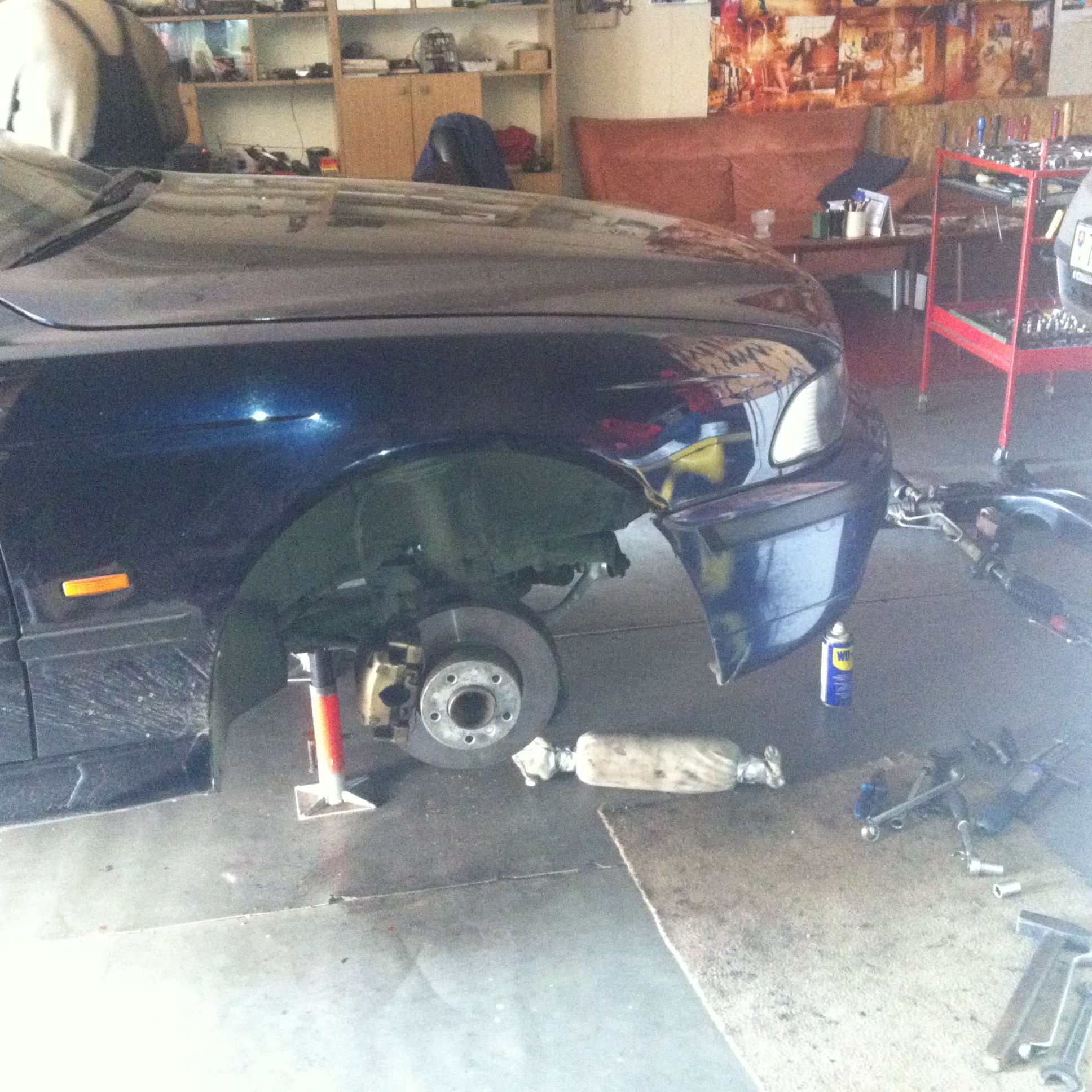 menila sa aj predná náprava. nebolo to nejako nevyhnutné ale boli tam nejaké vôle a aj pri brzdení z vyšších rýchlostí mierne triaslo volantom. rozhodol som sa pre komponenty od TRW. ak to vydrží aspoň polovicu z toho čo predošlé diely budem rád. Vyzeralo to tak , že ramená boli pôvodné. ako na potvoru ,alebo našťastie pár dní pred tým ako som to dal do servisu sa mi odtrhlo lanko prednej kapoty, tak sa spravilo už aj to jedným vrzom. Dokonca sa mi podarilo prehovoriť mechanika aby mi nastriekal ramená stieračom pokiaľ bolo auto u neho. neviem prečo ale boli špatne ošúchané. Keď som prišiel skontrolovať Dee Dee ako sa jej darí pri výmene, ostal som vyhúkaný. Mechanik mal väčšinu práce za sebou tak umýval podblatníky a kryt motora od bordelu. To som teda ešte nevidel veru, aby mechanik čistil niečo čo ani neušpinil.