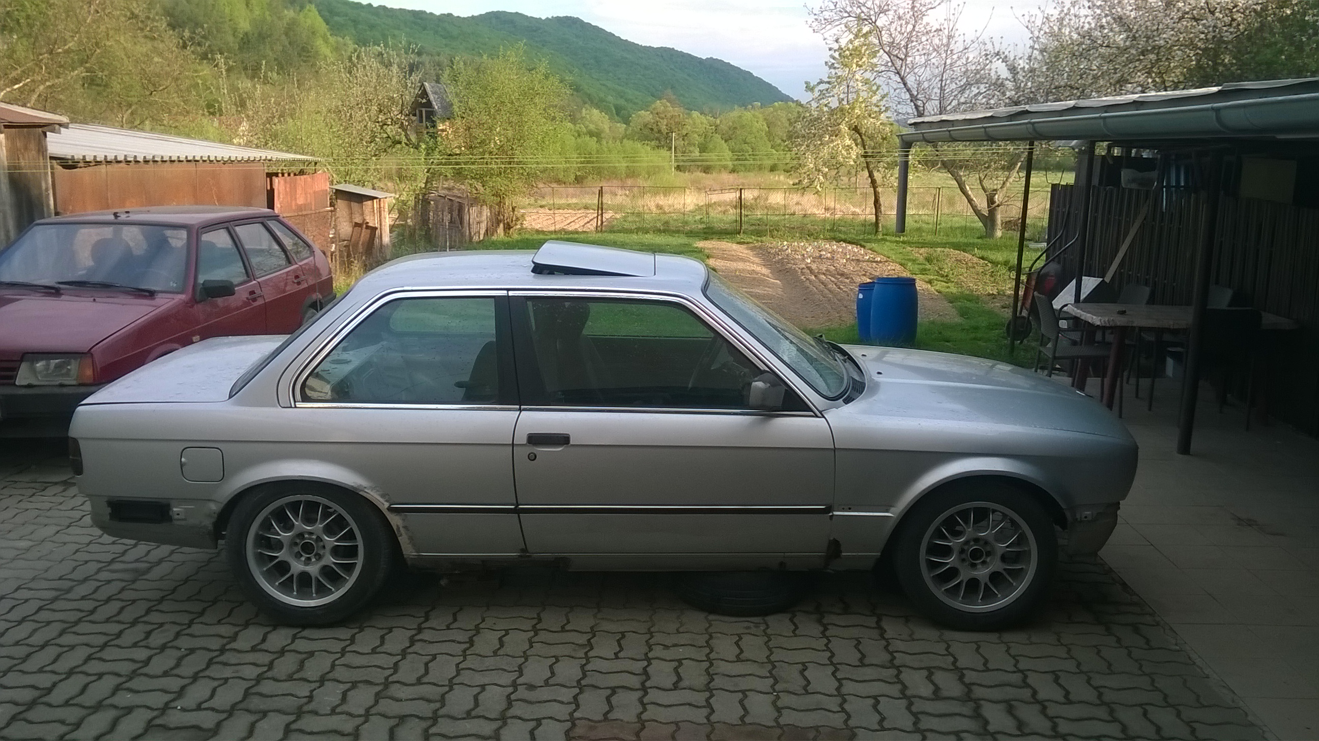 Tak zdravím vás, som tu novy a chcem vám predstaviť moje Bmw e30 coupe, ktoré som si kúpil začiatkom roka 16.1.2015 . Auto sa kúpilo takto, že kamoš chcel vymeniť škodu superb za e39 530d, ale keďže sa mu to nepodarilo, tak sme rozmýšľali čo teraz. Tak sme šli na bazoš a pozreli sme čo je na predaj v blízkosti Prešova. Chcel som stále e30 a tak sme jednu našli e30 zelený sedan m40b16. Tak sme šli pozrieť. Keďže bola zima, tak m40 ani necekla (grin) ,ale vravel že ma na predaj ešte jednu e30 coupe, chromak ,motor tam bol m30b35, interiér bol vyhadzany,žiadna kabelaž,rozsekana benzínová nadrž a kopec veci ktoré chýbali. Keďže to chcel predať aj bez motora, tak mi to dal za smiešnu cenu. Auto ma tp,spž, palubovku mi pridal k tomu, na aute boli zadne tlmiče bilstein, a auto ma hlavne ma šiber