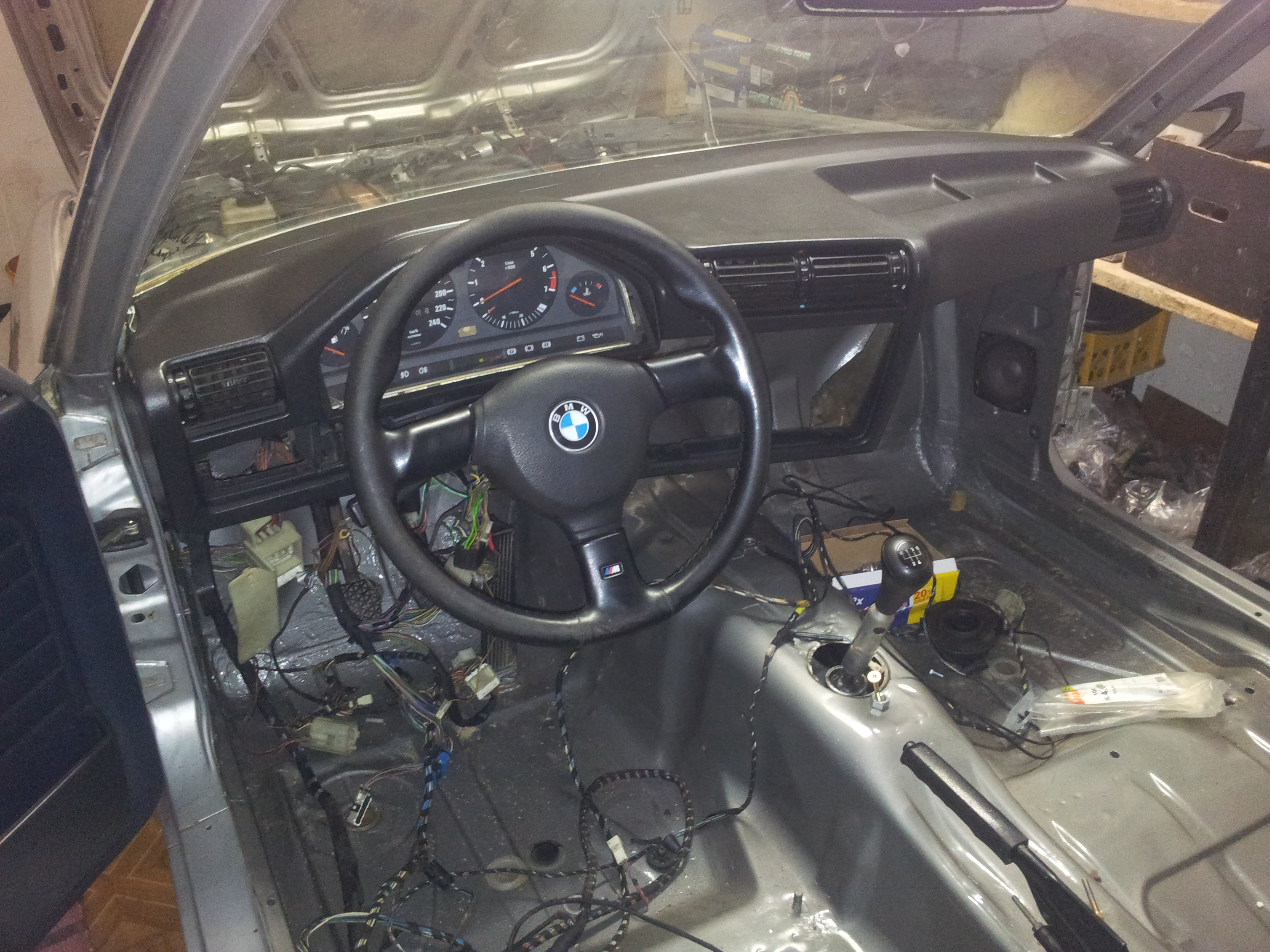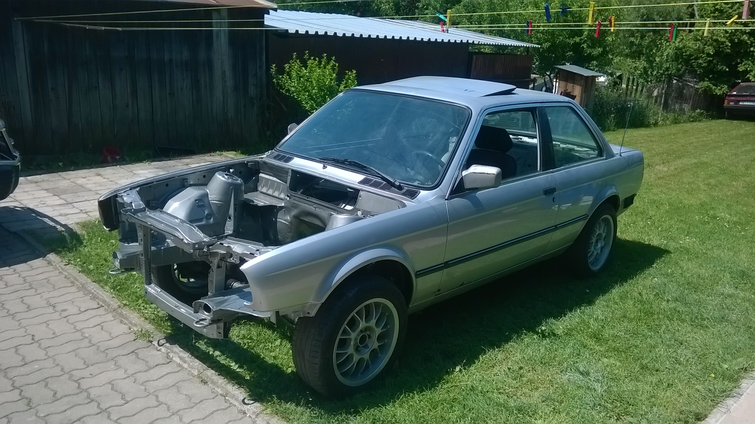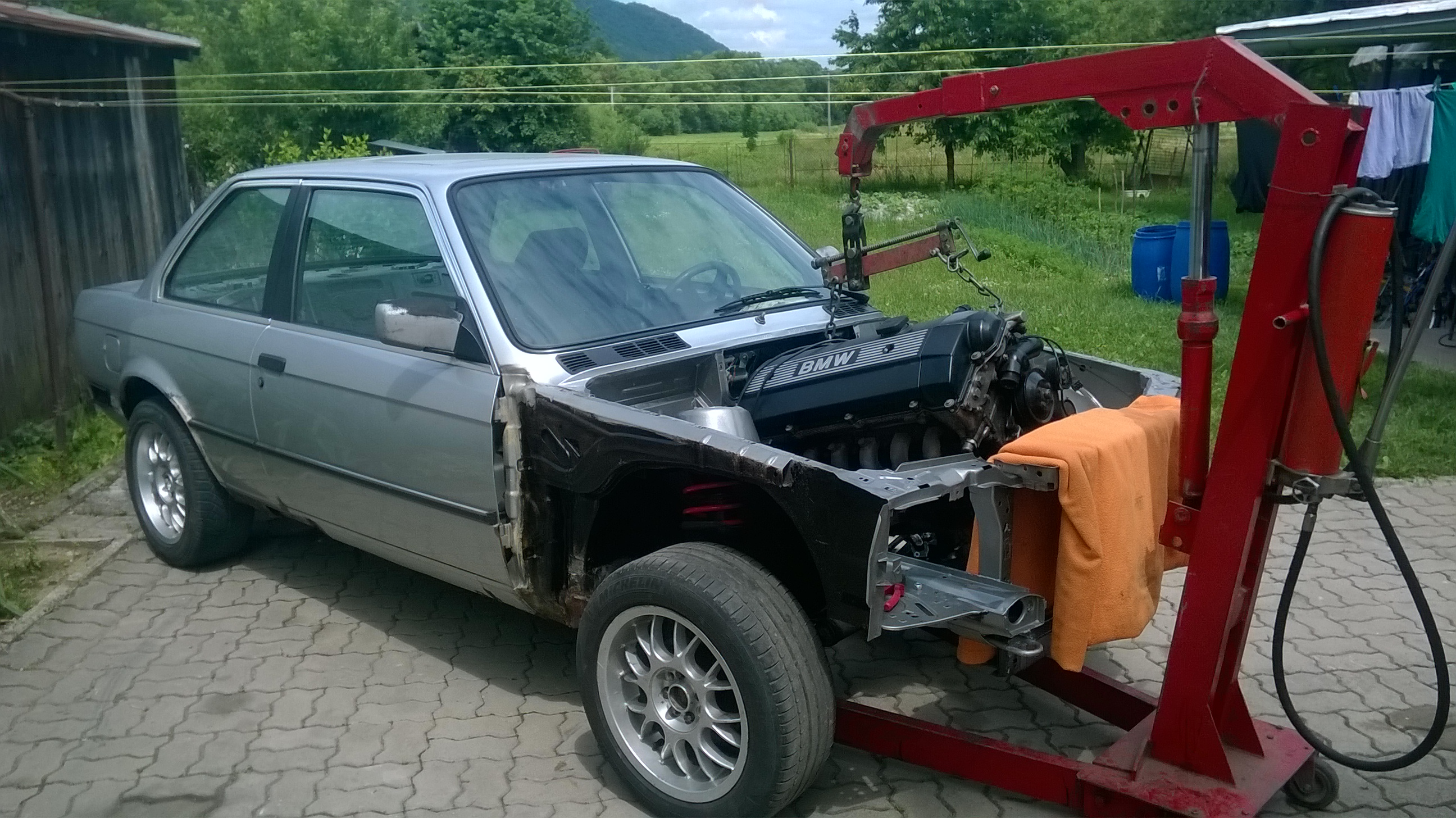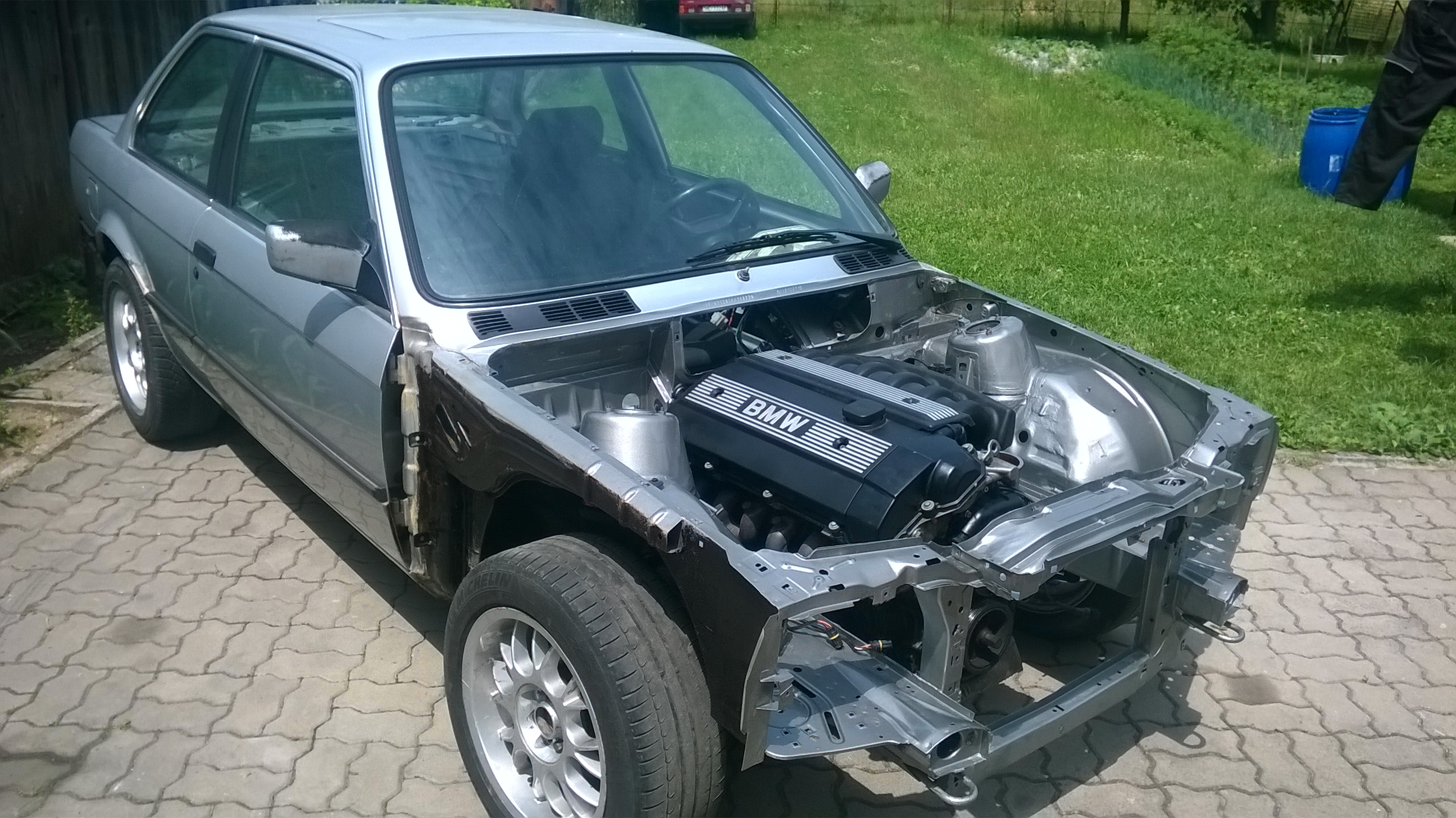 .Na motore som vymenil olejovú vaňu z m40 aby pasovalo na e30 napravu, taktiež som vymenil držiaky motora, ktoré tiež boli z m40. Motor som očistil, opieskoval sa ventil dekeľ, vymenili sa snimače, tesnenie na sani atď. Začal som si sam vyvárať spolujazdcovu stranu, podbeh sa porieši koncom leta pri striekani kompletneho auta. Keď som chcel montovať motor do auta, tak som ho hodil na bazoš za 200€ a motor sa hneď predal, tak následné som šiel kupiť m52b20 z e36 automat, motor mal nabehane 168000km, motor šiel ako z vyroby