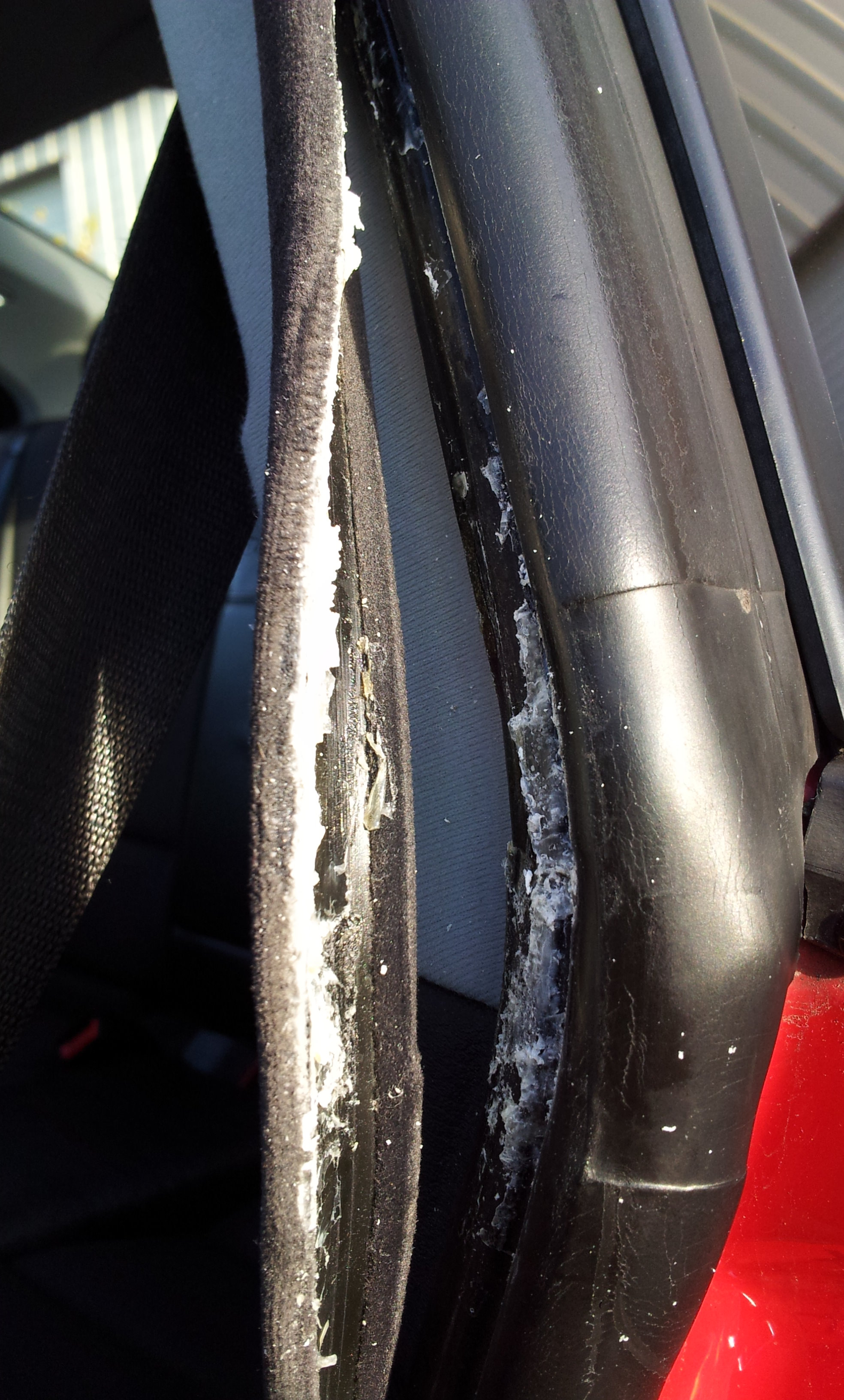 No a ja som sa medzičasom pustil na odlepené tesnenie okolo dverí. V podstate len na skúšku, ako to bude držať. Kúpil som nejaké lepidlo od Pattexu, vypadalo dobre taká gelová konzistencia, je flexibilné a priehladné, vypadalo, že by to mohlo chytiť. Na vodičovej strane sa mi to odliepalo na dvoch miestach, hore a klasika na boku kde zacínajú dvere a je tam ten ohyb. Naneštastie sa s tým už niekto hral a teda...moc som nebol potešený, nakoľko tam bola vražedná kombinácia sekundového lepidla a bieleho silikónu