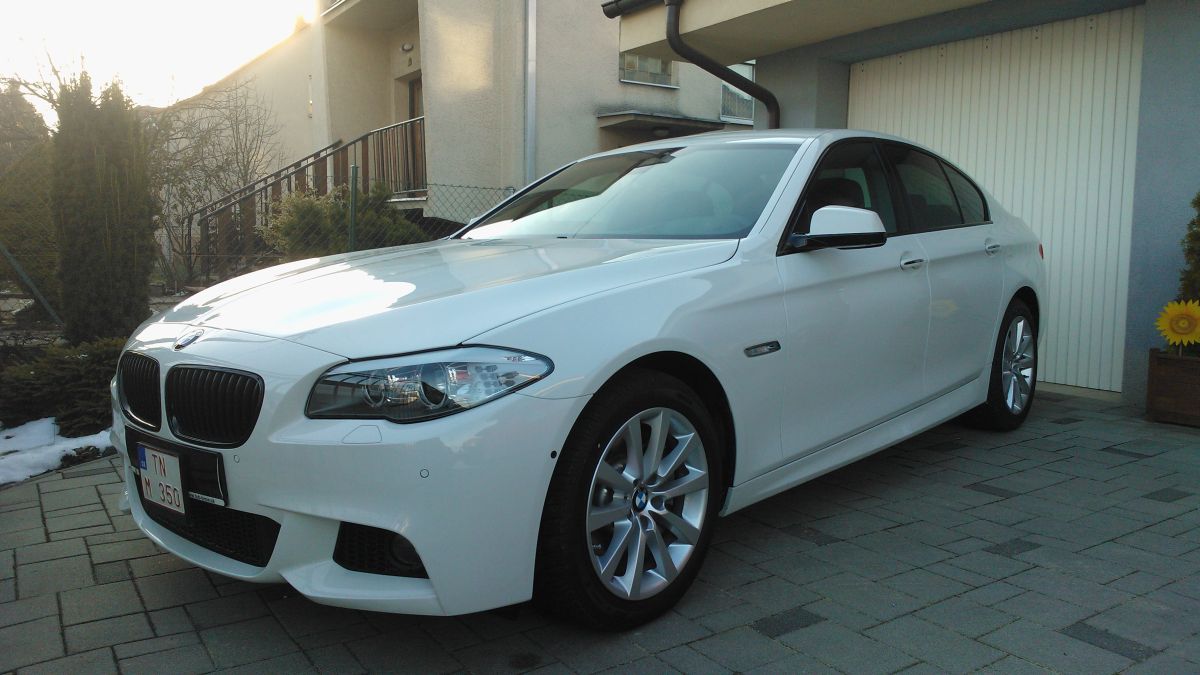 Ako BMW fan vlastniaci už nejaké tie kúsky (E46, E53) som samozrejme vždy pokukoval po nových modeloch. Začalo to tým, že som mal ponuku na krásnu (novú) X5 4.0d Individual, aj som ju bol pozrieť a medzi rečou som sa opýtal, či nemajú náhodou nejakú jazdenú F10 pre manželku. Mali: 535d (Alpinweis, M paket) v celkom dobrej výbave aj cene. Ale kým som sa vykýchal ísť ju pozrieť, bola fuč. A už som mal chrobáka v hlave. A tak to aj skončilo. Pustil som konfigurátor a vyklikal svoju 535. Lenže... 535d xDrive neboli schopní súdruhovia z NDR vyrobiť do konca roku (čo bola podmienka), tak som zobral 530d - rozdiel v cene som šupol do ďalšej výbavy. Auto som bol zobať tesne po vianociach. A výsledok je tu: