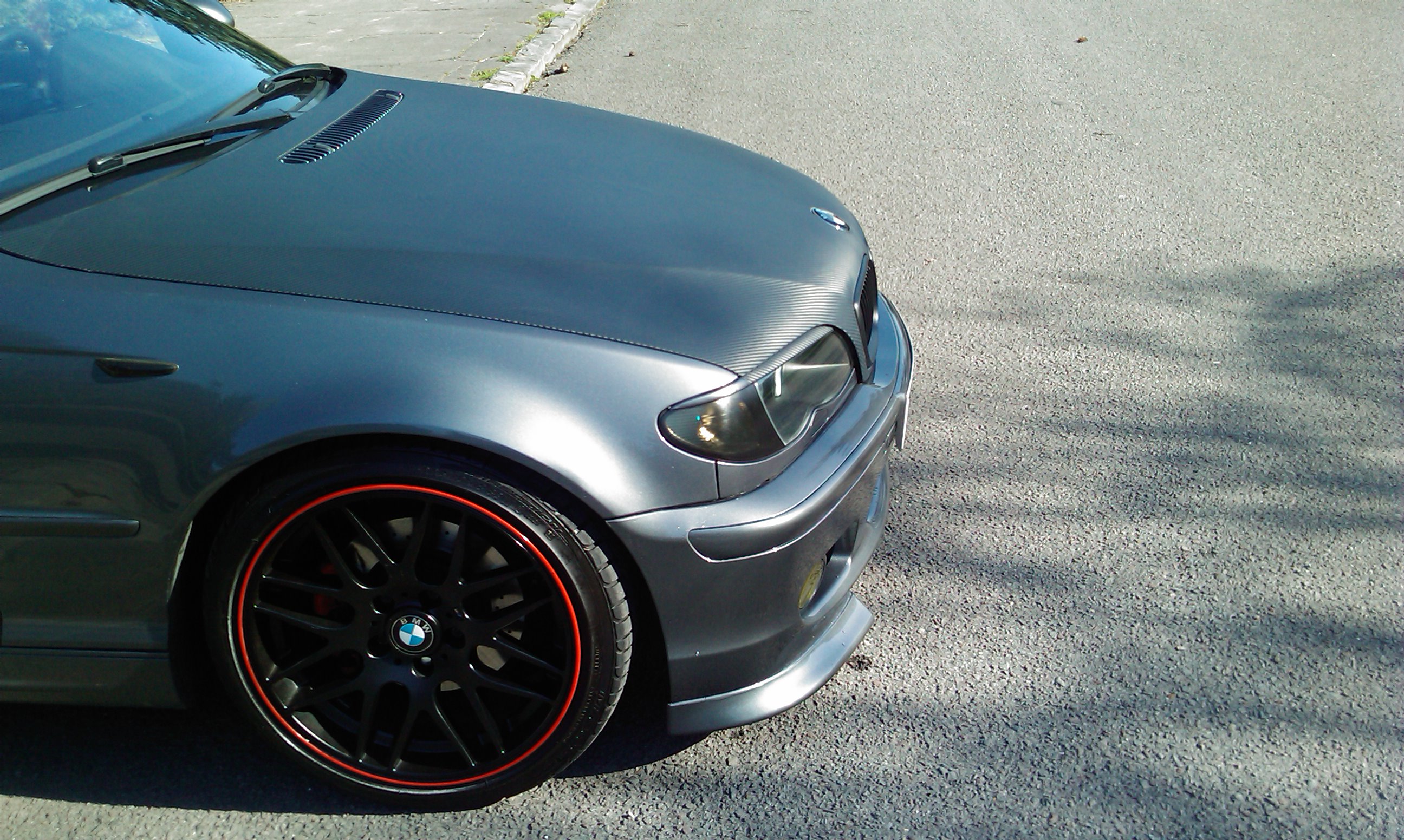 Stale jazdim s touto požičanou kapotou,no moja sa ide prerábat,ale ten človek nemá už pekne dlho čas aby to zalaminoval.takže to beriem do vlastních rúk a idem sa s tim CSL spoilerom pozabávat ja..uvidíme ako to dopadne