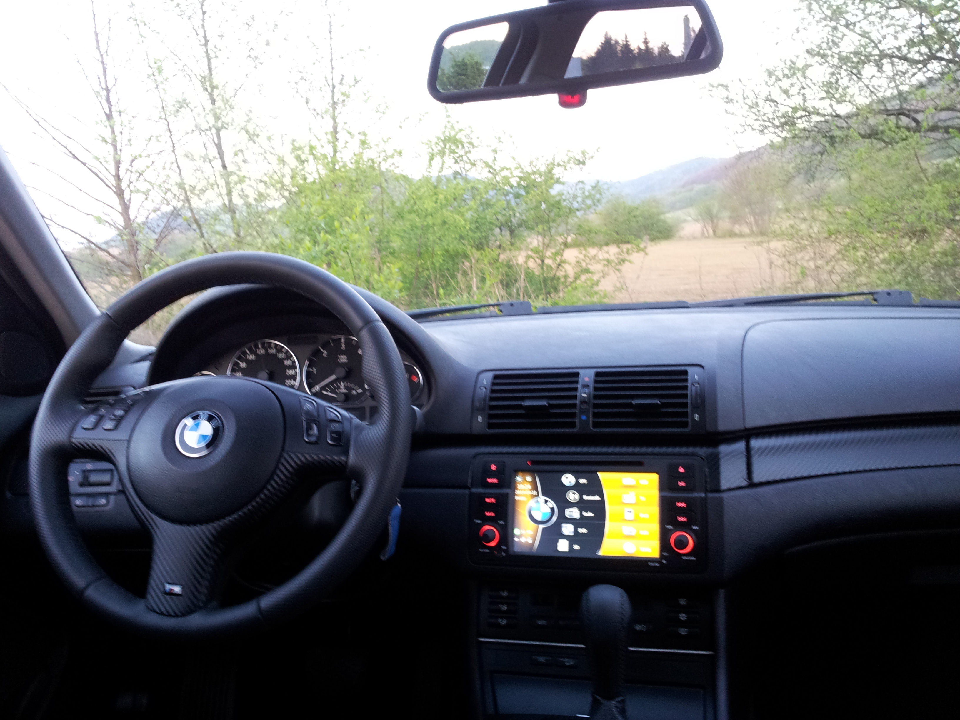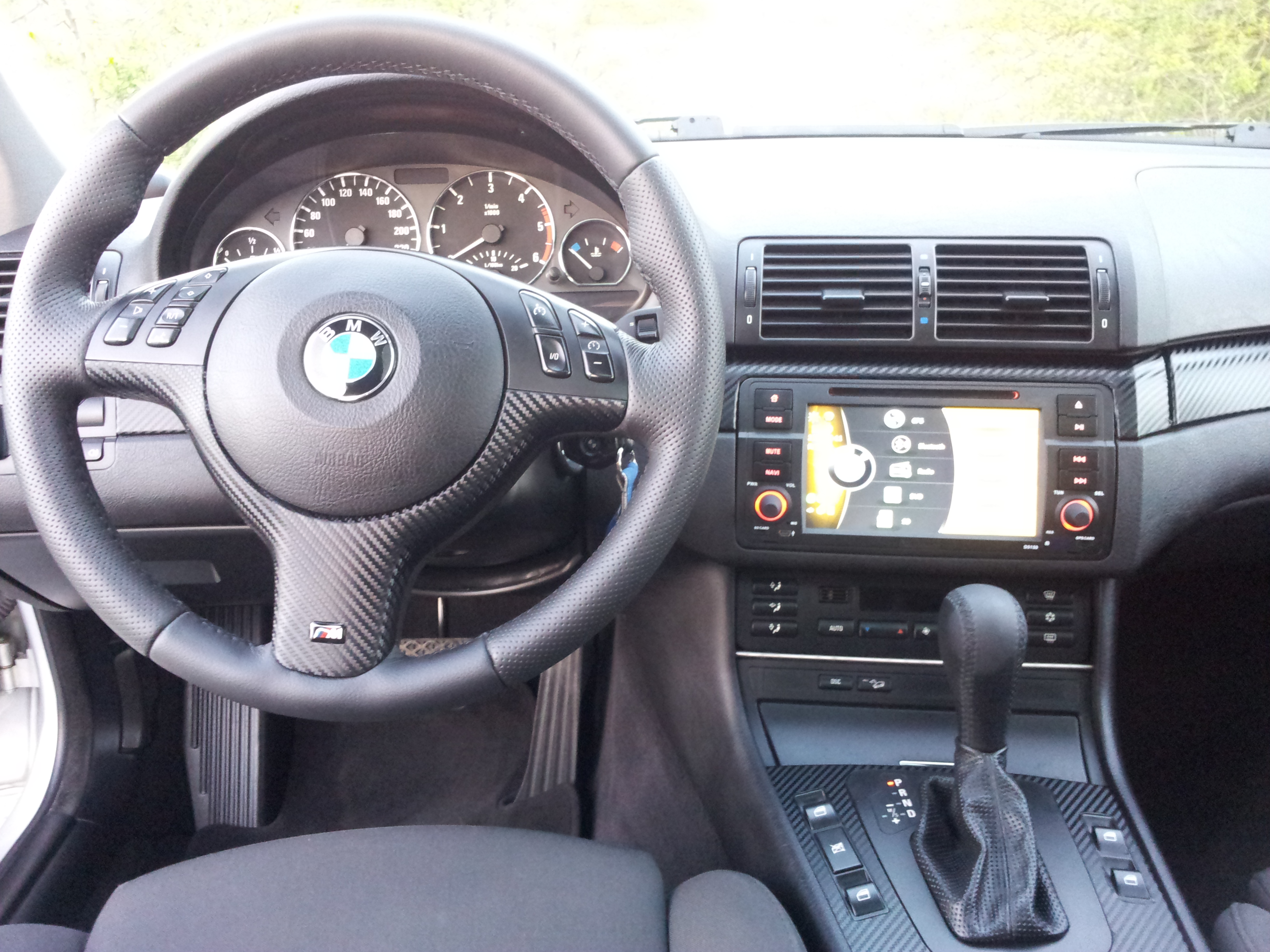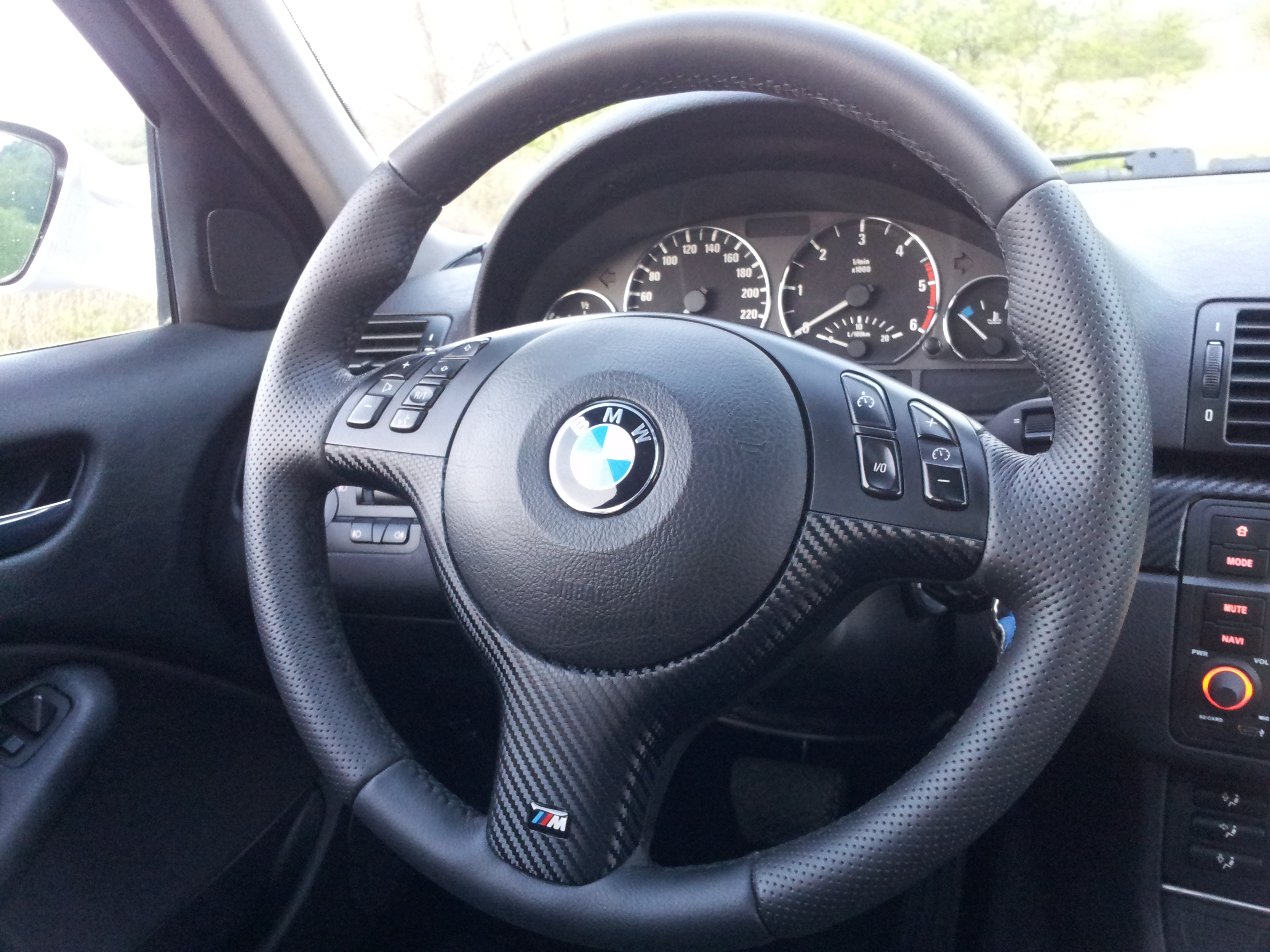 Dalej prisli zmeny aj v interiery.Ako prve som dal precalunit volant ktory som si dal do hladkej a performovanej kozi a zmenil som aj ///M dekor .Radiacu paku do ciernej koze a obydve manzety do performovanej koze...vsetko som dal spravit clenovi z klubu s nickom DTomik,zaco mu velmi dakujem...perfektna praca a aj rychle jednanie...
