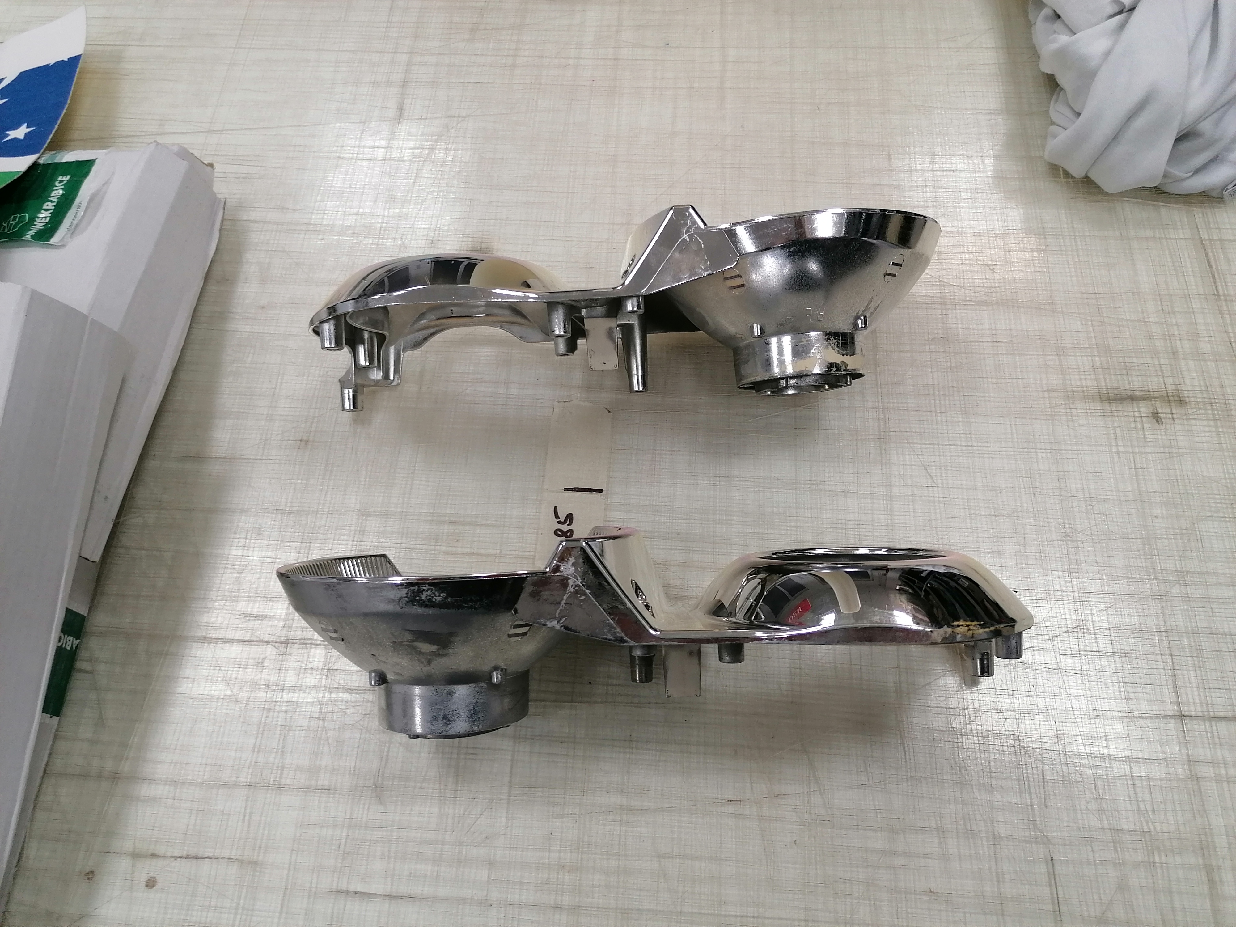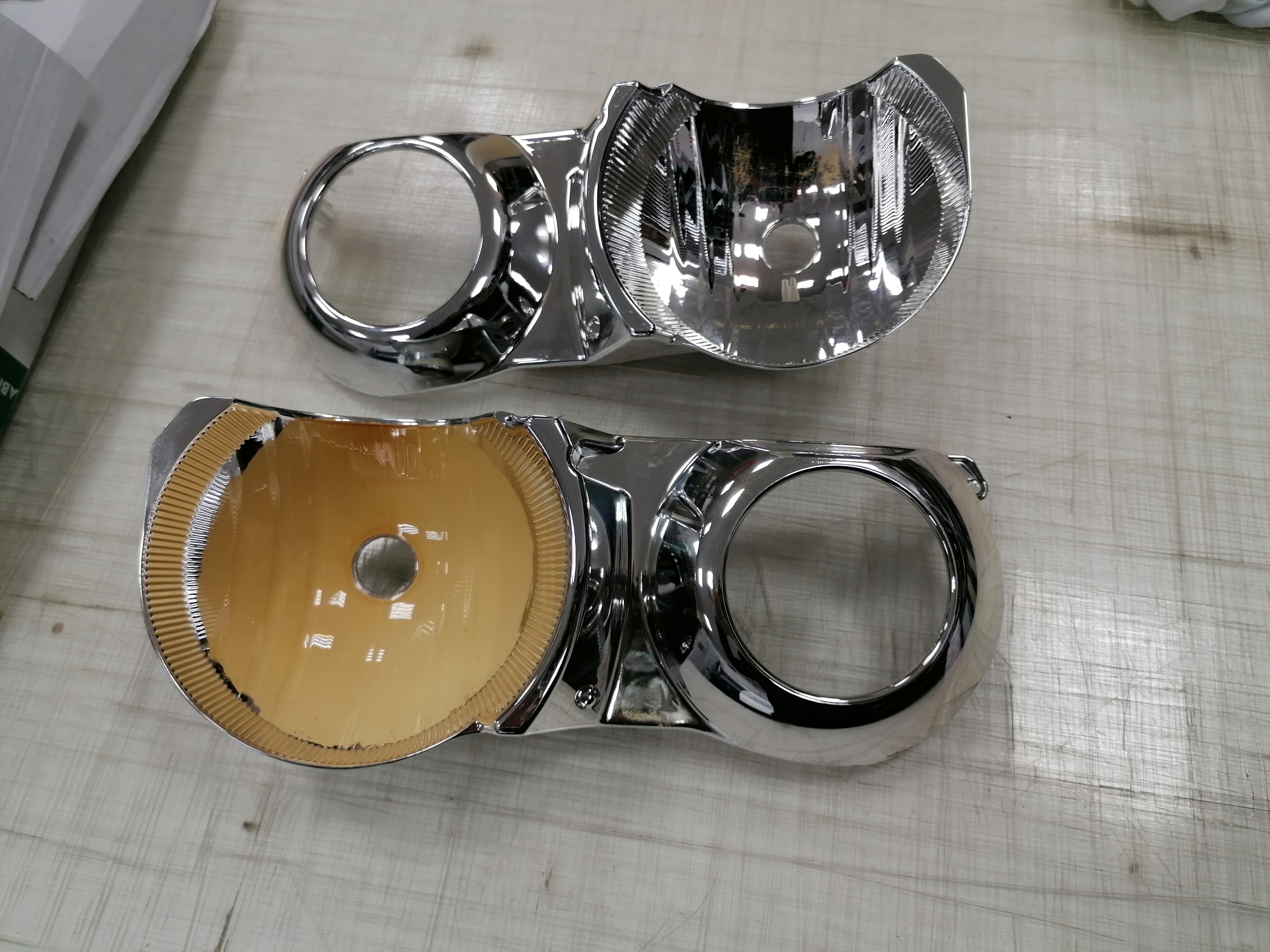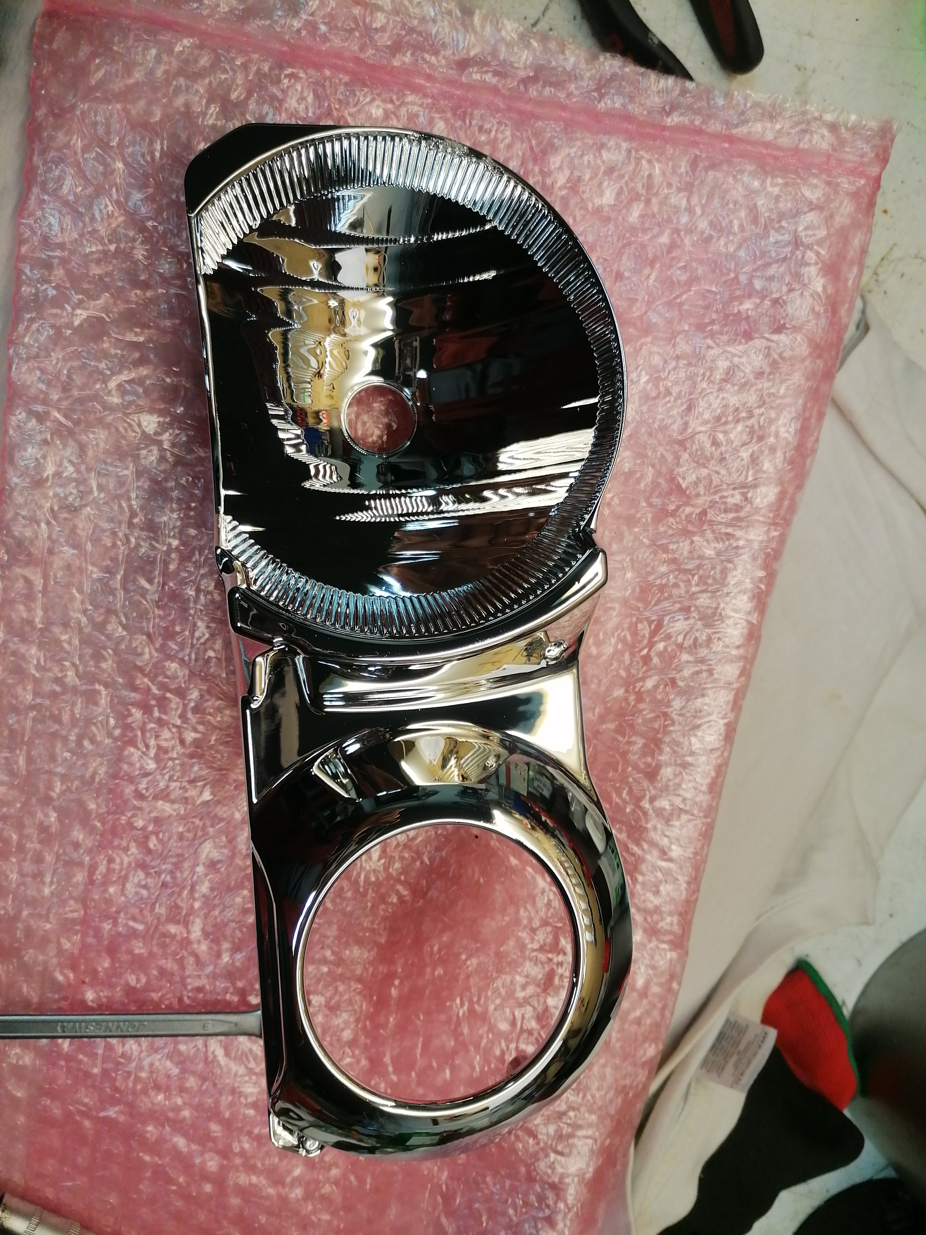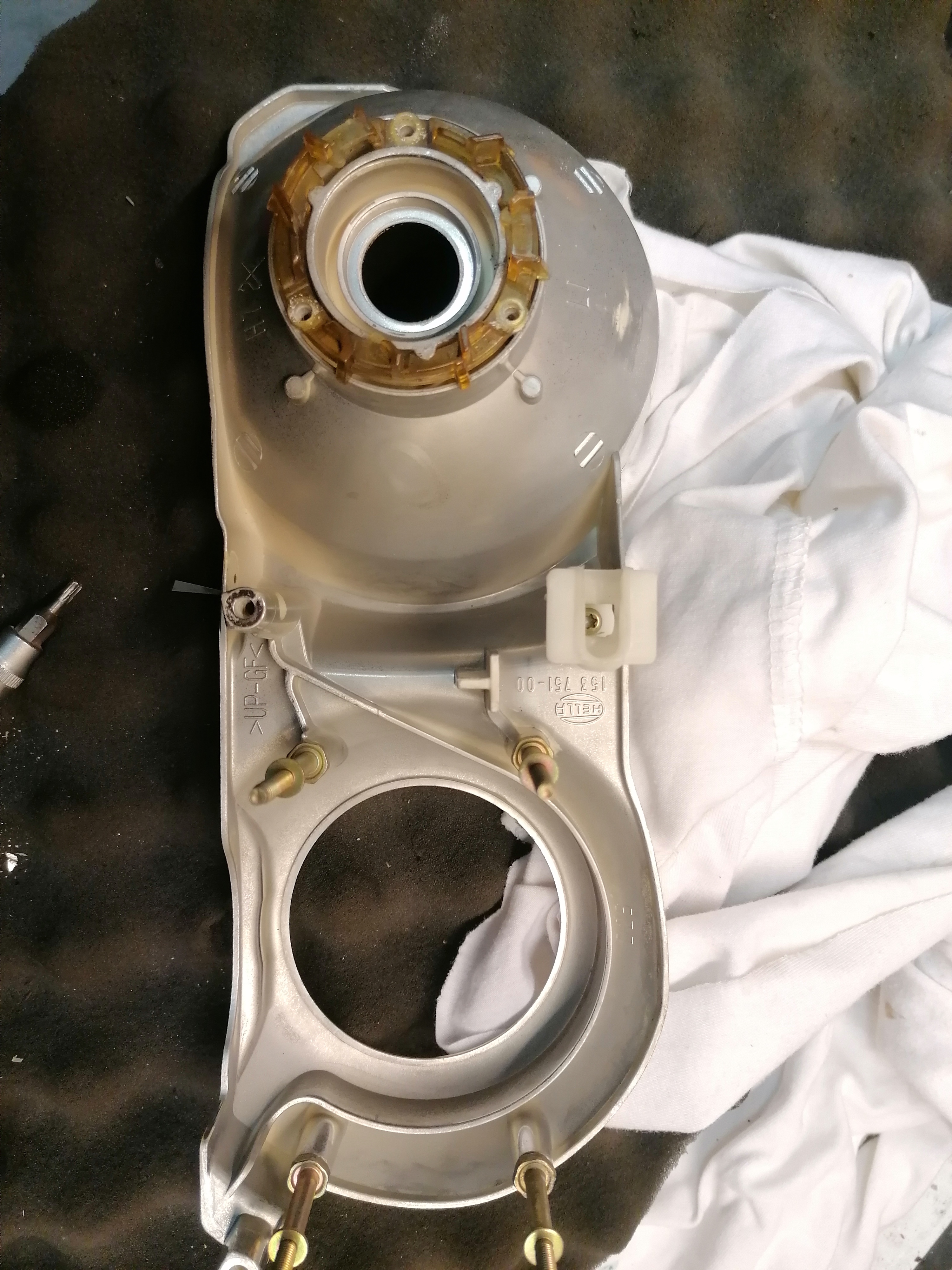 tu foliu som dával len na to sklíčko na blinker ten krúžok, paraboli som dával nanovo pokoviť, pretože som ich chcel vyčistiť a samozrejme som to pokovenie zničil, hold človek sa učí na svojích chybách. Tie paraboli niesu oteruvzdorné, tak s nimi treba pracovať veľmi opatrne a v rukavičkách.