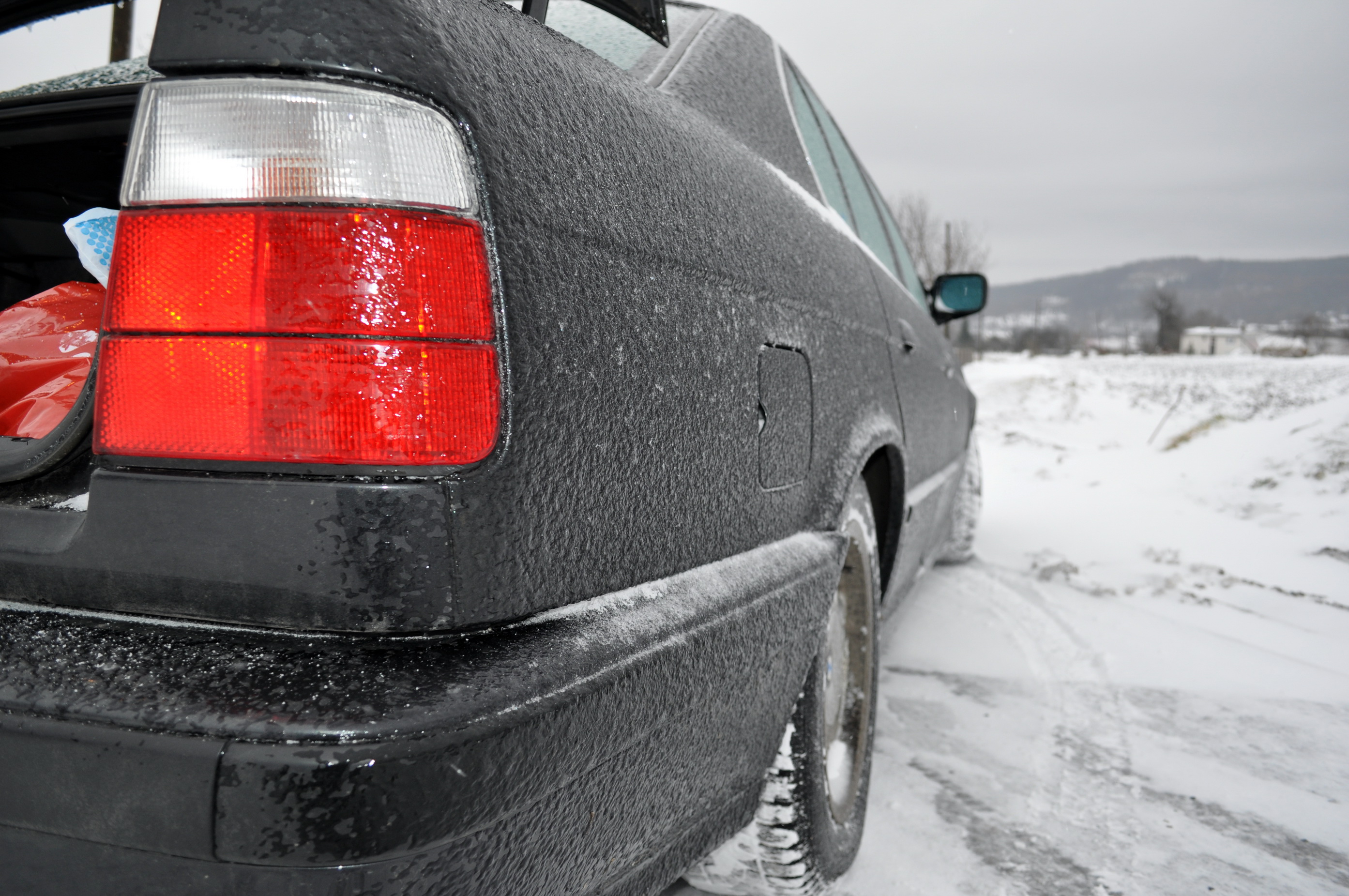 Ďalej, čo som vymenil v priebehu roka: horné uloženia tlmičov na prednej aj zadnej náprave + dorazy vzadu okrem predných (tie sú integrované v bilsteinoch), palivové hadičky (smrdel benzín), zadné brzdové kotúče + platničky. Dal som streknúť spolujazdcové dvere (mierna korózia). Nahodil M-tech zadný nárazník - prebrúsený, streknutý. Nahodil dymové smerovky. Vyleštil výfuck. Vyleštil komplet karosériu. Nahodil Xenesis žiarovky. Nejaký pičus mi orajbal lavý blatník - opravené. Prasiatka som natrel na červeno :)