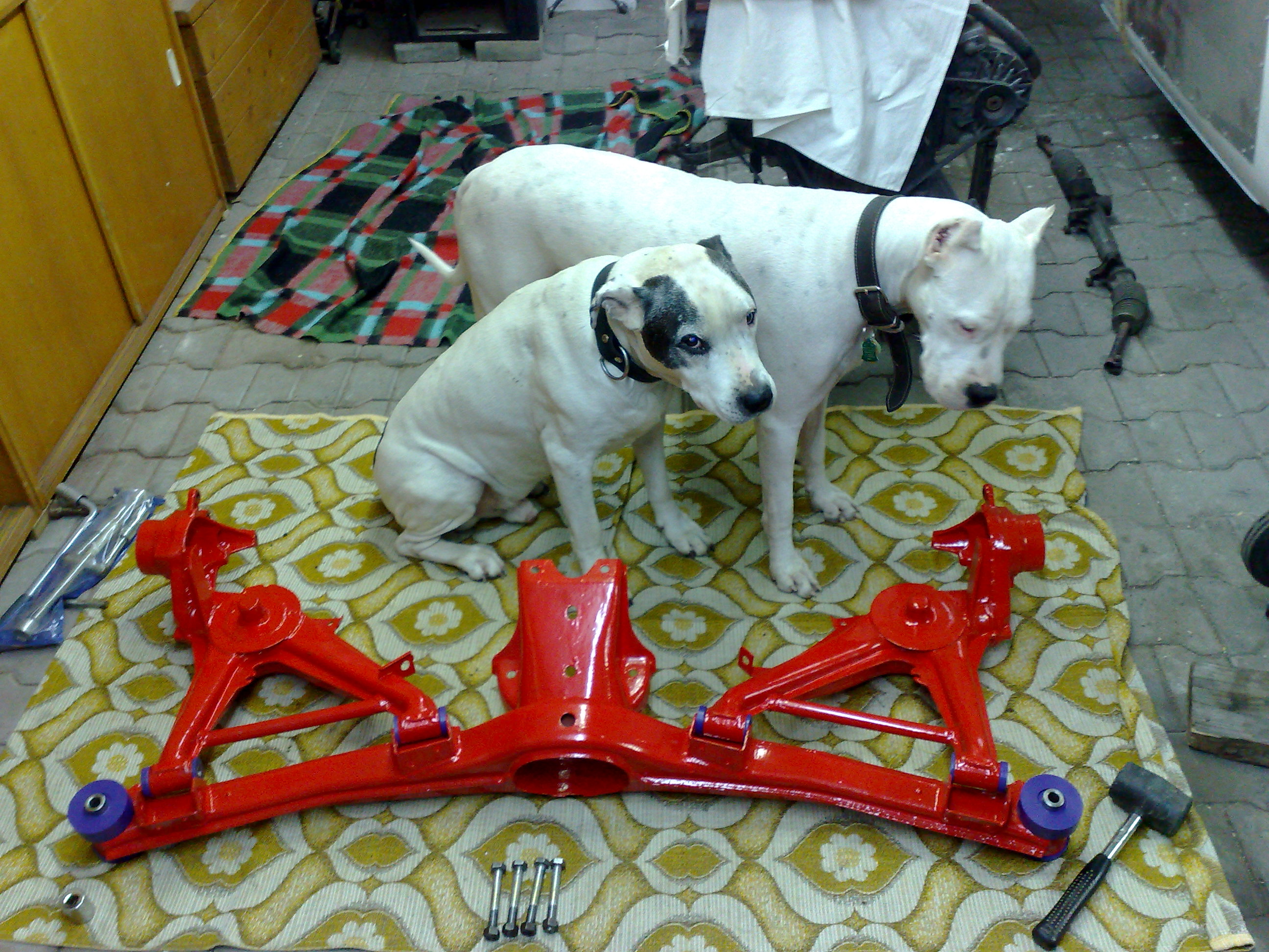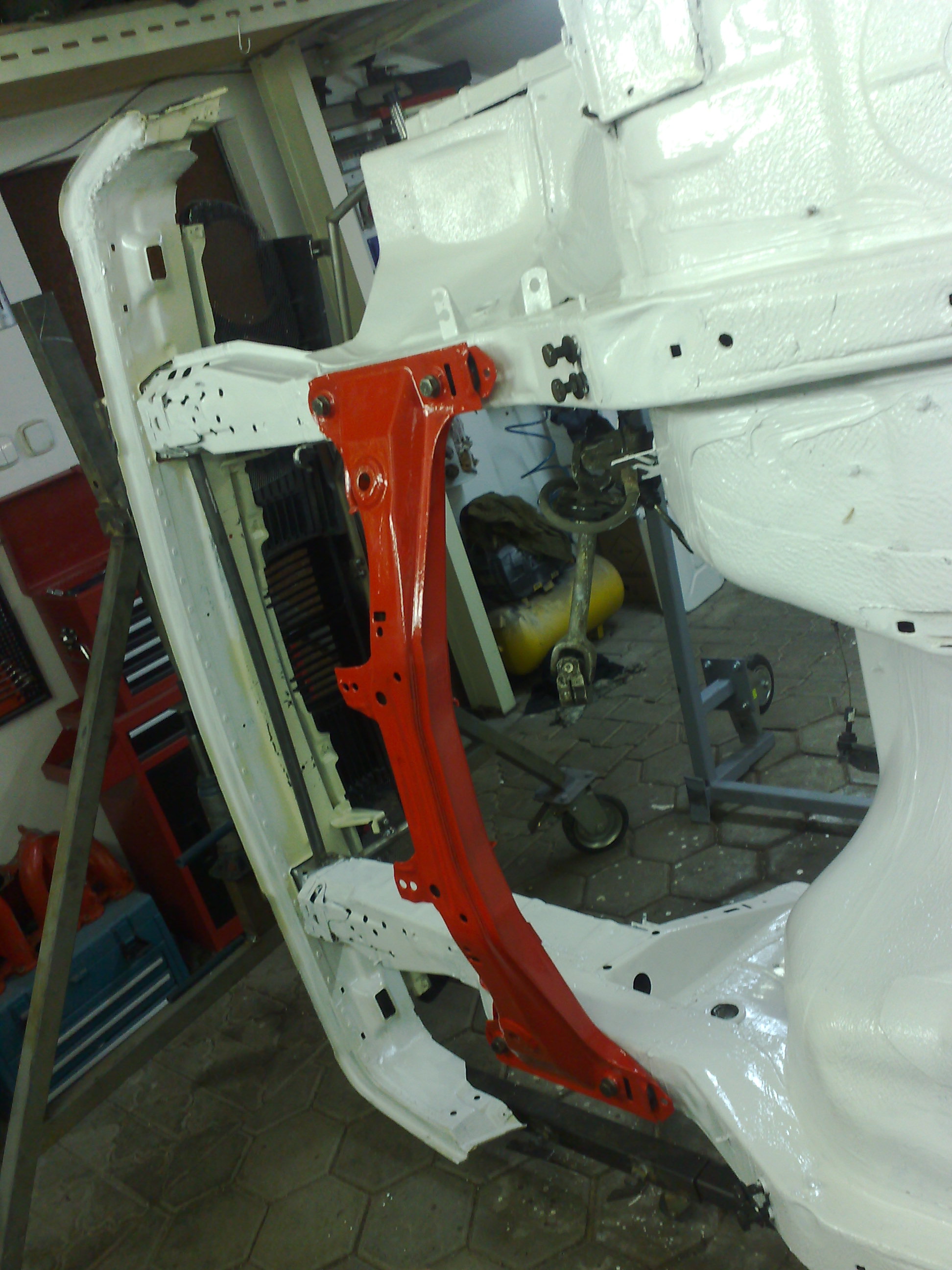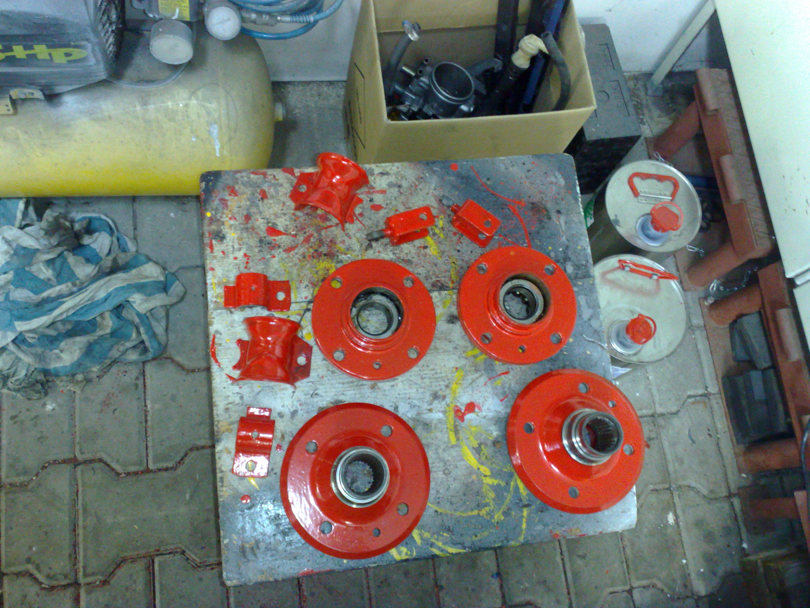 Repas prednej napravy,nove loziska,nove klby,tiez ide vsetko na "powerflexi" tak ako vzadu,kotuce boli malo jazdene len sa zrovnali na sustruhu,platnicky zatial origo, budu sa riesit ine...
