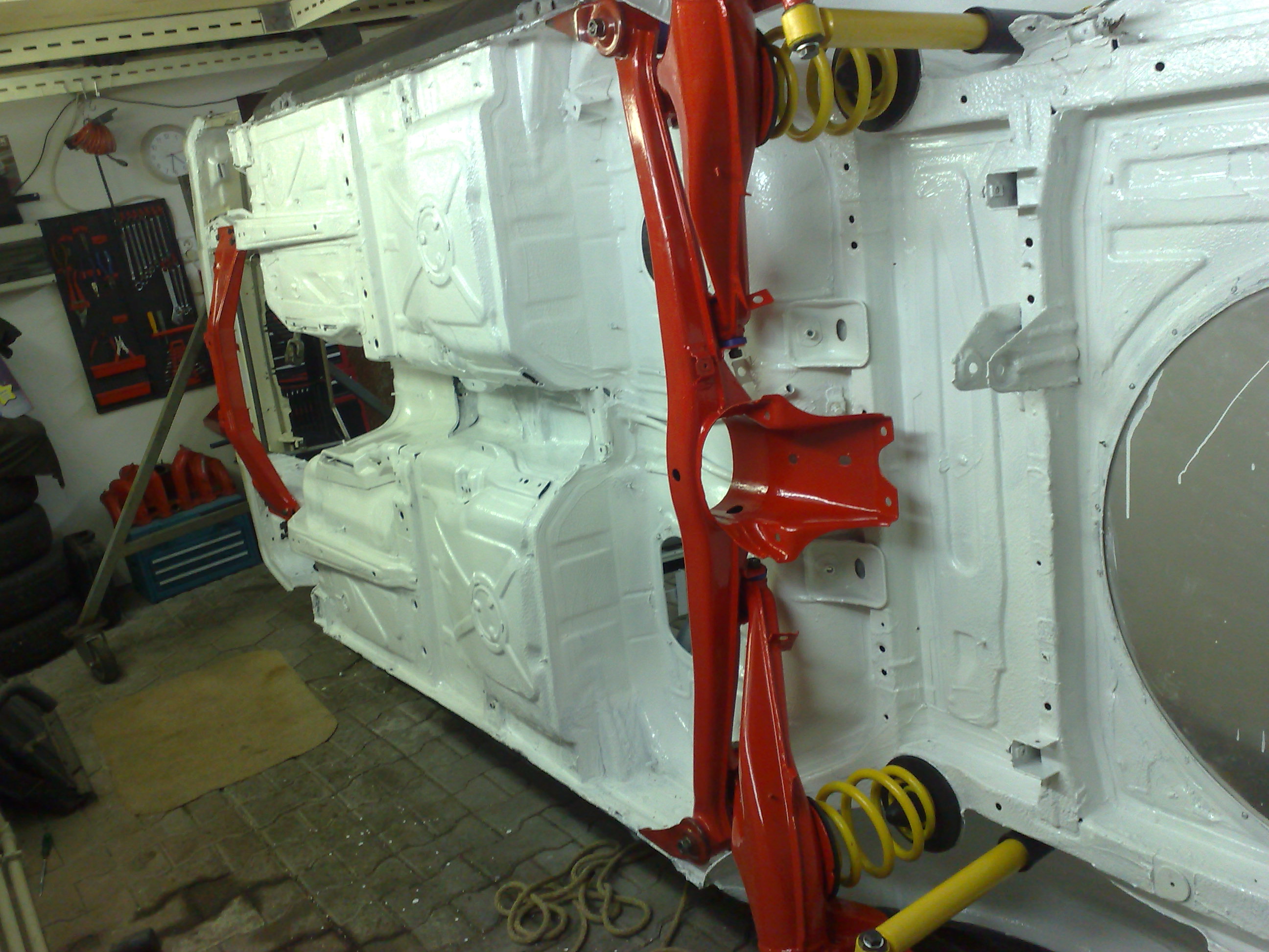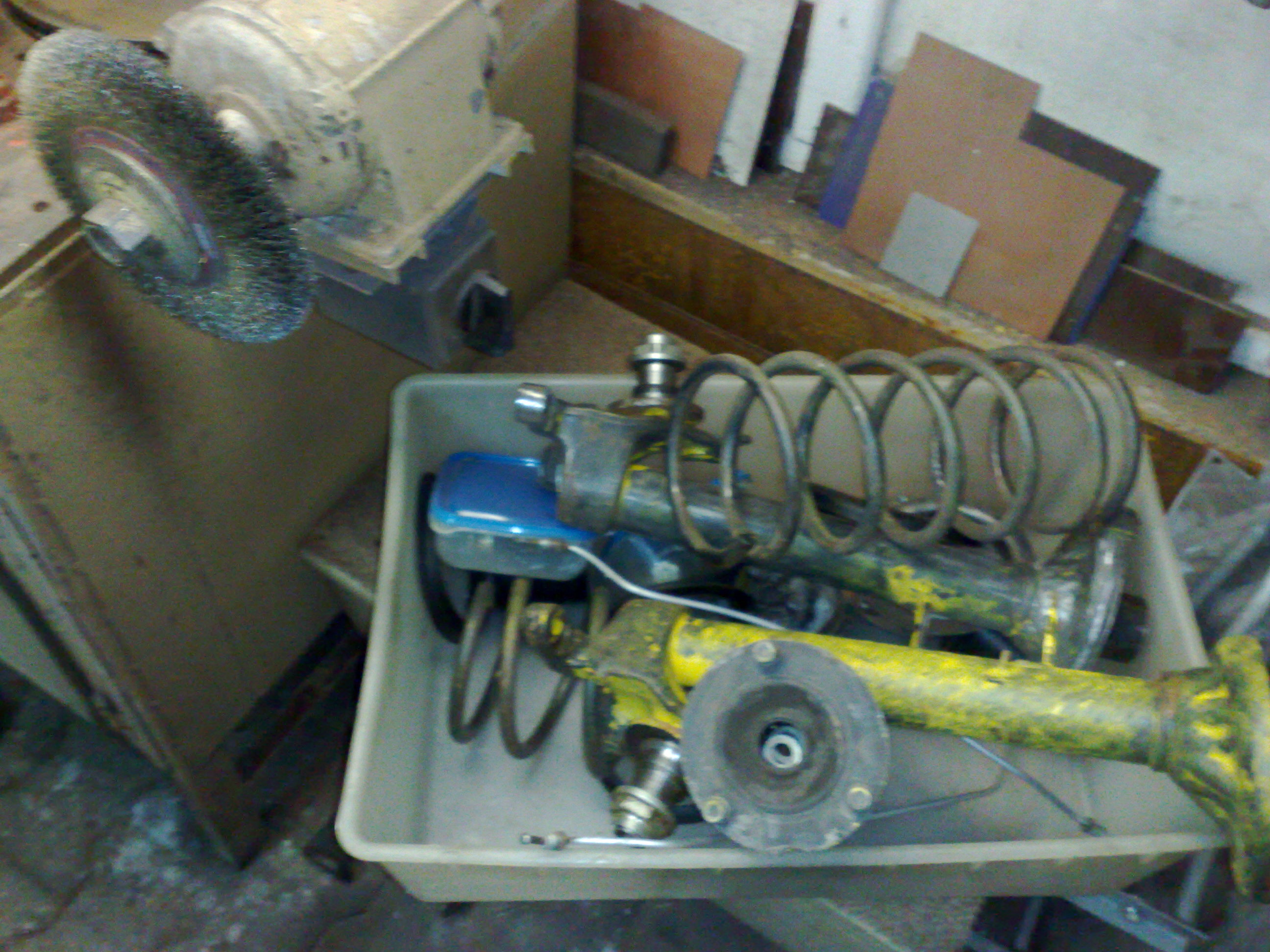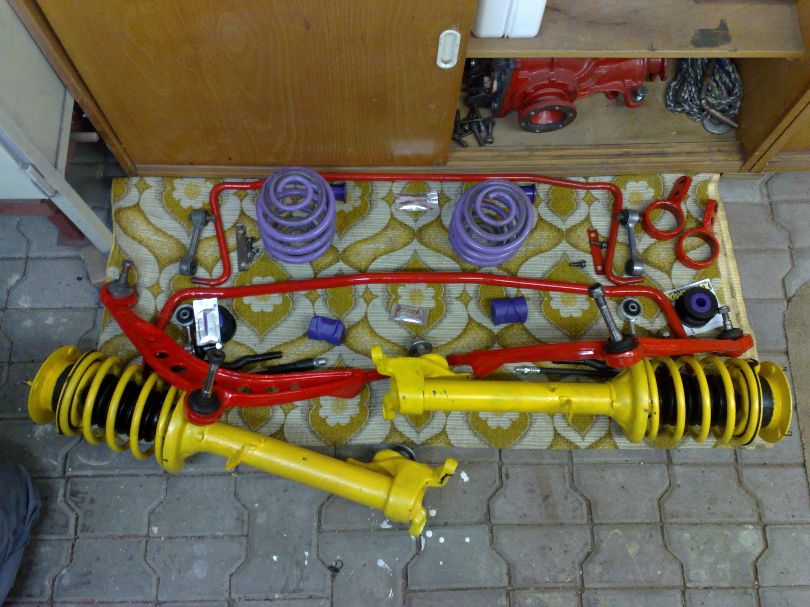 Tlmice a pruziny: z financnych dovodov zatial pouzijem to lepsie z oboch aut,neskor sa spravny podvozok bude este riesit. Zlte pruziny v zadu boli na 1.6 su znizene a tvrdsie-vyrobca neidentifikovatelny,bohuzial jedna je zlomena takze sa budu menit: