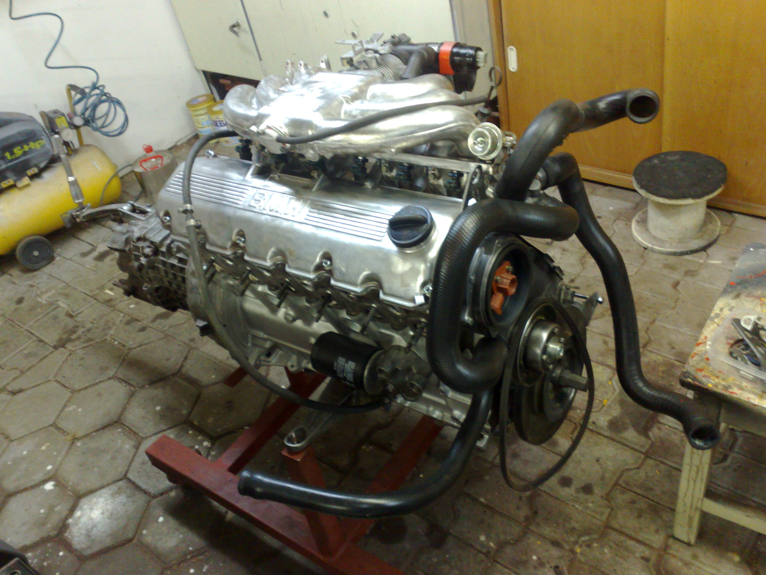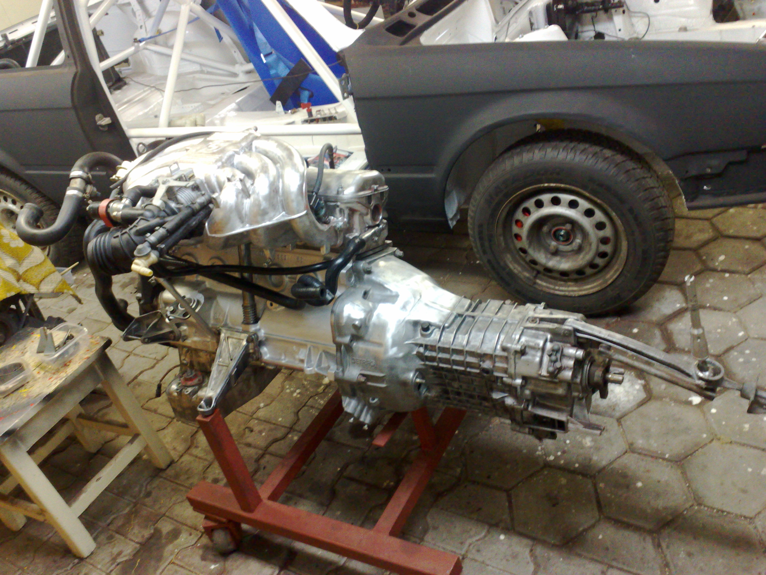 Motor s prevodovkou a vsetko okolo toho bolo ocistene(brusenie,pieskovanie), blok natrety, zavarena olejova vana(bola prasknuta pri vypustacom srobe), pomenene poskodene hadicky, novy olej.filter, olej a vsetko pretesnene.. a skoro som zabudol-to je otcova pracicka za co som mu velmi vdacny.
