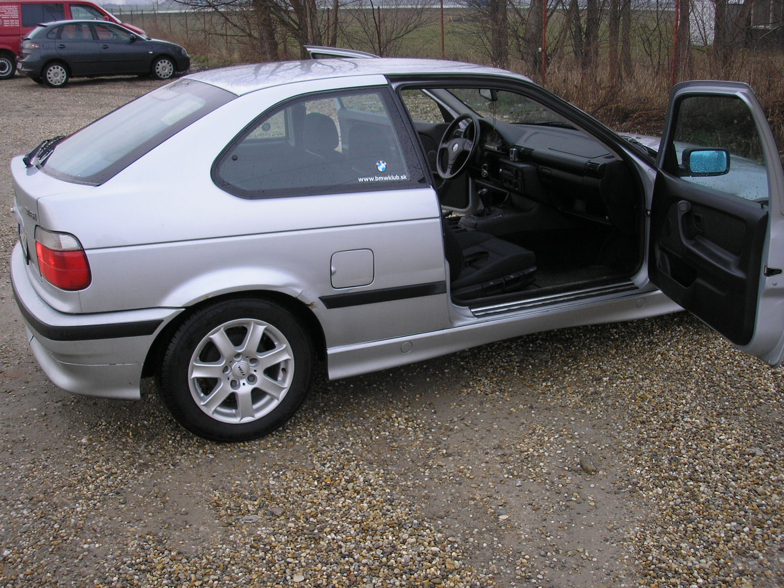 BMW 316i Compact strieborna metaliza 98 z rocnik pozeram krasny.Pomaly ale iste som sa citil ako pri prvom bozku.Kratase zacali naberat vacsi rozmer(z prednej strany :)) ) Volam majitelovi ze xcem auto vidiet..Jasne za 10 min som u vas... LOL? Parada,idem na parkovisko kde uz stala moja buduca druha zivotna laska (az po priatelke ). Na prvy pohlad super,vravim si..ALE,prava strana na boku aj predny aj zadny blatnik chyteny troska od korozie..Takze s cenou musime dole za kazdu cenu..Nakoniec mi dal 10 dole takze ...... a auticko bude moje.Po prebdenej noci na nete a pozerani obrazkov a videi o BMW bol cas ist prehlasit auto. Ujo prisiel premna a rychlim tempom k zelenym ujom na prepis. Pan sa tvaril suverenne az sa ma nakoniec s obavou spytal : ,,Mate tolko penazi?!'' Vravim jasnee ja by som vas neoklamal :) Po cca hodinke auticko moje,smer banka,prikaz na prevod. Podpis zmluvy a hotovko :) Este dodam ze je dovoz z DE a ma momentalne 196 000. Ale treba nechat ze motor ve vo vynikajucom stave a akceleracia je este lepsia :)