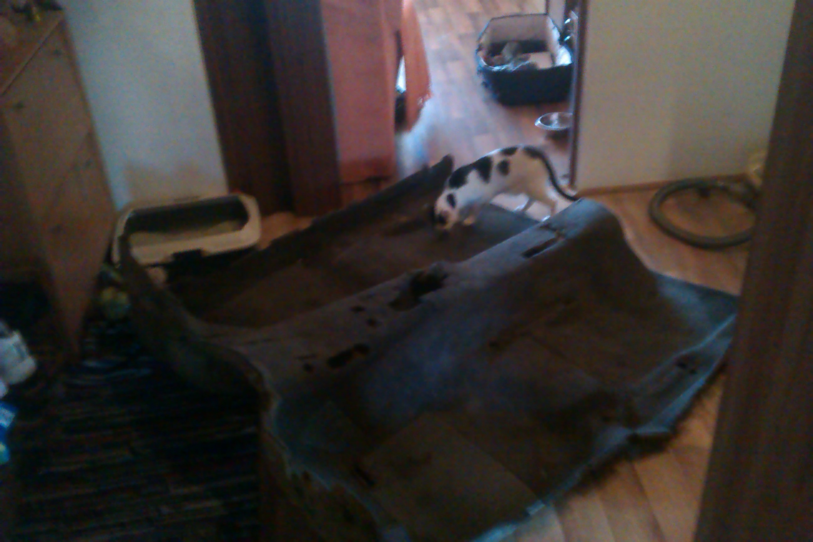 tak to je najvyzsi cas povyvarat, nemal si mokre nohy od tych dier, a z koberca ked si ho vybral muselo tiect vody a vody, mne schol cca 3 tyzdne. Na lavej strane pri prechodke kabloveho zvazku do kasne to nemas derave?
