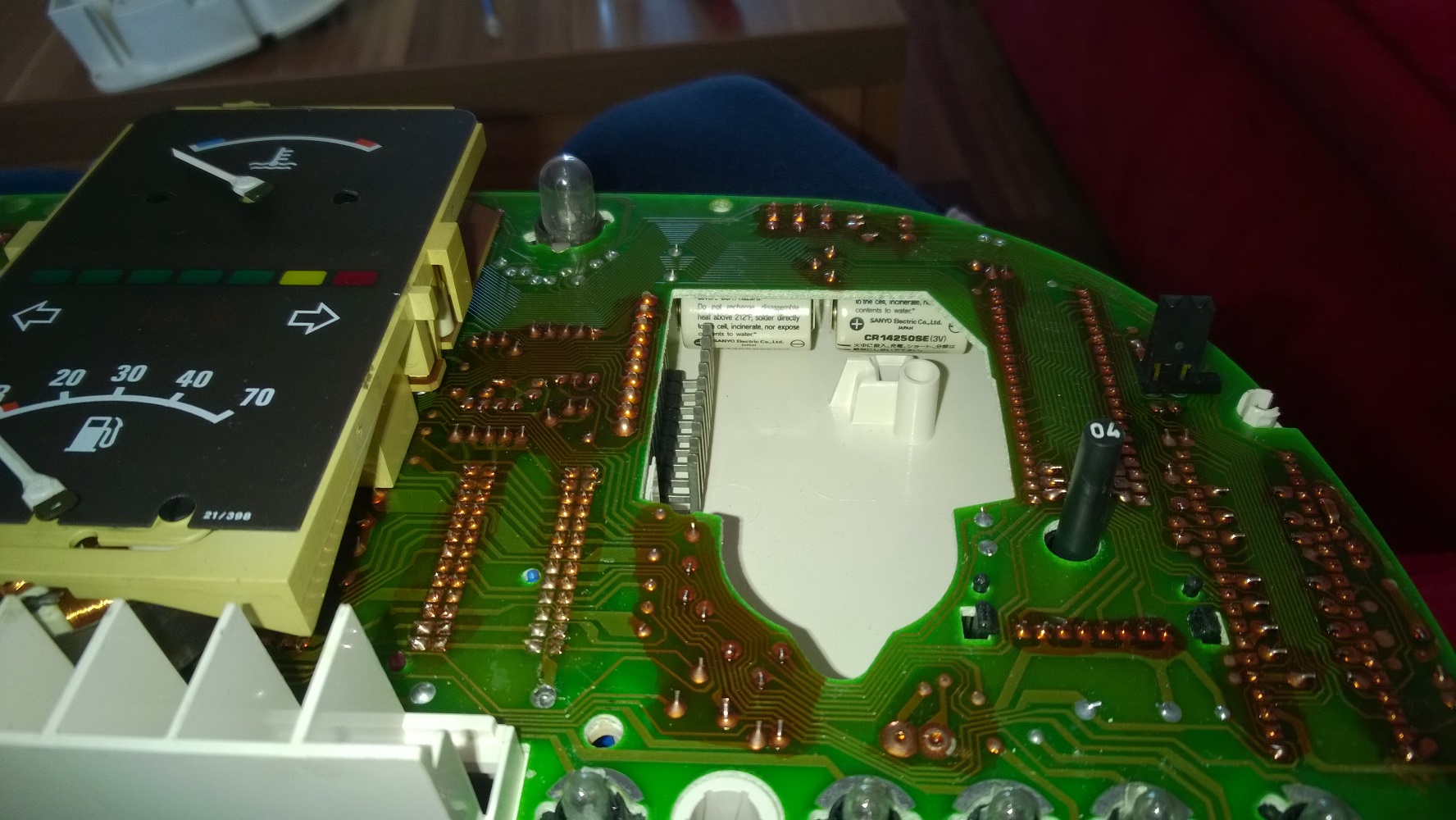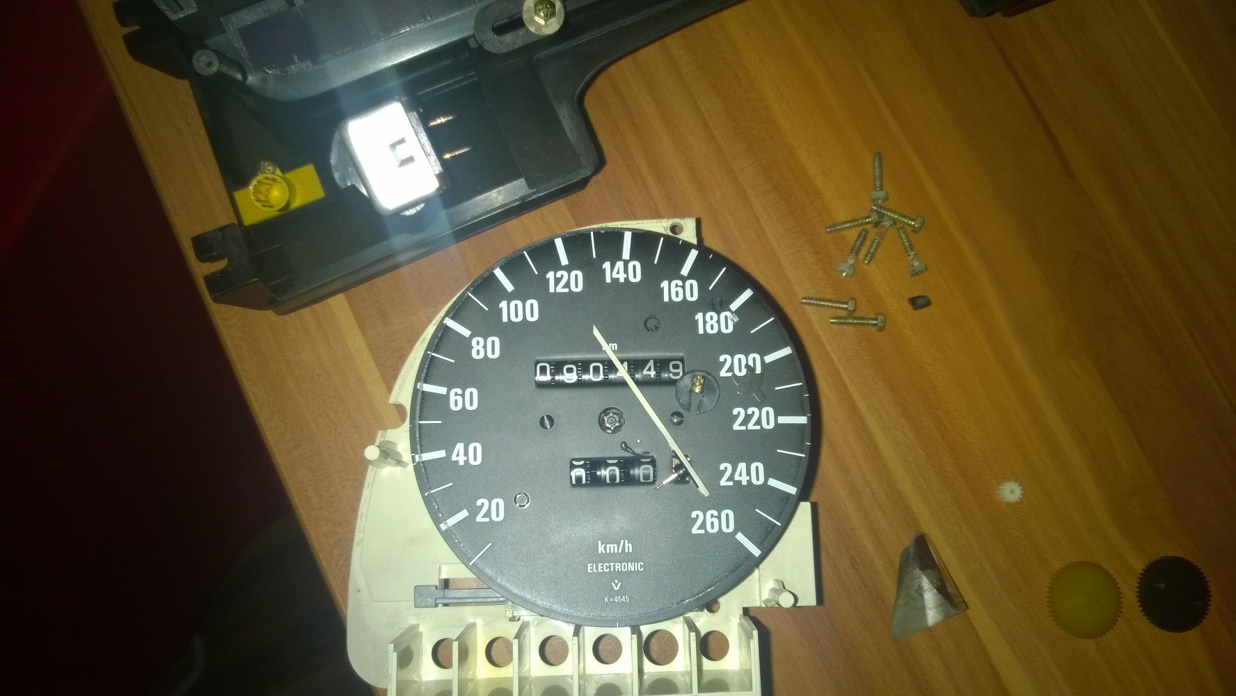 Kedze nam posunuli cas vymyslel som si, ze pocistim palubovku, prach, kontakty a tak. Co cert nechcel spadol mi rychlomer. Samo o sebe by na tom nic nebolo, ved nemuselo sa nic stat, ale zlomila sa rucicka. Myslel som ze ma urve. Zacal som zistovat ake su moznosti (aj sem som napisal, ale nic no) a zistil ze bieda. Kazdy rychlomer ma cislo/pocet impulzov na km. 635csi maju 4545imp./km a 260 na tachaci. Taka kombinacia sa este pouzivala v e23 a e28, ale len mka, resp. m535i alebo nieco take a tych az tak vela nebolo. A do toho vsetkeho treba este pripocitat rocnik. E24ky mali 3druhy paluboviek. Prvy druh davali do E12 based car (cize do roku 1982), je aj vyzorovo ina. Druhy vyrabali niekde do roku 86-87 a mal v strede za ukazovatelom paliva 2 baterky (prevazne cervenej farby), tzv. "SI board". Mno a ten posledny typ (ktory mam aj ja) davali niekde od 86-87 do konca vyroby. Baterky ma nad otackomerom, su hrubsie, biele (vid foto) a nezvyknu tiect, co sa o tych cervenych povedat neda. Takze najst rychlomer s k=4545imp./km, 260 km/h a aby to sadlo aj mne bol problem. Po asi mesiaci hladania som na mye28.com nasiel chlapika v Holansku co mal strojcek ktory je vhodny. Takze - problem solved (uz len cakam na dodanie).