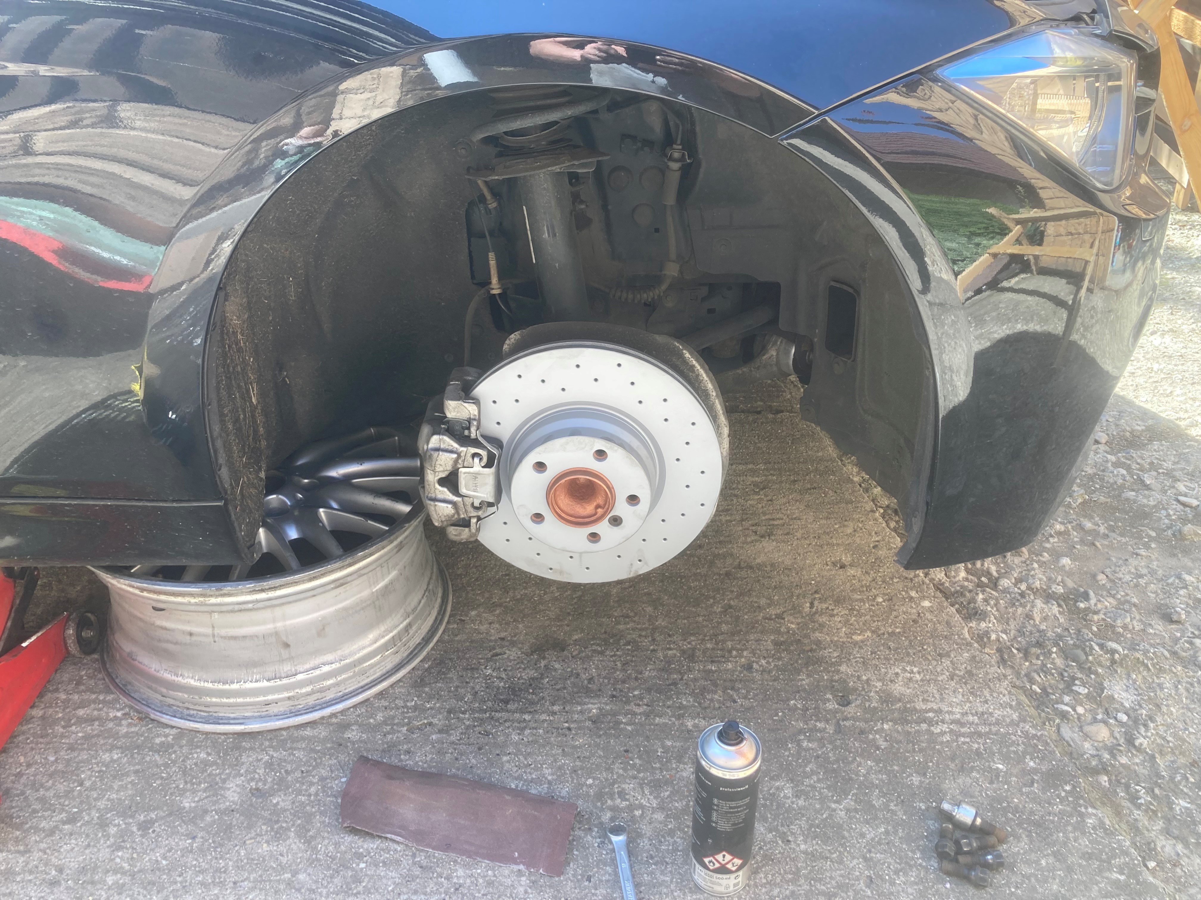 auto pripravene na leto. pri 143000km výmena oleja a filtrov , brzdovej kvapaliny , hlavných silentblokov na predných ramenach a tyčky stabilizátorov + geo a samozrejme prezuté na letné styling 403m popri prezúvaní mi synator napalil s x6 a oškrel podbeh a dvere