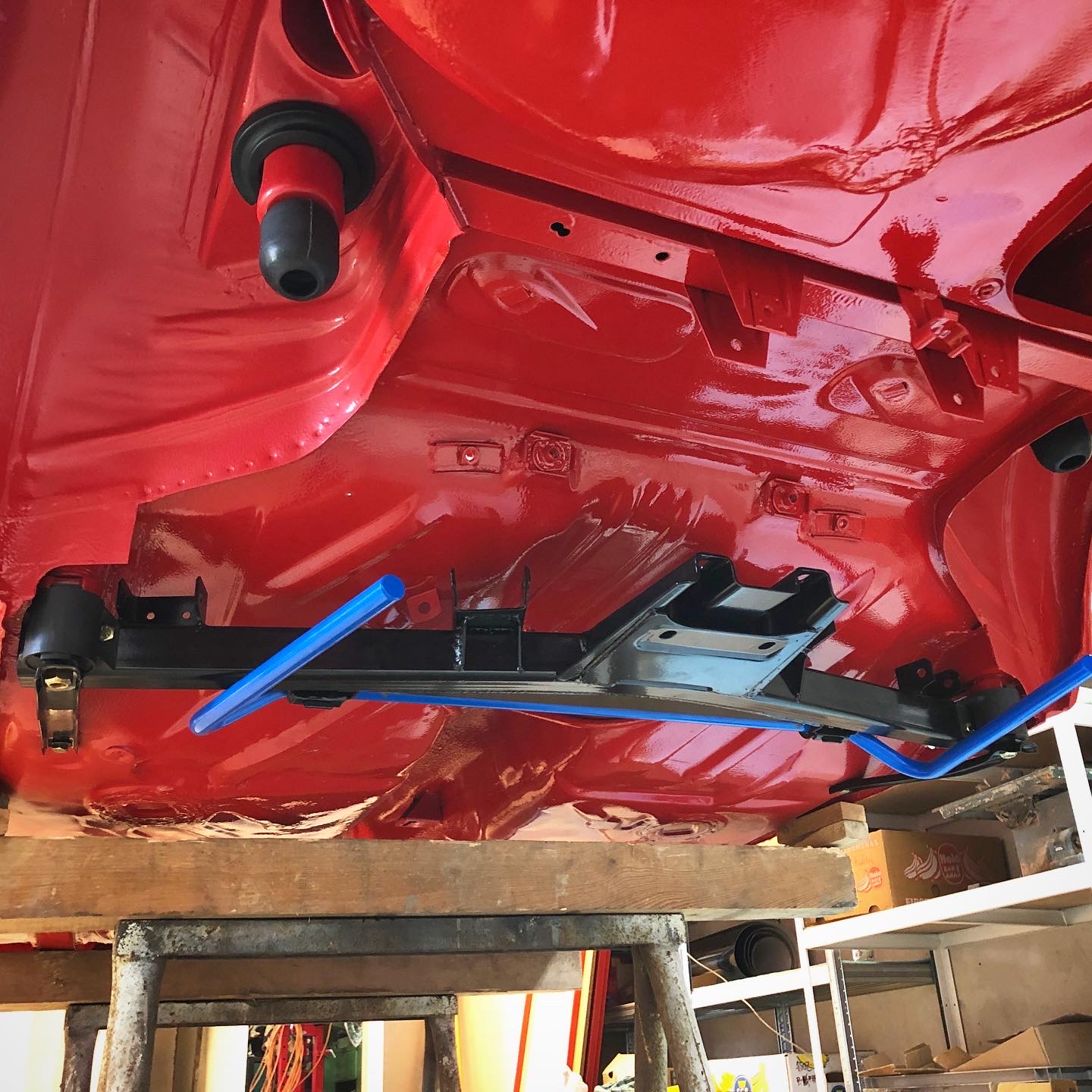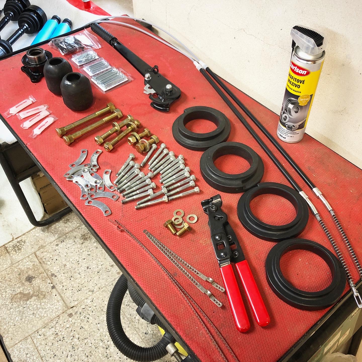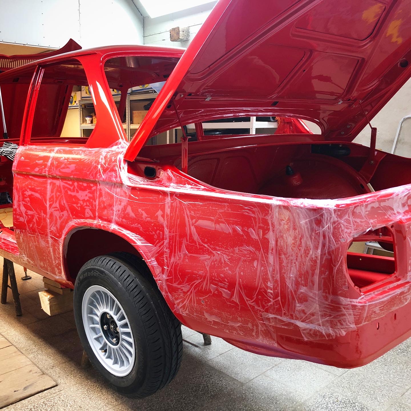 Zadna naprava komplet nahodena. Zistil som ze kolesa, ktore tam chcem dat sa mi v kombinacii s cervenym lakom nepacia :) Vedel som ze ta strieborna farba nieje uplne podarena, ale ked som ich zbadal nahodene na aute, niesu moc pekne a vyzeraju ako keby boli streknute iba v zaklade... taaakze uvidim co vymyslim, mam v zalohe 14ky plechy z e30, tie sa mi na 2002ke velmi pacia, alebo nejake dobovejsie hlinnikove disky. Nuz, ale kolesa su teraz posledna vec ktoru budem riesit. Tie turbiny co mam budu na posuvanie po garazi zatial stacit
