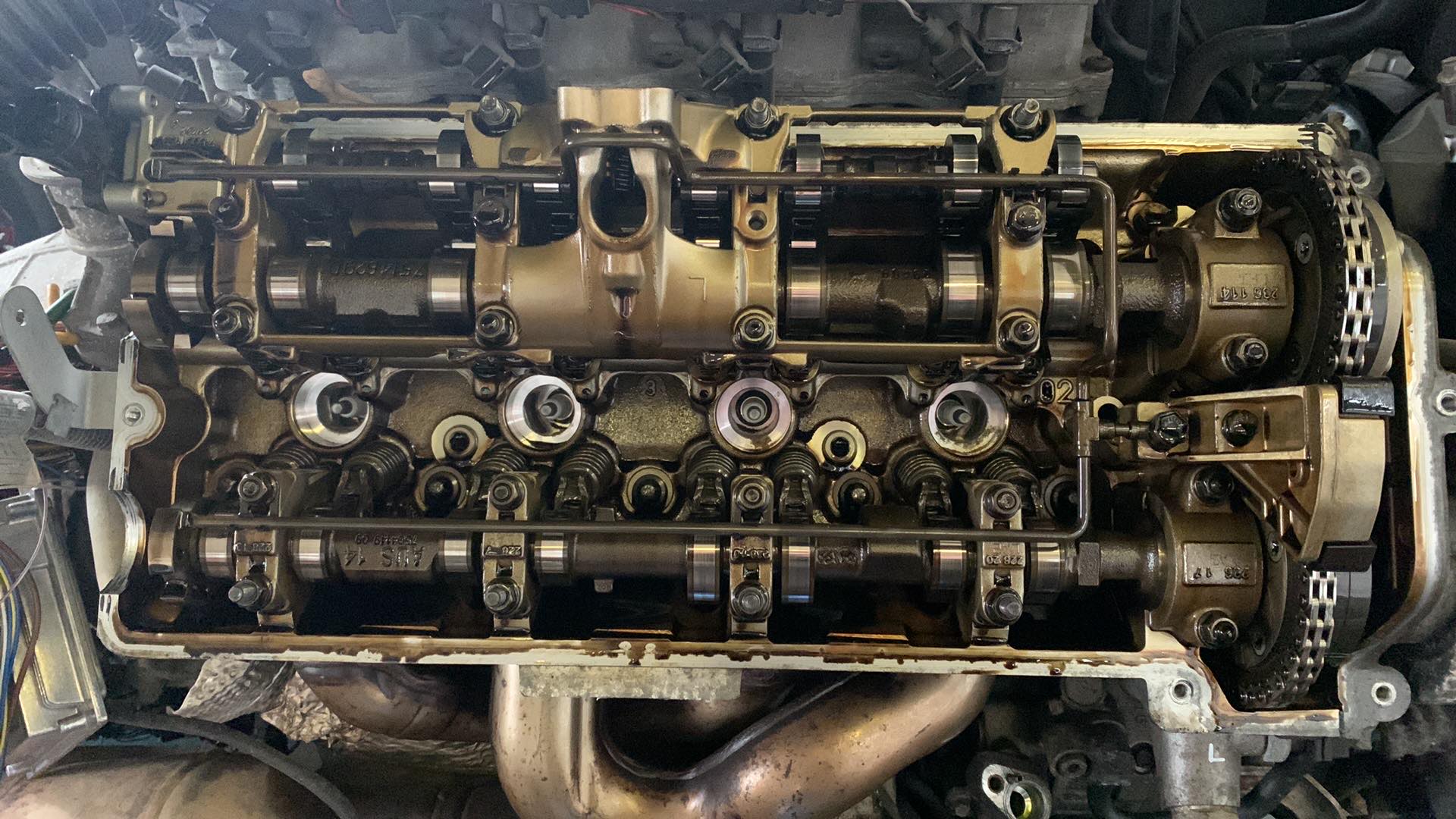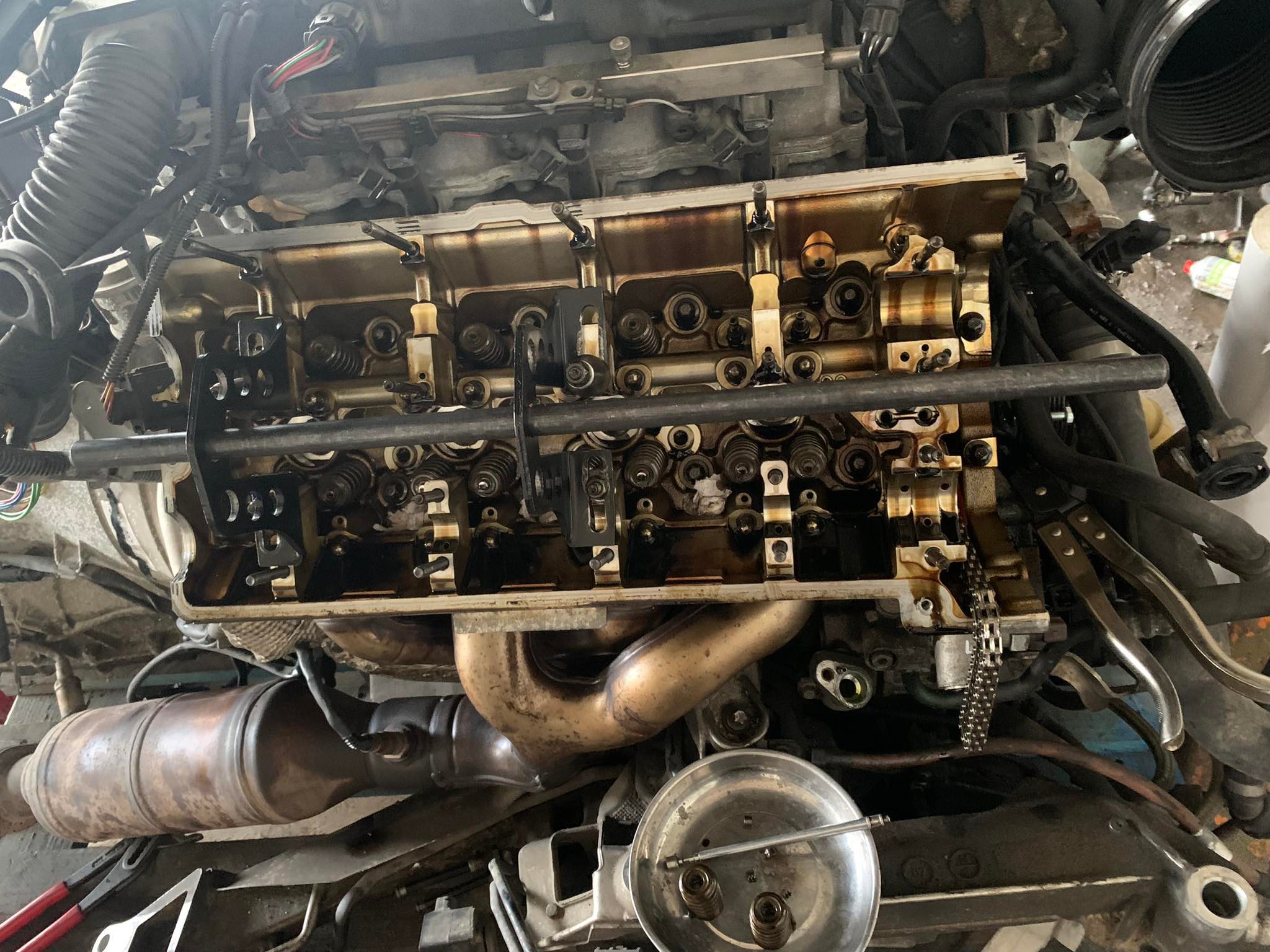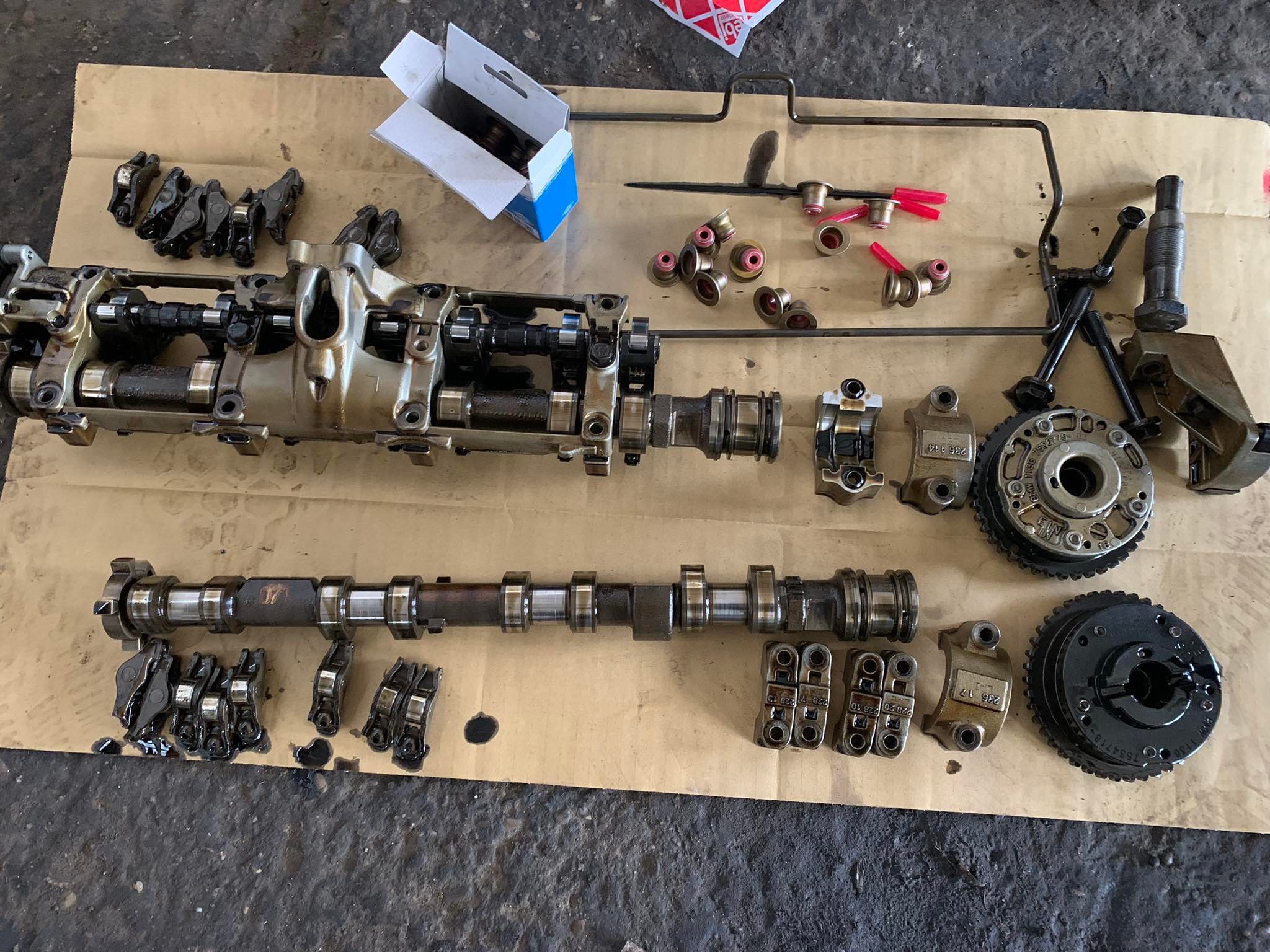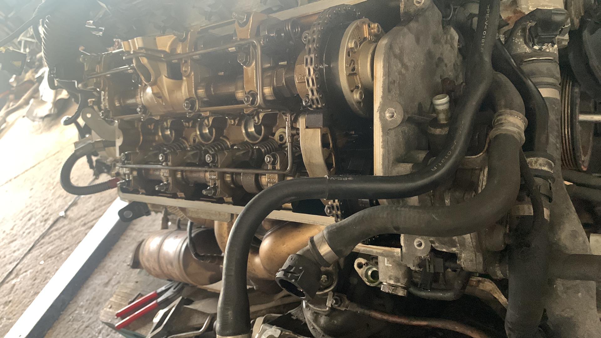 Motor poskladaný, beží absolútne bezchybne. Menili sa katalyzátory, keďže jeden pôvodný bol nepriechodný, samozrejme sviečky, cievky, tunely k nim, pretesnený je vrch motora, predné prsia, veká ventilov, spodok motora, simeringy na kľuke, olejová vaňa, vanosy. Ten motor ide že ani neviem... veľká spokojnosť.