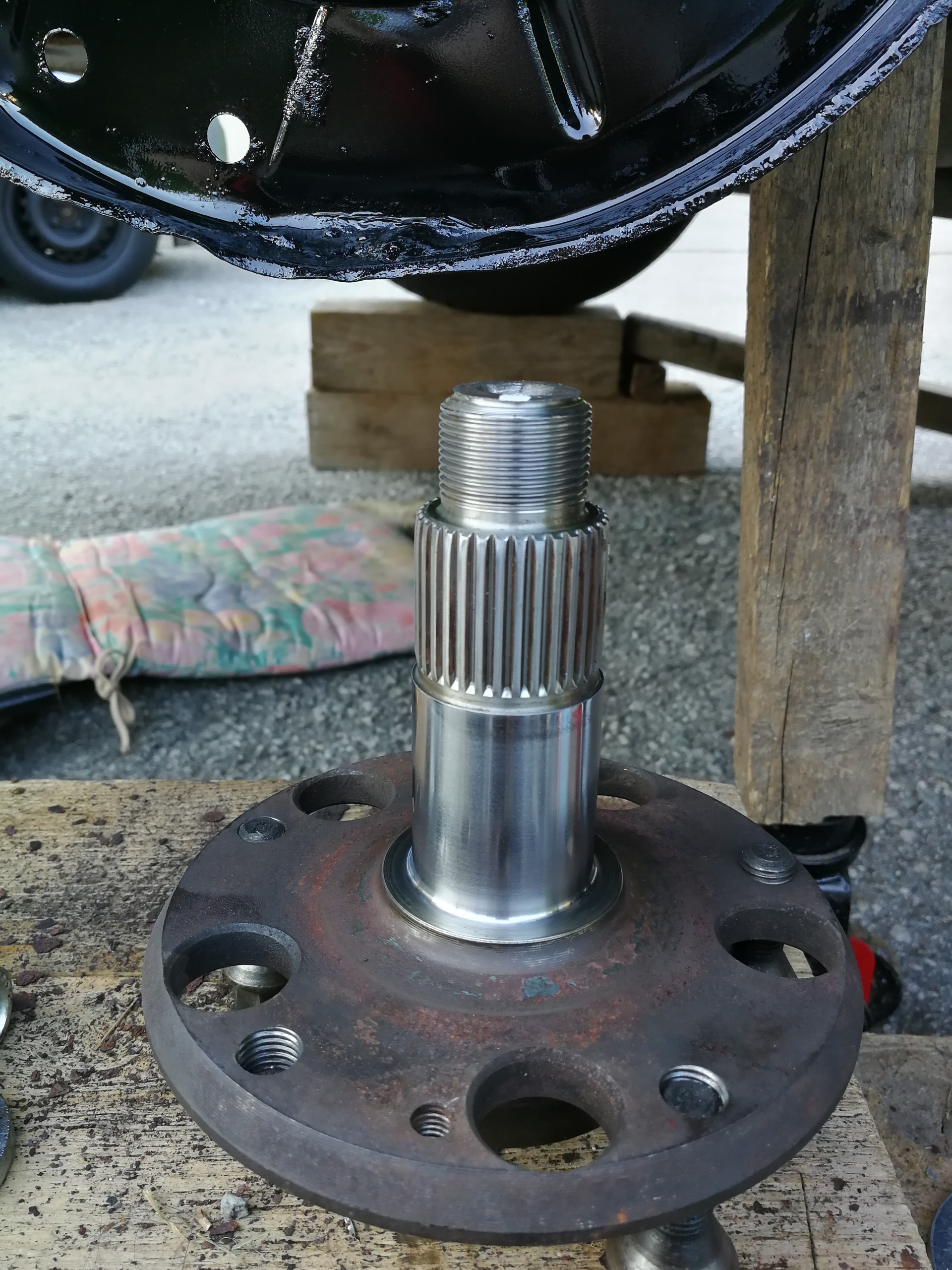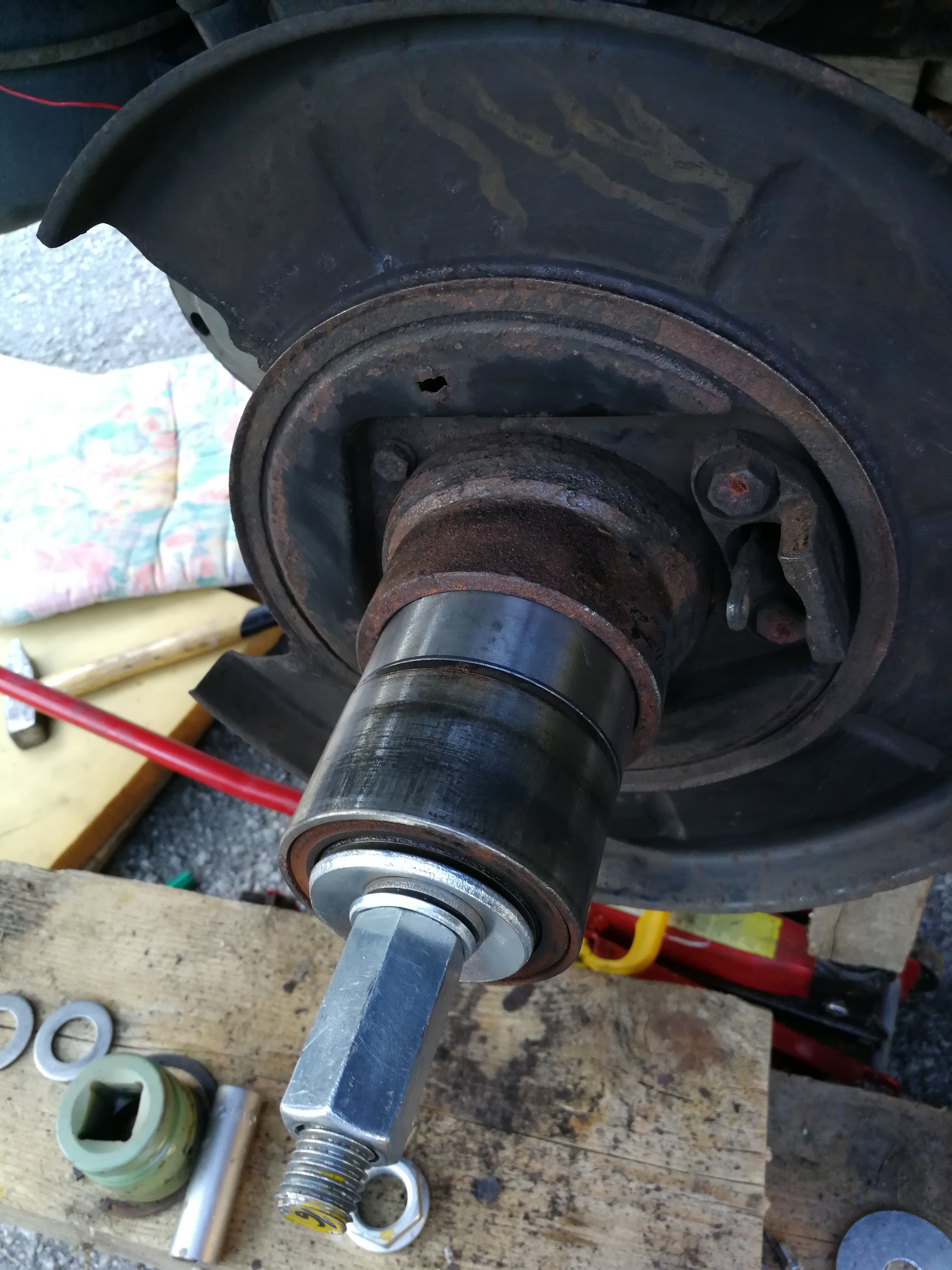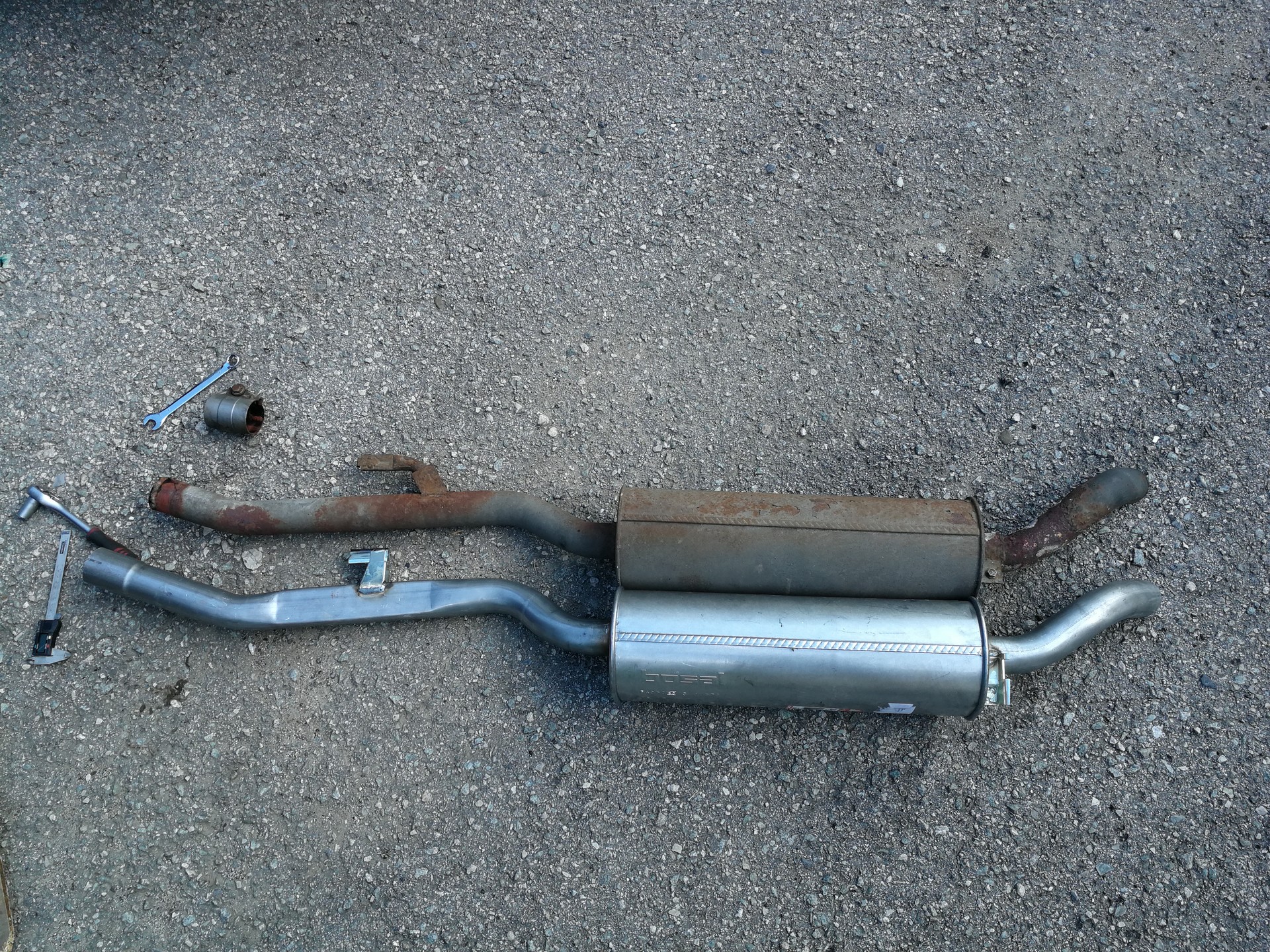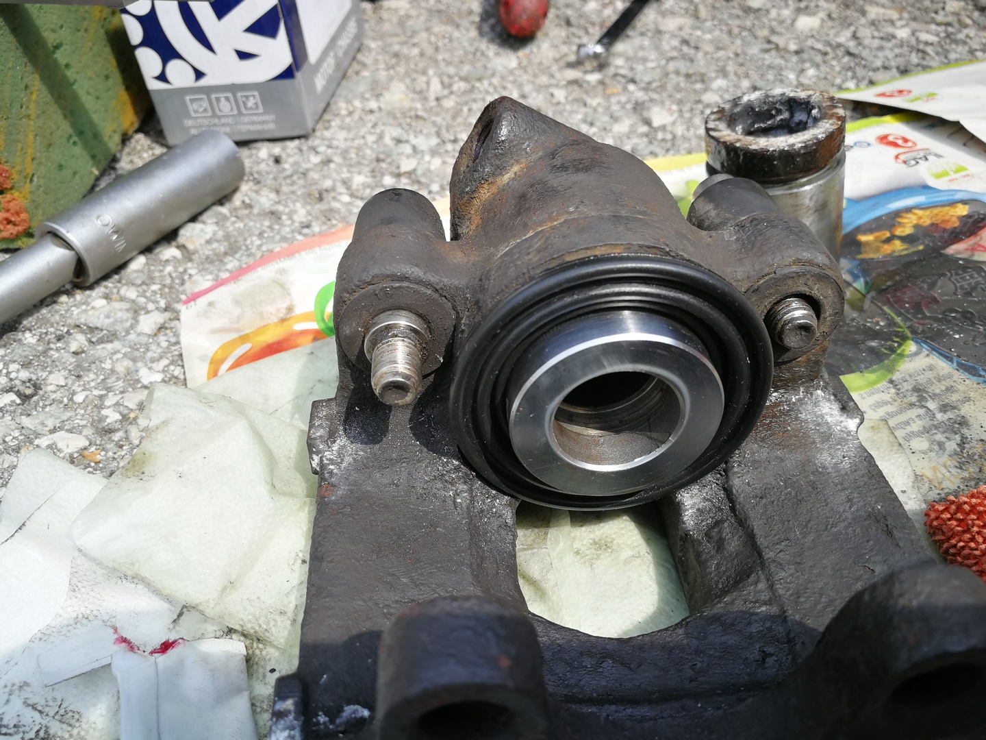 Tento rok prišlo k výmene bŕzd. Vzadu boli snáď pôvodné a v predu najprv Meyle (pokrútili sa), potom jazdené ATE Powerdisc (pravá strana sa tiež zvlnila), tak reku dám nové všetko. A aby to bolo komplet, s tým išli aj ložiská (najprv len predné, zadné neskôr). Po výmene kotúčov zmizli dunivé vibrácie zo zadne nápravy pri jazde na dialnici. Výmena predných ložísk bola veľmi príjemná robota, čo už sa nedá povedať o zadných. Hlavne vylisovanie ložiska bol najhorší úkon, kedže to vylisovať nešlo. Zaujímavé, že na prednú nápravu sú v sade aj matice, na zadnú už nie, takže origoš BMW 7,5€/kus. Pri výmene zadných ložísk som zistil, že zadný tlmič má už lepšie časy za sebou. Po hľadaní a dvoch neúspešných objednávkach som konečne našiel shop (jedne z dvoch ns Slovensku), kde mali presne to čo som potreboval. A potom také menšie úkony....hadičky, valčeky, žhavičš...atď.