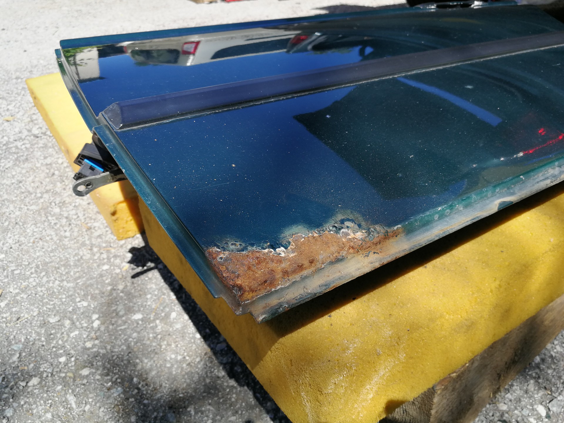Odhodlal som sa aj k oprave hrdze na zadných dverách....šmária, to je kktská robota, zatiaľ jediná oprava, ktorá ma ozaj nebavila. Ale tak nejak sa podarilo. Síce je to ako doma na dvore, ale na prvý pohľad to ani nie je vidieť. Chcelo by to aj predné...ale najskôr spodok vodičovho blatníka, ten je na šalát.