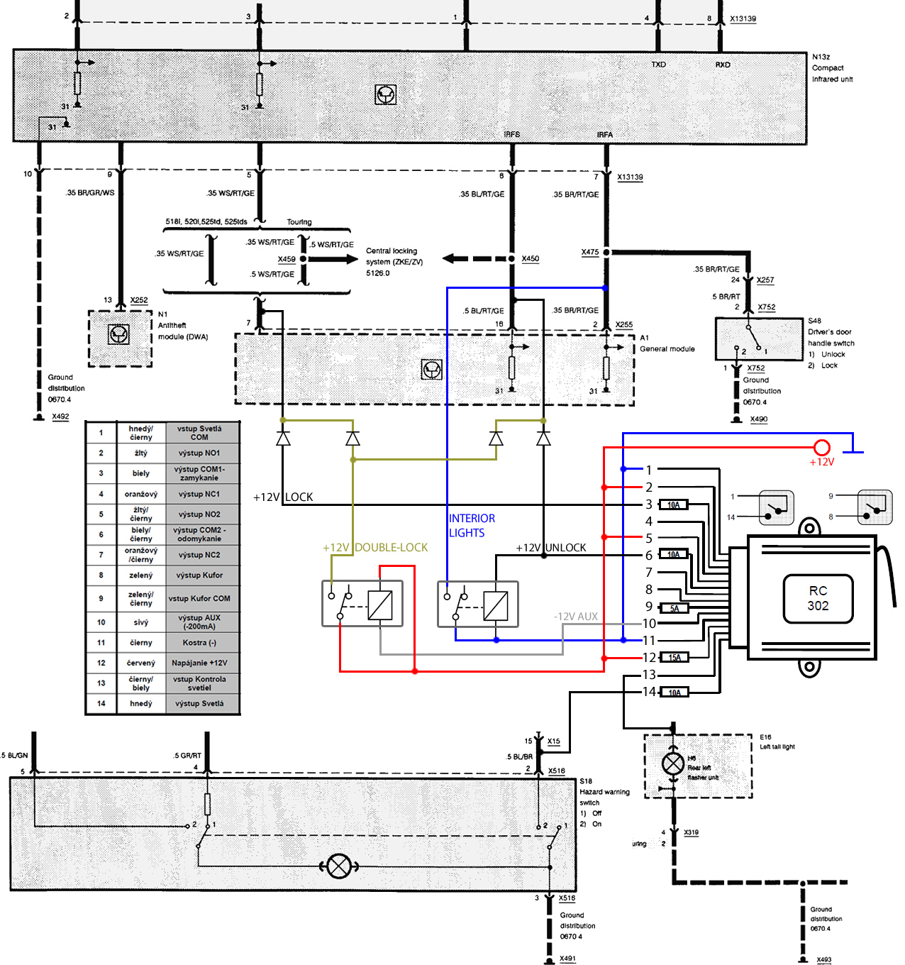 Ovládanie smeroviek, je cez spínač výstražných svetiel - teda na ten istý pin, na ktorý sa po stlačení výstražných privedie zem, sa privádza zem z modulu DO a do DO je privedený signál zo žiarovky, ktorým si modul sleduje správny počet bliknutí. Teda jednotka si sama pri odomknutí odsleduje dve bliknutia.