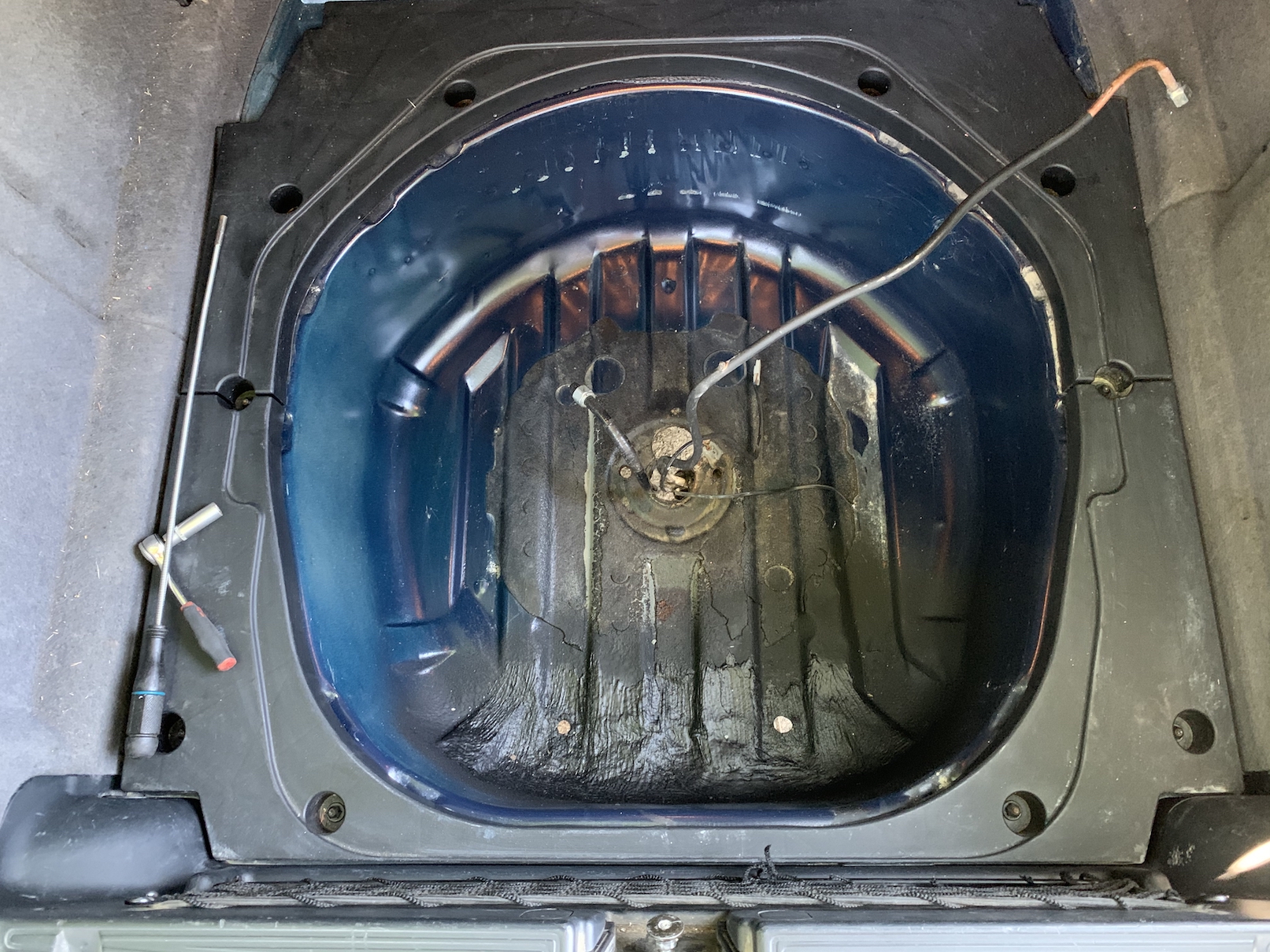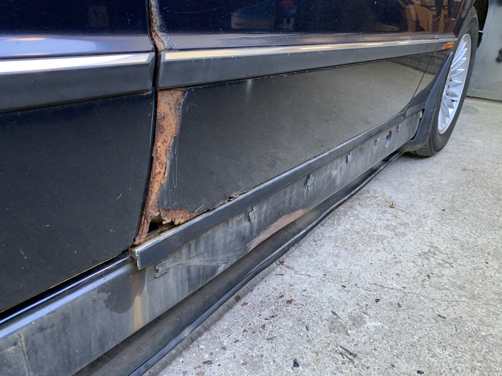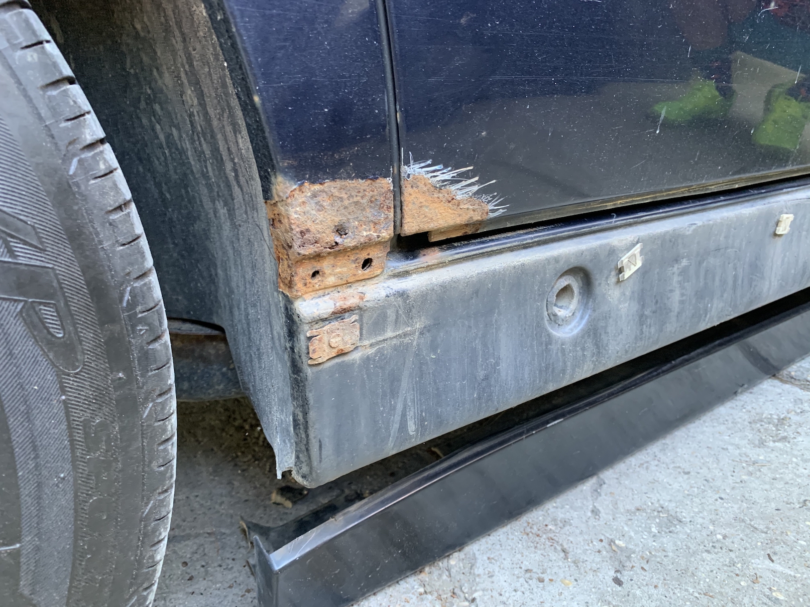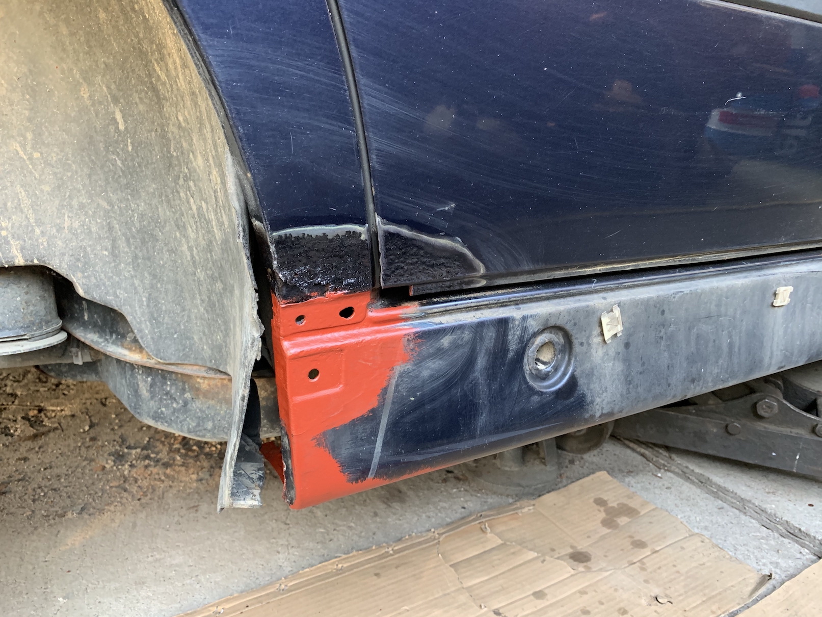 Včera takto, vybrúsenie hrdzky, vyrovanie priestoru pod plynovou bombou. Som rád, že hrdza je fakt len povrchová, žiadne diery, len orezlinky. Neminú nás nové dvere spolujazdca. Zo skladu som doniesol plný kufor drobností ktoré chýbali alebo boli poškodené. Takže sa postupne na auto nahodia