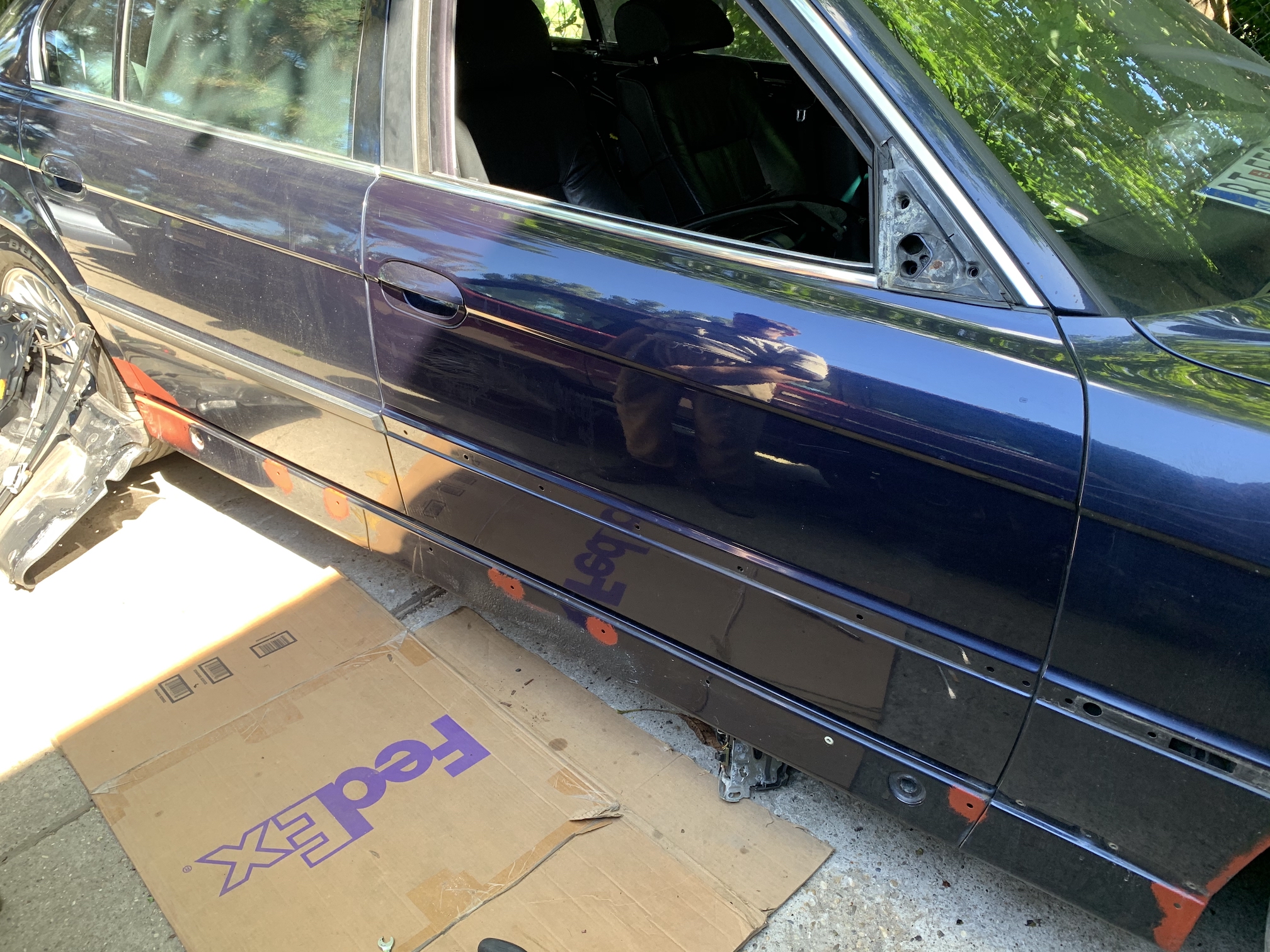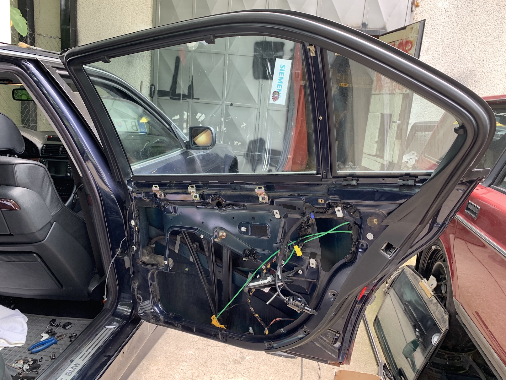 Výmena dverí... ktoré zďaleka neboli tak dokonalé ako ich predajca z ČR vychválil. Ale sú na aute. Preskladanie všetkého zo starých do nových. Žasneme nad tým, koľko vynaliezavosti a energie dal predchádzajúci majiteľ do fušerských riešení. Keby sa to vymenilo za originál veci bolo by to určite rýchlejšie, jednoduchšie a trvácnejšie. No ale o o tom inokedy...