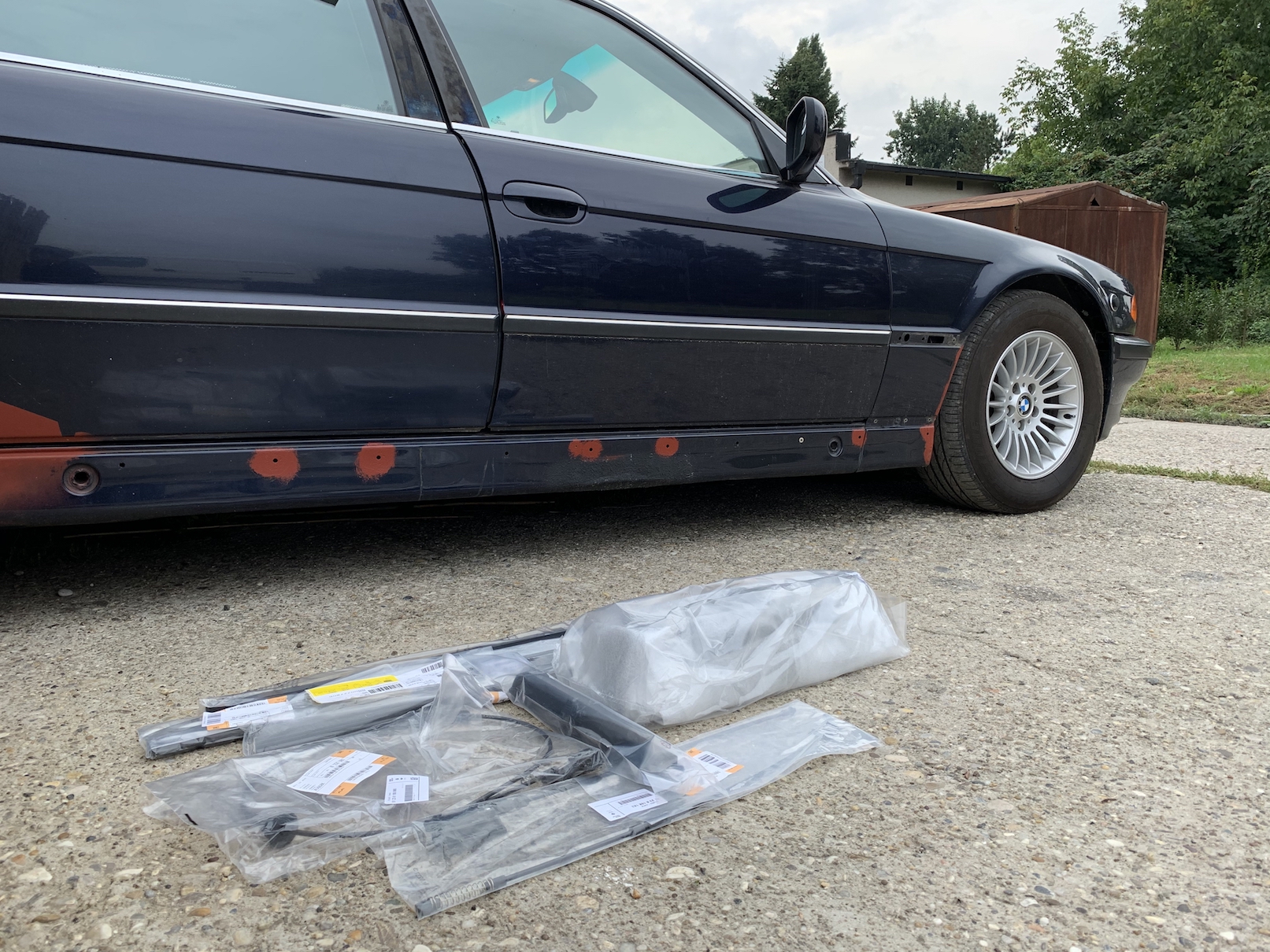 Deň stodvadsiatyšiesty... pochybujem že to ešte niekoho zaujíma, ale dnes došla posledná várka dielov z BMW, t.j. spodné lišty na dvere, plasty okolo predných sedadiel, lanká otvárania kapoty a malá roletka na dvere. Cez víkend sa to strekne, doskladá, a už by to malo byť hotové