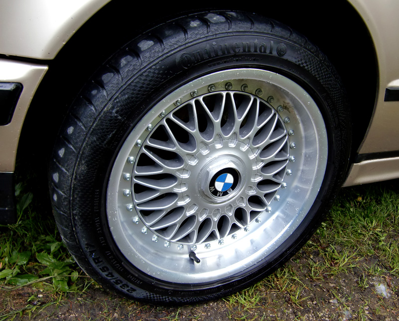 A tak ešte prvý deň nasledovalo nastavenie motora a čerpadla, do koša putovalo egr-ko (podľa testov malo aj tak minimálny vplyv na emisie). Druhý nákup boli BBS RC 090 + bezpečnostné šróby McGard, keďže auto bolo na celkom hnusných plecháčoch (aspoň origo puklice). Po zápise do TP a kúpe pneu (Continental SportContact 3) som zistil, že napriek originálnym rozmerom šúchajú o ramená(zlé ET) a preto tam musím nahodiť podložky a kúpiť celú novú sadu šróbov spolu s bezpečákmi... Nasledovala výmena silentov (Powerflex) na zadnej náprave (nikdy viac), tlmičov a uložení (Meyle). Vôľu v riadení spôsobovali kompletne vybité tyčky riadenia, takže sa vymenili aj tie. Plus hrkotajúca blbosť úchyt výfuku... Aj keď som mal snahu o zachovanie originálneho stavu, pôvodné BMW rádio išlo preč kvôli pár chybným detailom a namiesto neho som kúpil Alpine (vyberal som ho len podľa dizajnu, aby to moc nekričalo)... Potom prišli na rad stierače a žiarovky v zadných svetlách, oprava prerezaných káblov zámku a svetiel v kufri.