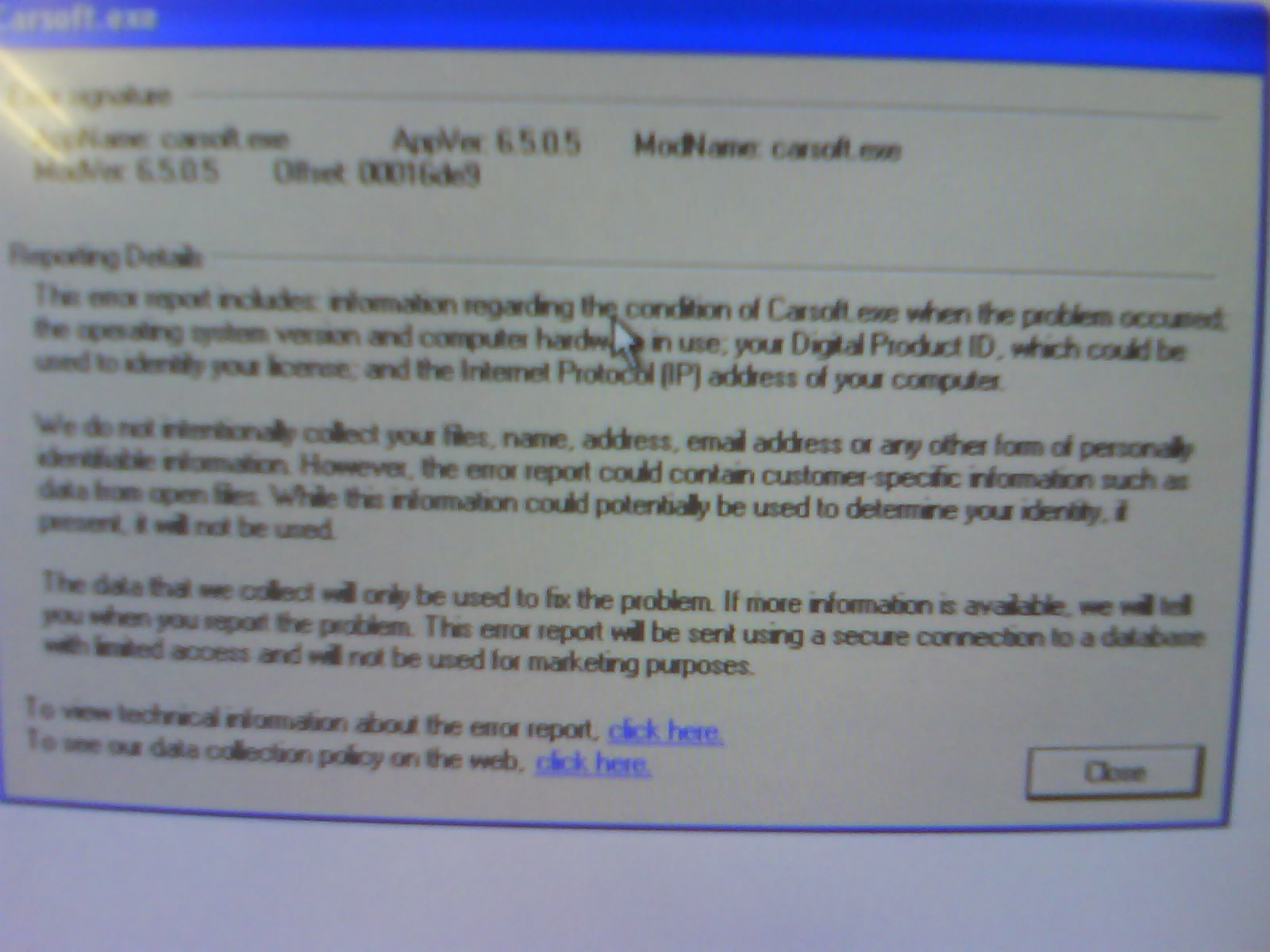 Kupil som si carsoft 6.5 ,po nainstalovani a spusteni programu mi ide, pri spusteni nejakej diagnostiky mi zacne komunikovat a padne soft.(vyhodi chybu vid foto)