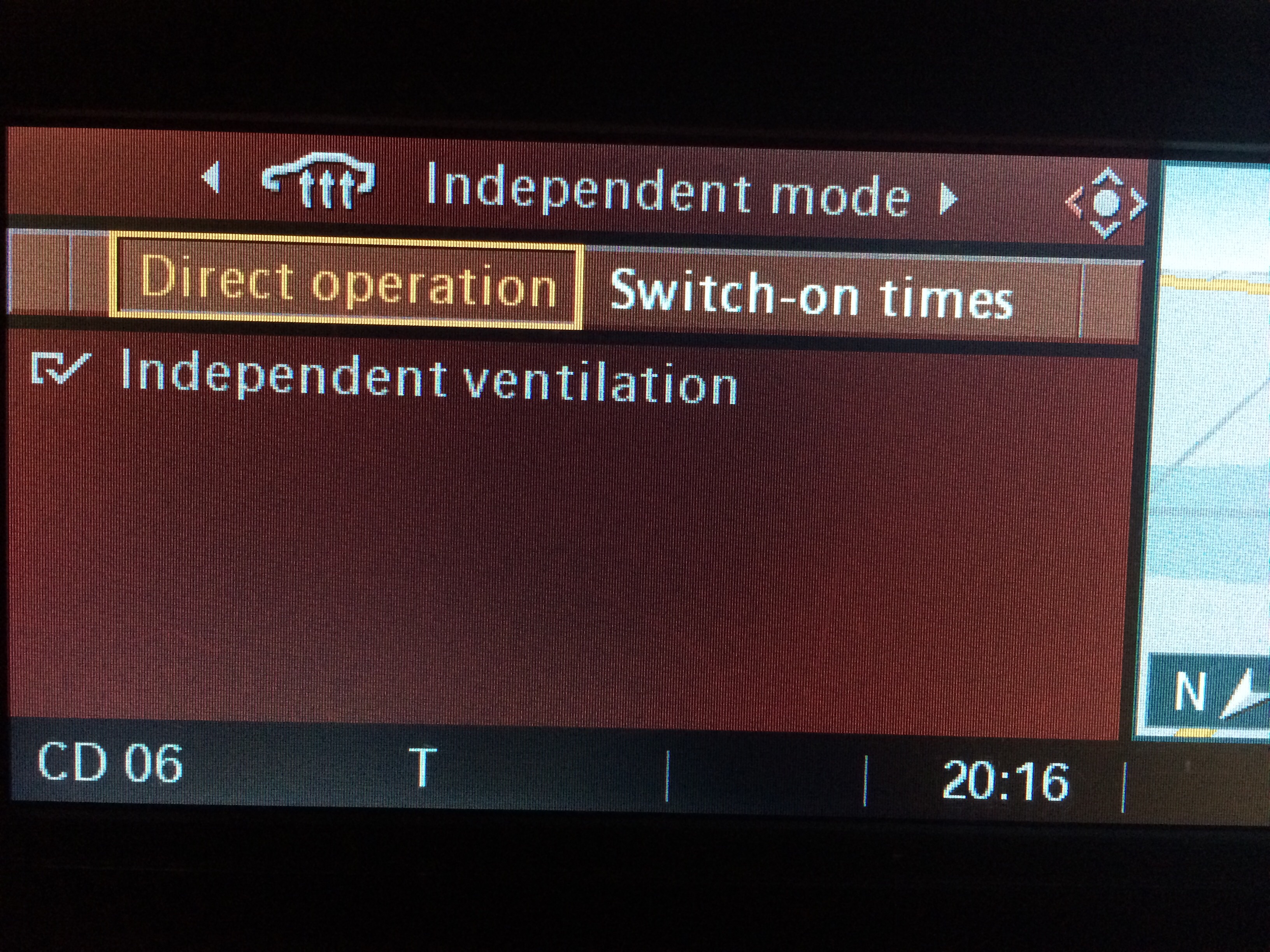 Na prvom obrazku je independent ventilation,co je presny opak nezavisleho kurenia,je to nazavisle vetranie,funguje to tak ze si nadstavis cas(neviem ci mas casovac) a v lete ked ti prazi na auto slnko a je v nom 60st,tak pomocou tejto funkcie si dokazes "vychladit" interier na okolitu vonkajsiu teplotu.....