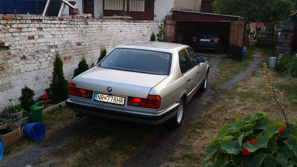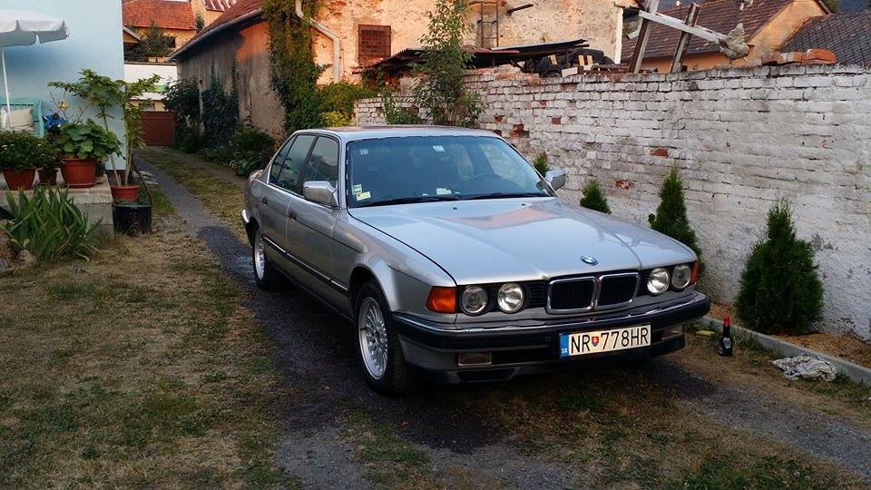 Asi pred dvoma týždňami som kúpil BMW e32, benzinový 8 valec s automatickou prevodovkou. Prikladám foto na nových kolesách.