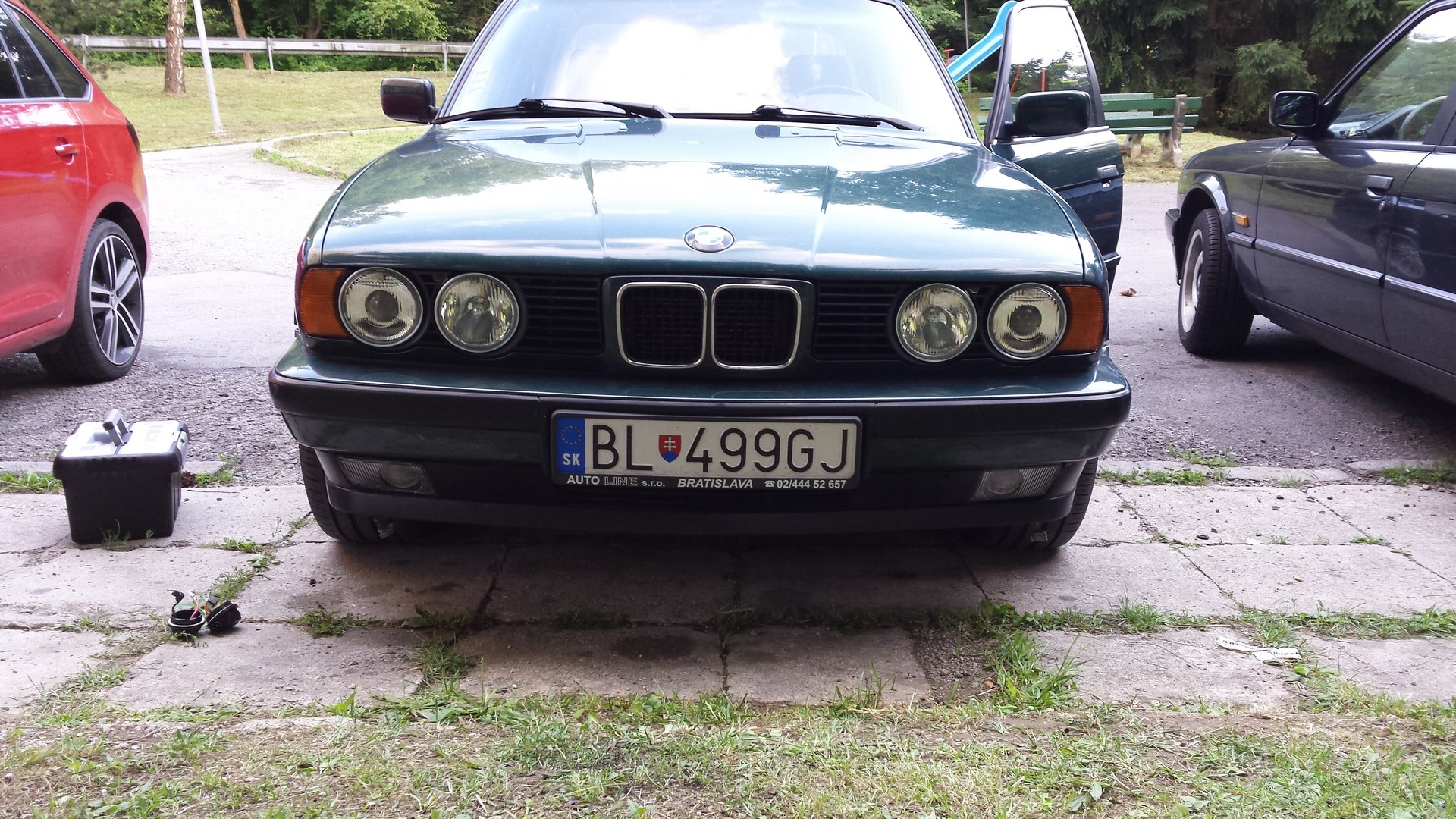 Z vonkuKoumak vymenil všetky dvere (boli z vonku už viditeľne načaté) ale zadné sú už tiež chytené. Prahy sa zdajú byť ok, vodičov blatník dole začal kvitnúť. S tým sa ale na E34 pokiaľ to nie je cukor XXXX € ráta. Karoséria teda zdravá. Čo som si ale všimol po prebrúsení laku, že lak má vyžraté malé dierky na povrchu, nazval by som to, že je pórovitý. Tvári sa to ako dobyté od kamienkov. Je to na kapote, streche, kufri, čiastočne na bokoch. Netuším ako to mohlo vzniknúť, či to niekde dlho stálo a bez ochrany...fakt neviem, ešte som sa s tým nestretol.