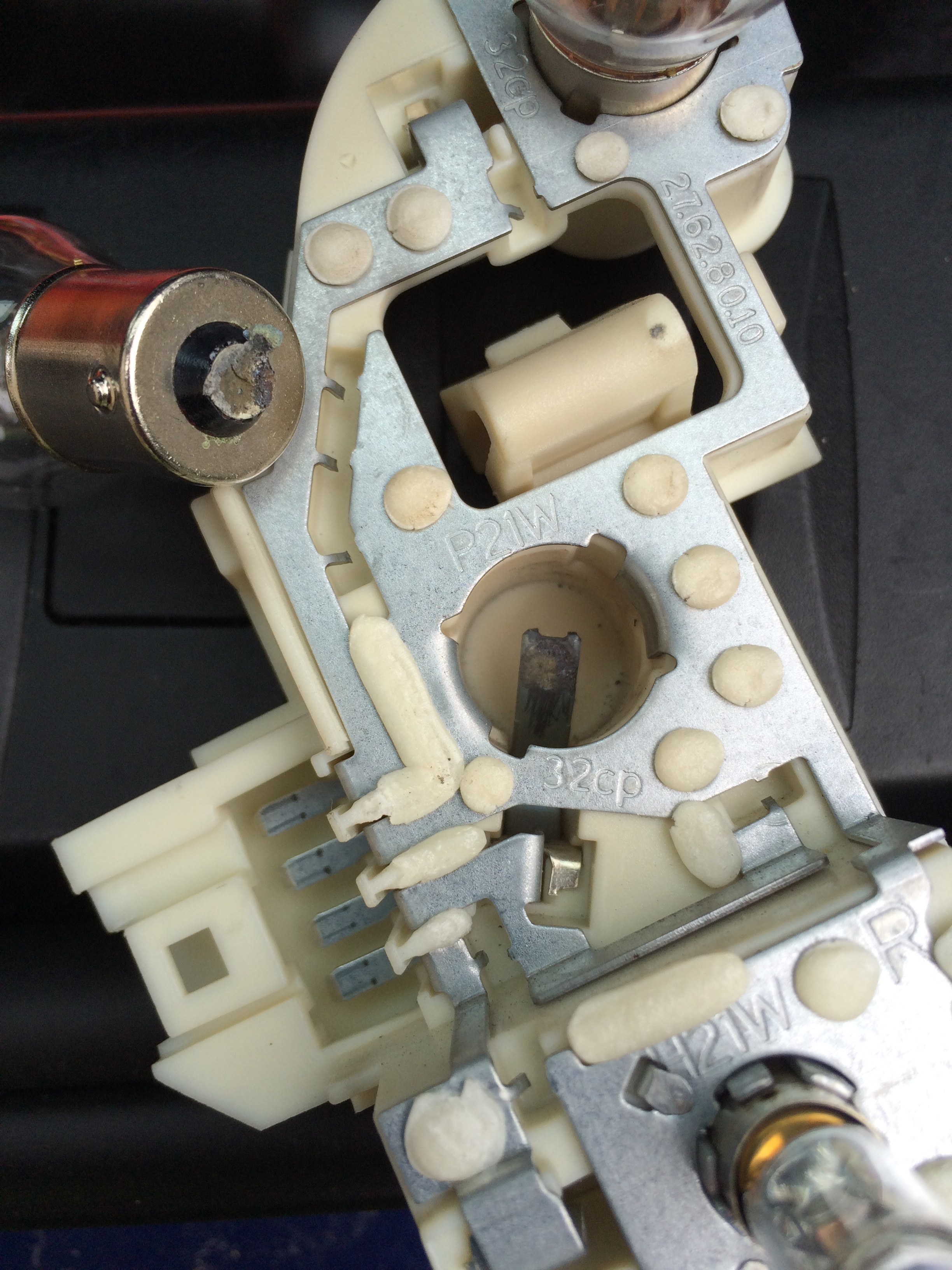 Prikladám ešte fotky úplne spálených kontaktov na žiarovke.