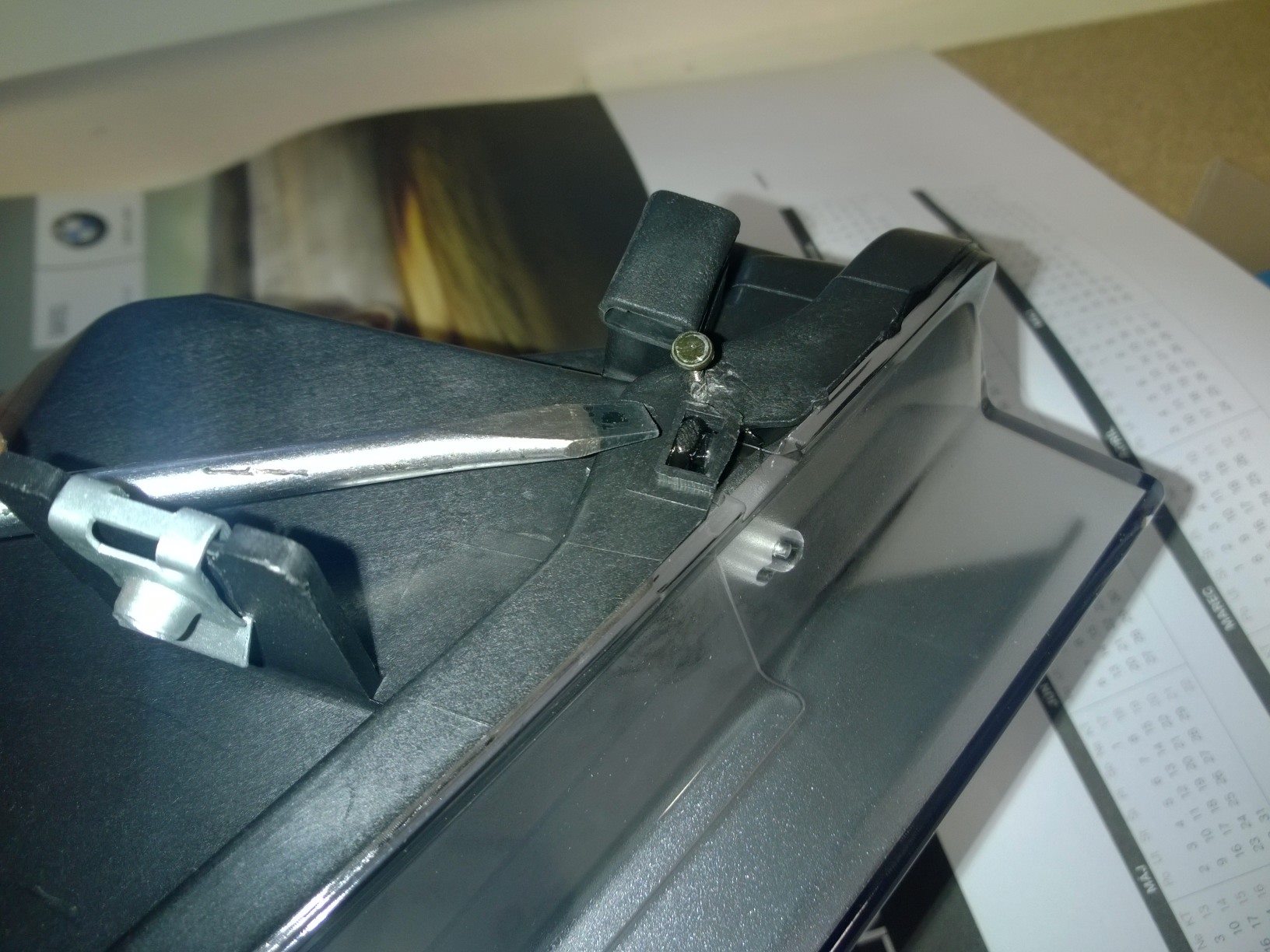 toto je háčik, ktorý drží vnútro svetlometu. Je potrebné zaltačiť napr. šróbovákom obe nožičky.
