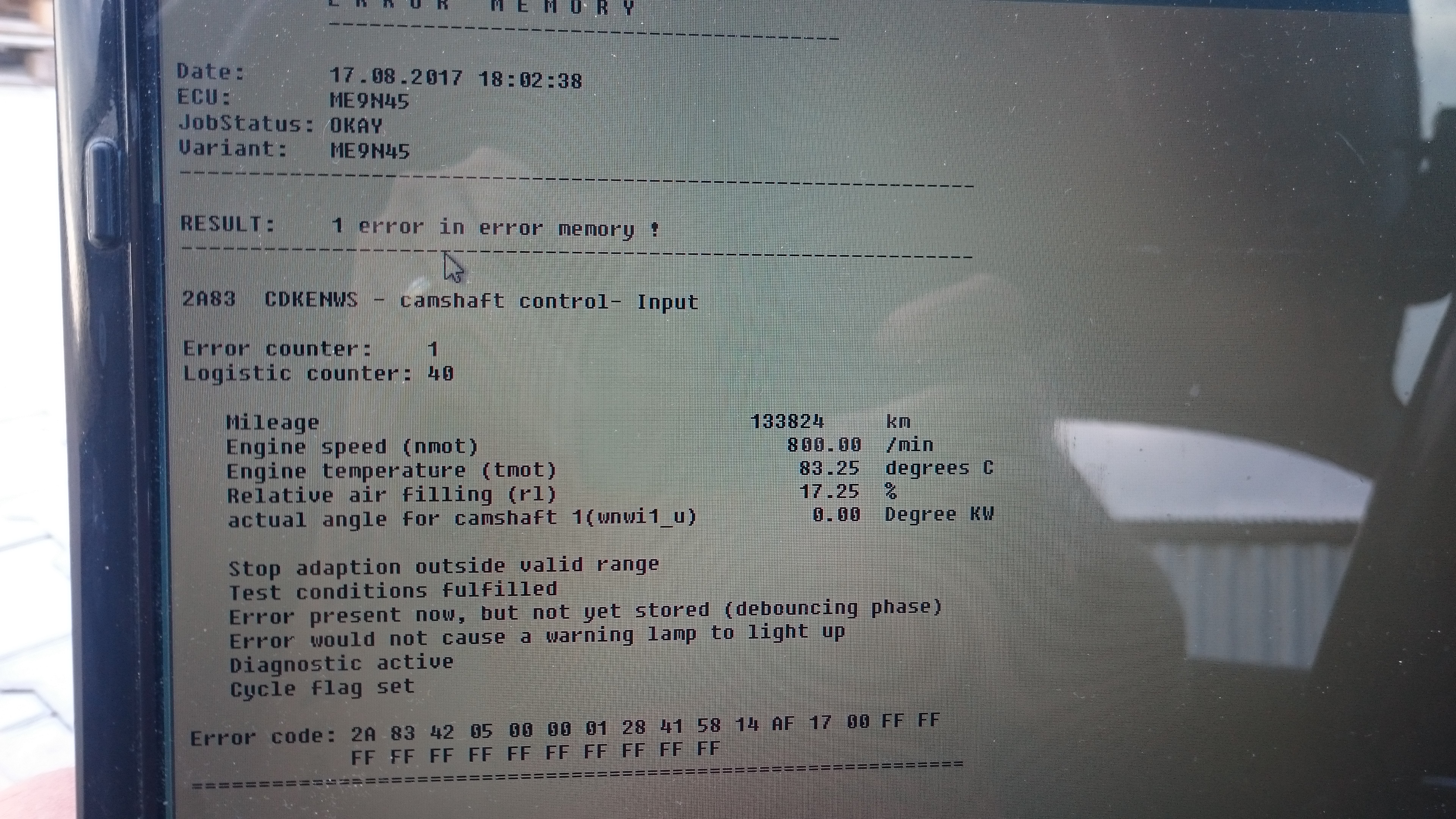 live data vyzeraju byt ok, chybu zacalo vypisovat na motore iba jednu. prikladam obrazok.
