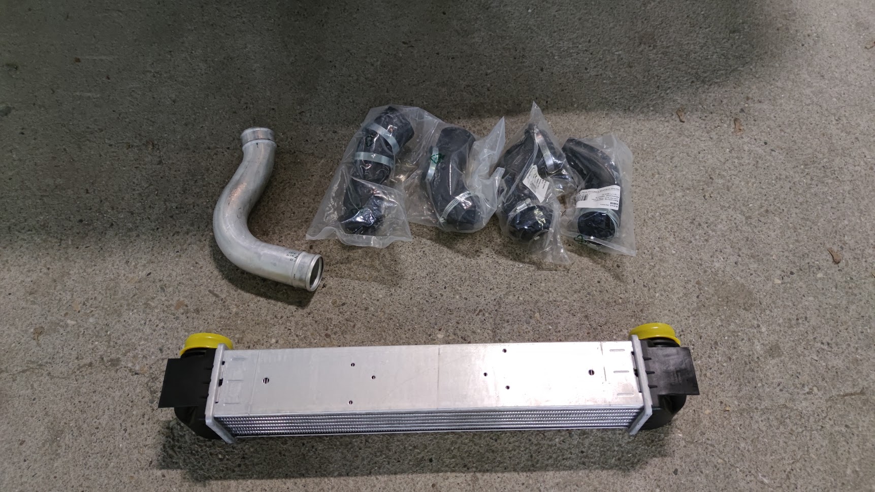 Ako som písal rúru opravovať nebudem, tak som našiel tu pri LV jeden rozpredáva diely na BMW a mal aj túto rúru tak som ju od neho zobral a vyčistil od všetkých nečistôt pred tým ako sa bude nahadzovať nech je pekná čistá :lol: k tomu som nakúpil aj hadice od turba k IC a od IC do sania, a samotný intercooler tiež čisto nový. Všetko pripravené už len počkať do soboty (Vtedy mi to mechanik prehodi) \:D/
