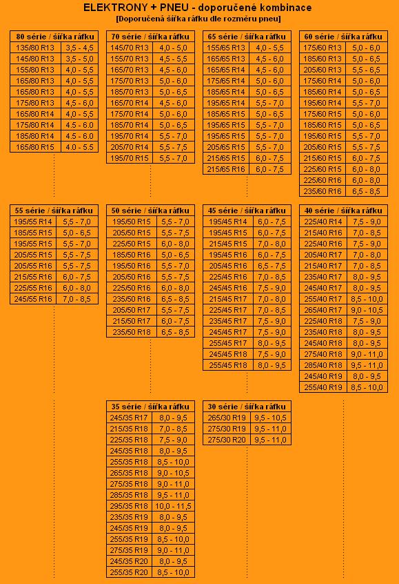Kolega ti to poslal peknu tabulku..., ale s dost velkym rozpatim..., pri 225/40/18 je ideal 8" disk...