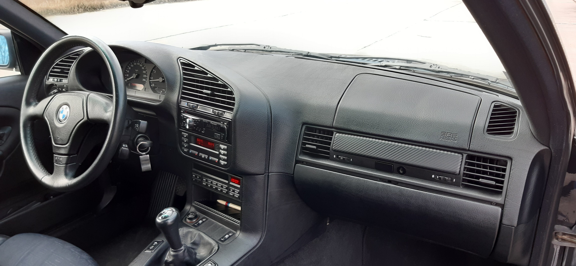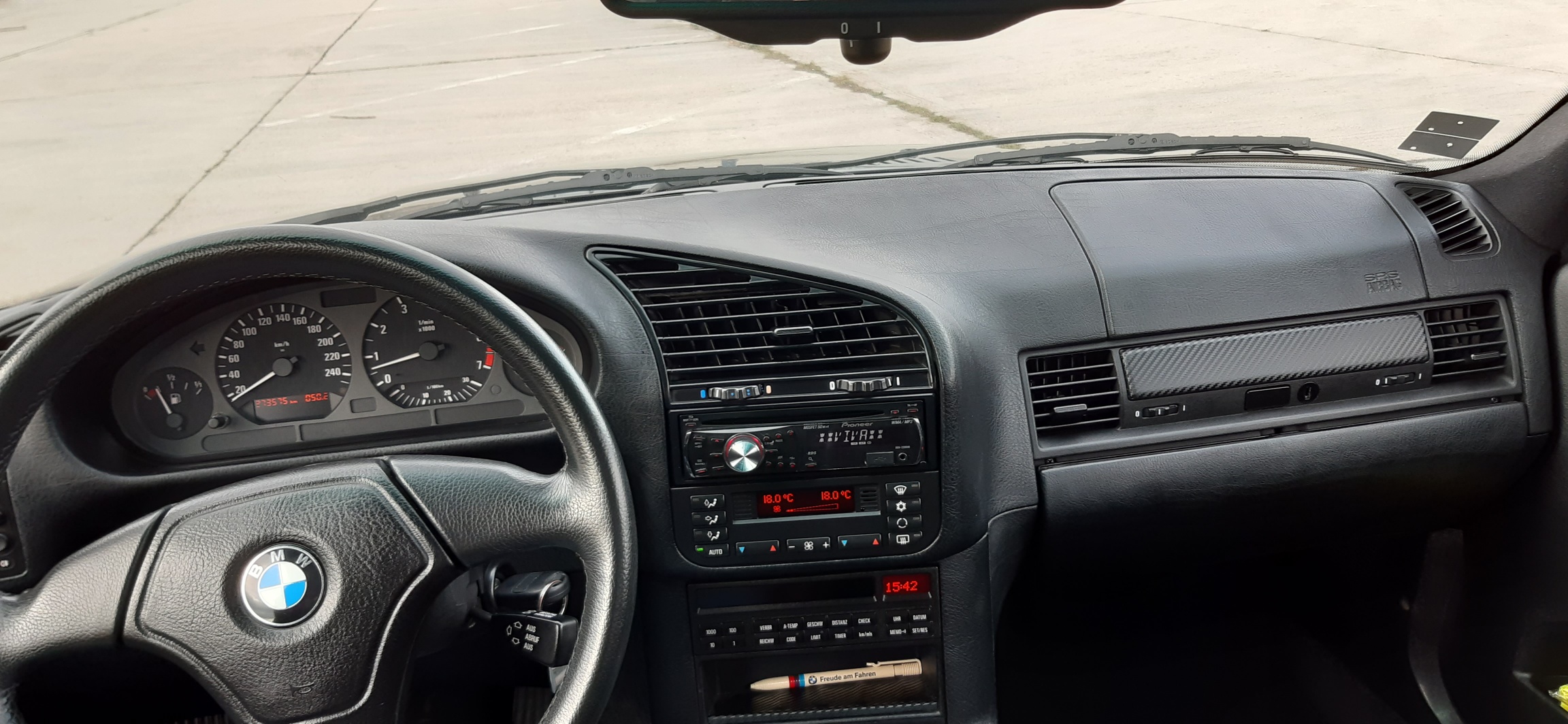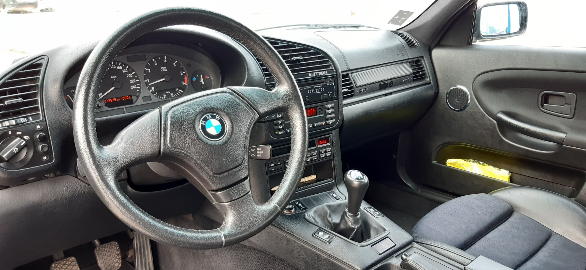 elektrické sťahovanie okien, strešné okno, original Radio RDS business, automatická dvojzónová klíma, full bordcomputer, polokoža, čierny interiér, vyhrievané predné sedadlá, športový trojramenný volant, clona na zadnom okne, hmlovky, ABS,... a to je snáď všetko... :roll: