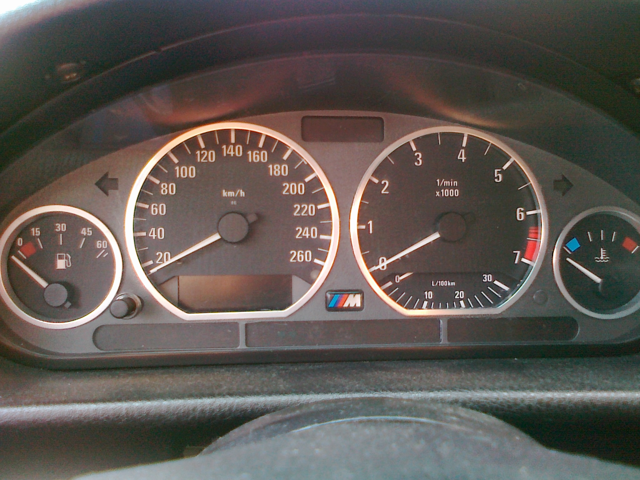 toto budú asi predfacelift budíky nie? palivo v litroch, teplota má paličku aj v strede a tacháč do 260. tak isto to mám aj ja. a na 320i :) a je to tam original.