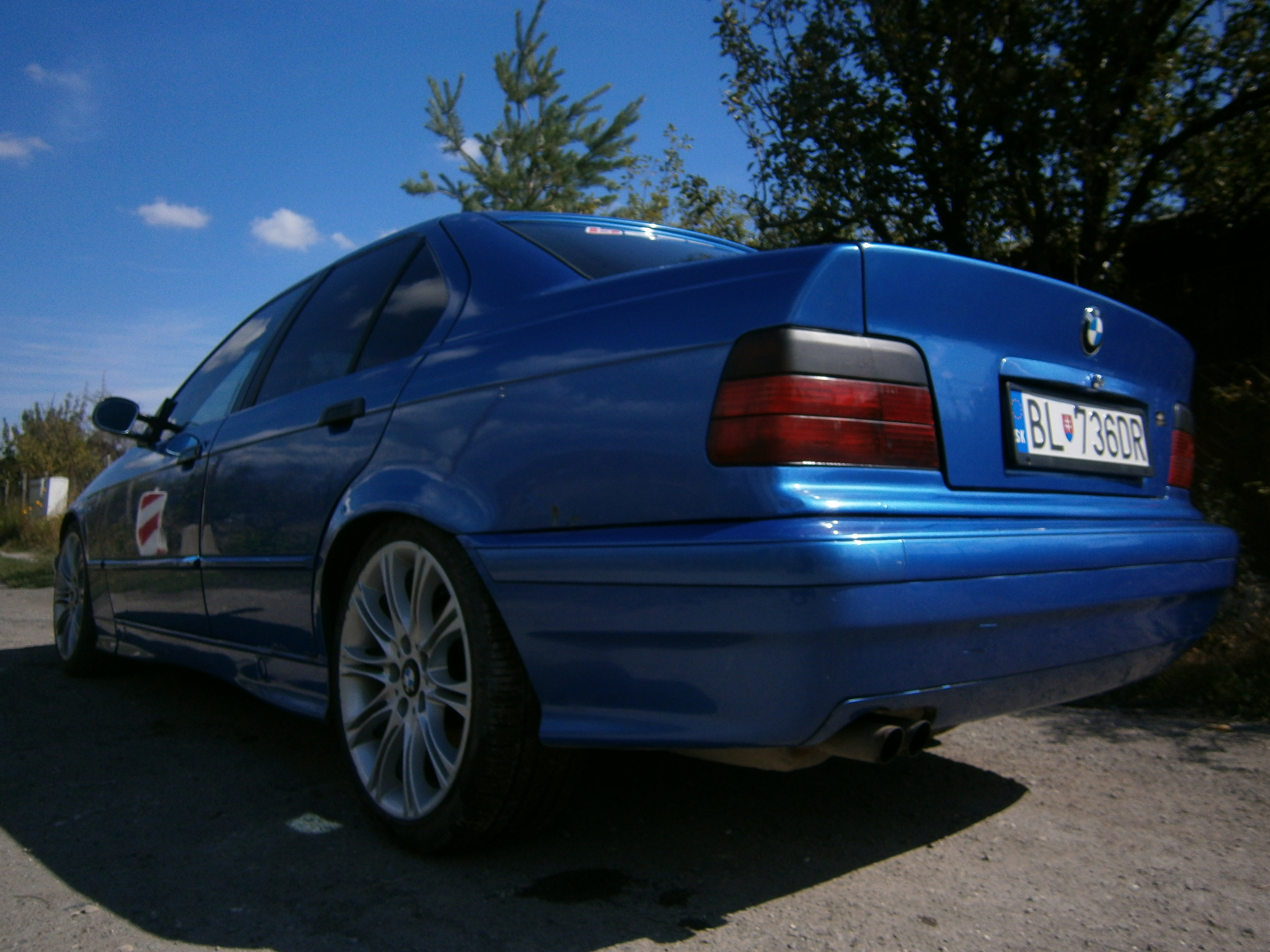 a odisli sme prec.Pokukoval som dalej po internete a nasiel som jednu peknu e36 325i 1992/12 na m-kovych diskoch 225/35/18 v m-packete proste sa mi pacila na prvy pohlad.Volal som chlapovi hovori mi ze jedina cyba je ze tecie riadenie ale ze da mi k tomu druhe ze staci prehodit,hovorim ze dobre kedy mozme prist,on ze aj zajtra.Tak sme hned na druhy den isli pozret s bratom do Novych Zamkov.prisli sme tam mali sme sa stretnut na pumpe boli sme tam asi o 10min skor,ale hned jak som uvidel bawa na ceste som vedel ze bude moje aj sa tak stalo.isli sme sa previest zistil som ze je tam viac veci zlych ako napr predna naprava geometria olej z motora tiekol ale vobec mi to nevadilo.Isli sme podpisat zmluvu a hura naspat do blavy.Po vedlajsich cestach to bol brutal s tou geometriou v kolajach ale na dialnici to bola jedna radost 180km/h este sme sa nahanali s jednou e39 m5