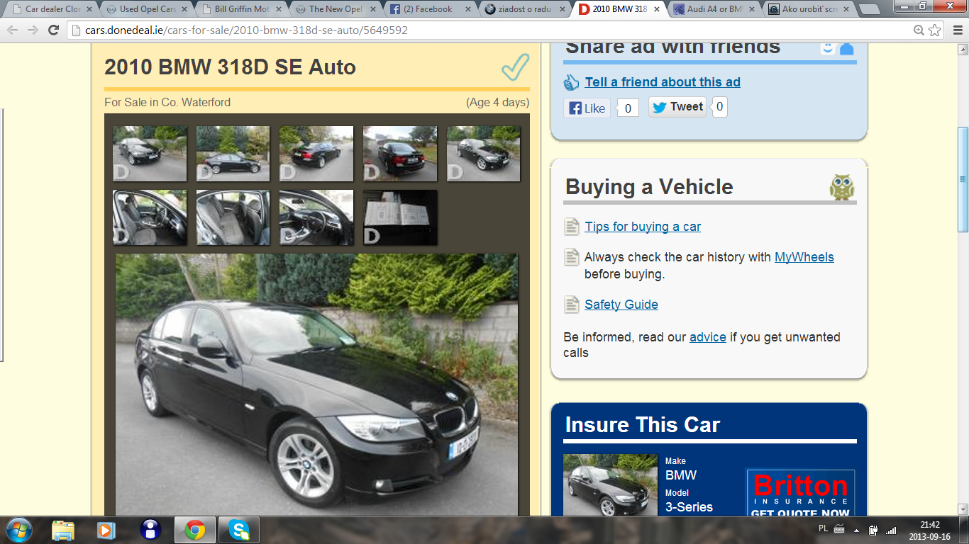 to druhe je 2010 BMW 318D SE Auto v zakladnej vybave myslim a ma najazdene kolo 163oookm, jeden majitel a dava mi nan zaruku pol roka a cena je 14995 euro.