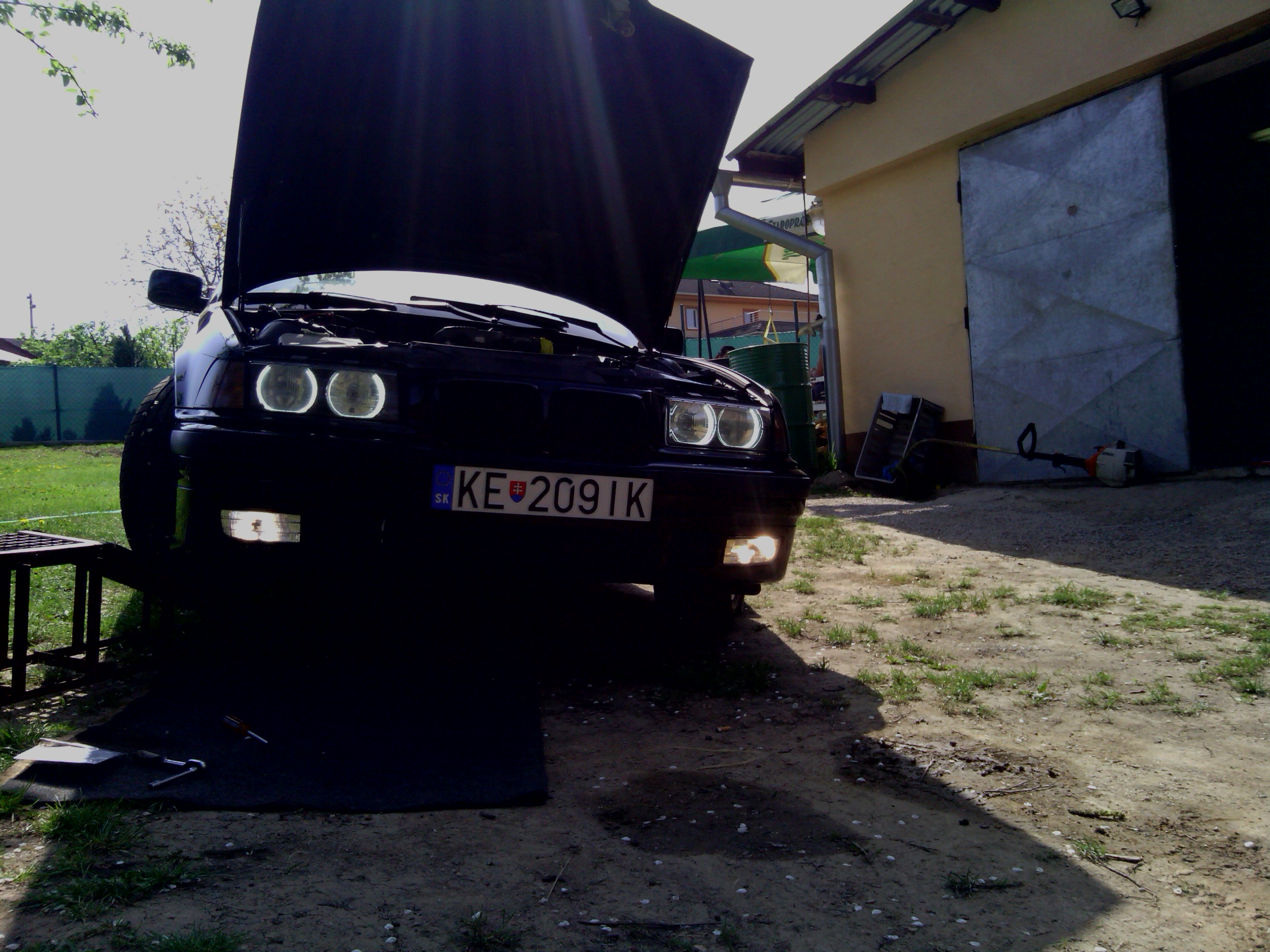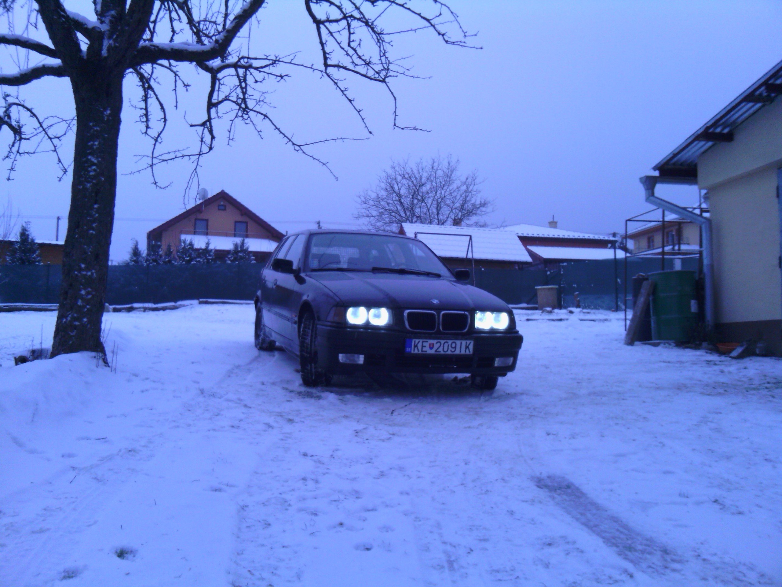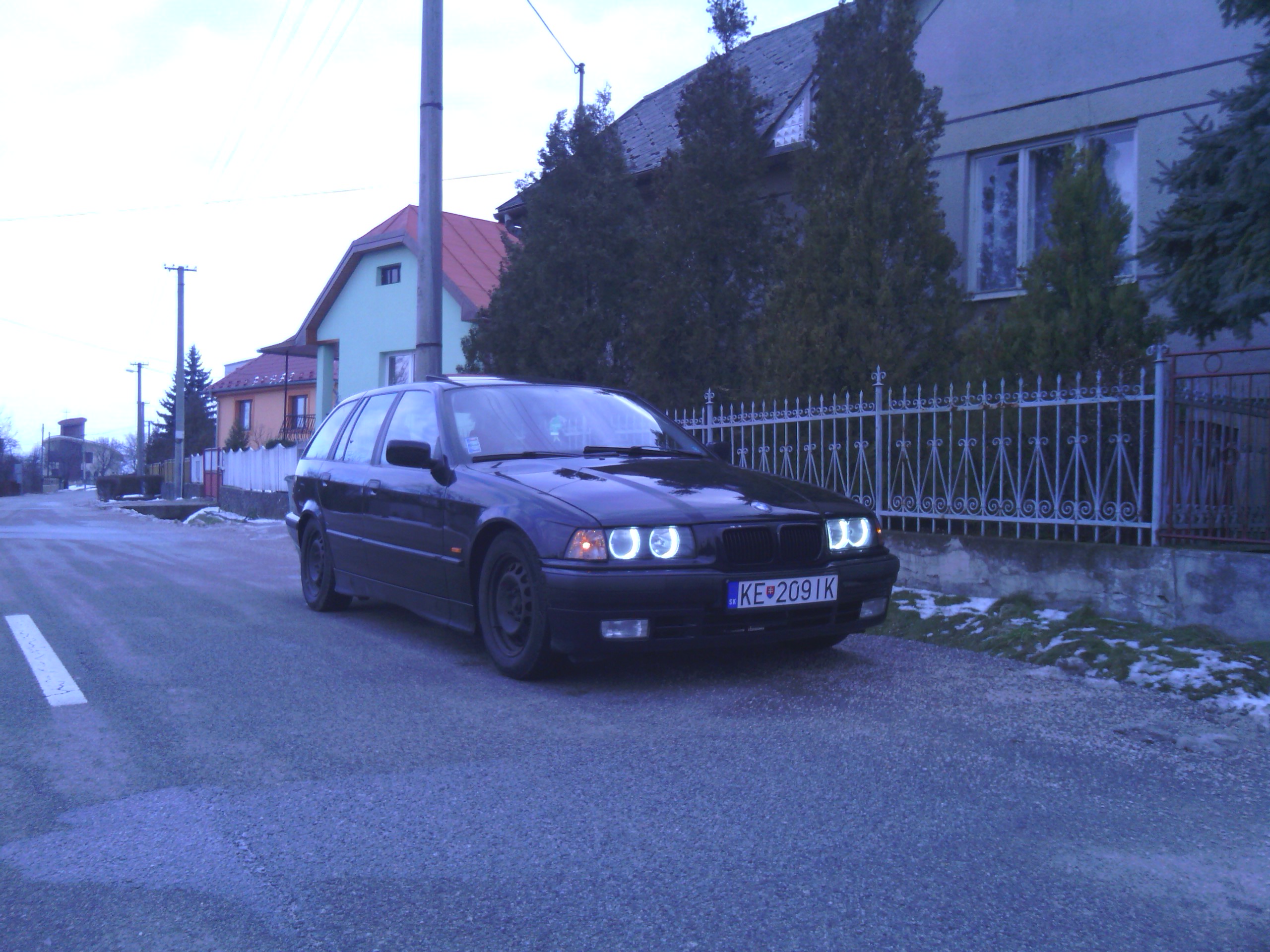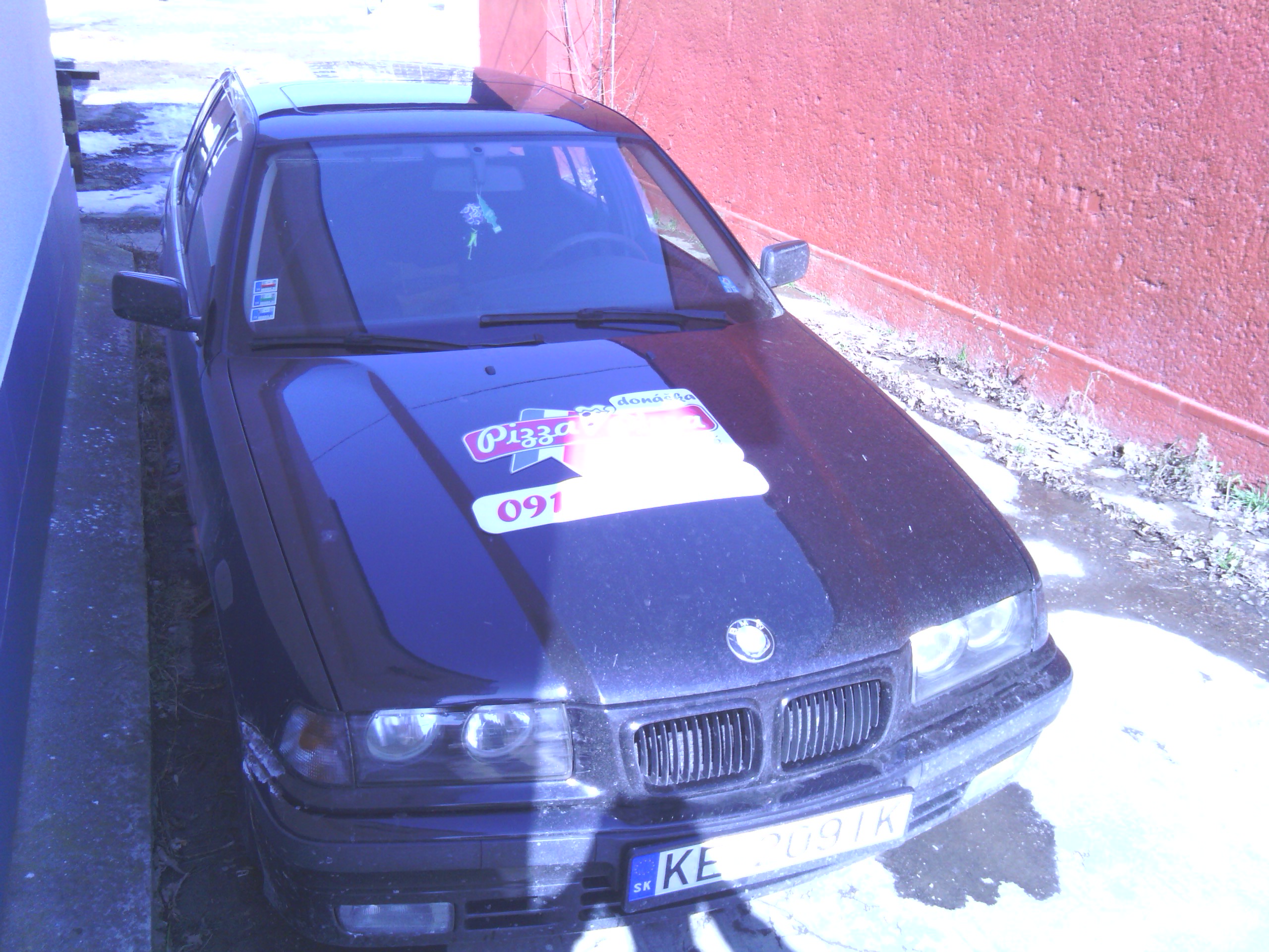 Nastal čas opisať a približiť trochu toto moje približovadlo... som majtelom tohto bmw a az teraz som si našiel čas urobiť ako taky pribeh.... všetko to začalo tym že sa na mojom učte zhromaždilo zopar eur, tak som sa rozhodol si kupit nejake premiestnovadlo.Pozeral som po značkach typu škoda audi no ani jedno nevyhovovalo ....az kym mi raz kamarat neukazal inzerat na jedno e36 coupe ktore sa mi zapacilo no 3 dvere nieje moj vkus... tak som začal hľadať tzv. kombíčka alias touringy az som nasiel jednu peknu e39 2,0 benzin tak som sa šiel nanu pozrieť na spiš .Co cert nechcel po ceste mi chlapec oznamil ked som mu volal ze je uz predana.tak som badal dalej a nasiel som dva e36 tour-y jeden svetlomodry v M-packete ktory mal najazdene okolo280 000 niekde od Zvolena a spol a druhy cierny na plechačoch z namestova z najazdenymi 160 000cami. tak som sa vybral do namestova a doniesol som si ho...spokojnosť 100 bodov nakolko som dovtedy jazdil na audi 80 rv. 87. Najlepsie natom bolo že chlapik zanho pytal 2500.. po telefone som to dal na 2200 a po ceste, ked som mu volal ze som na ceste povedal ze cena ostava povodna. Nakoniec som na mieste dohodol cenu 2300 stym že mi zal letne gumy na diskoch + jednu gumu do rezervy, nove nepouzite Monroe reflex predne tlmiče, rohožky ´´vaničky´´ , predny naraznik (polamany) a kopec dokladov bločkov a papierov o historii auta.Takze 20.12.2012 som sa stal hrdym majtelom BMW.:)
