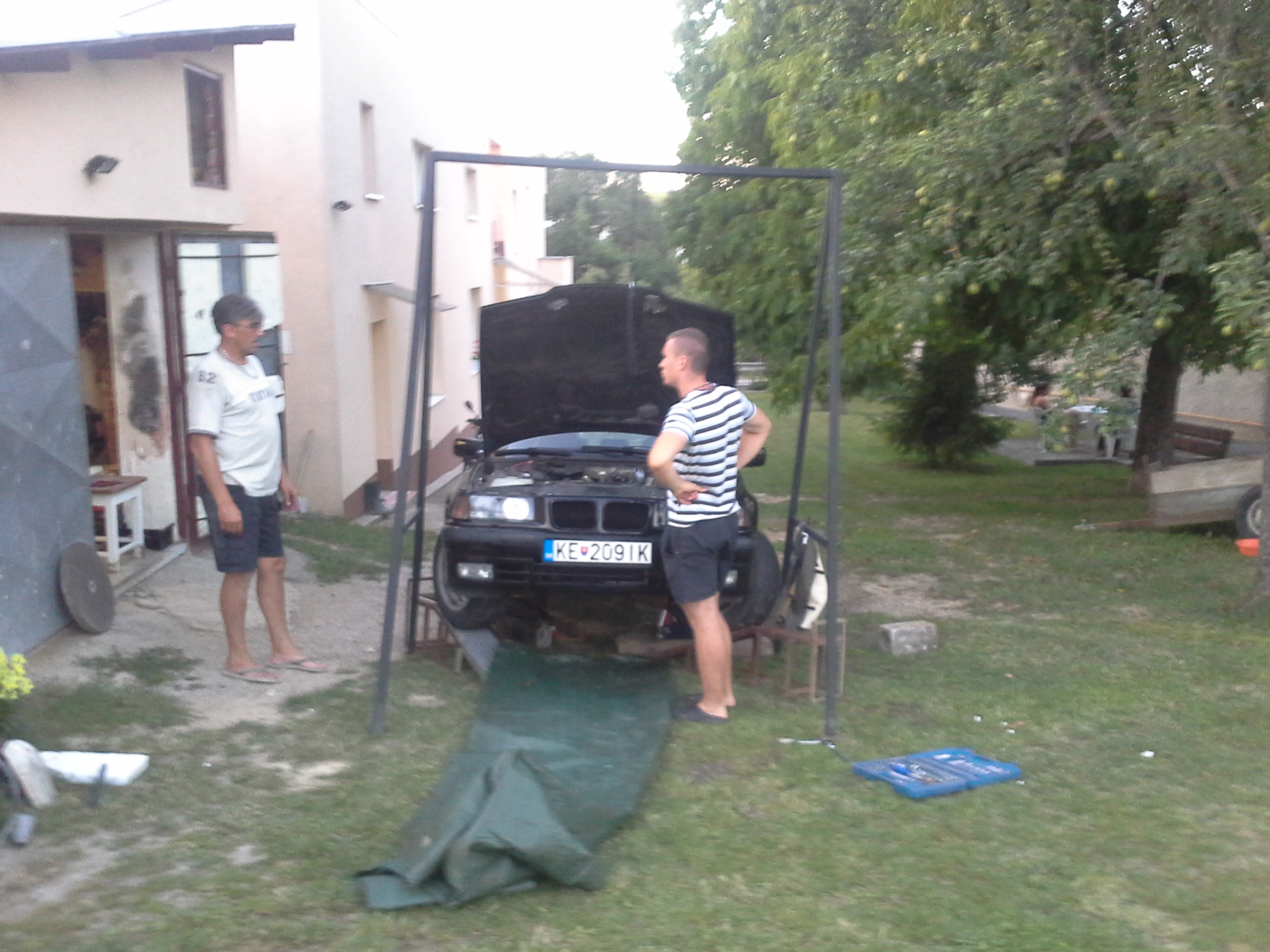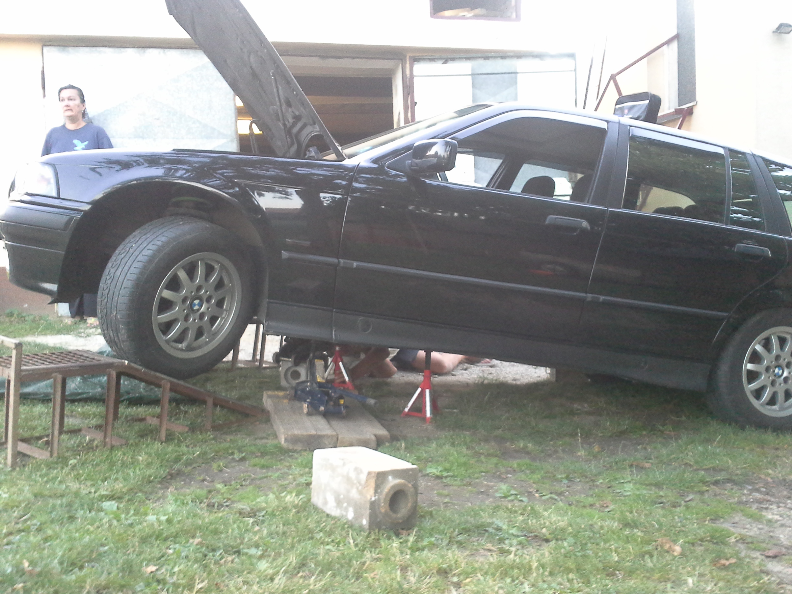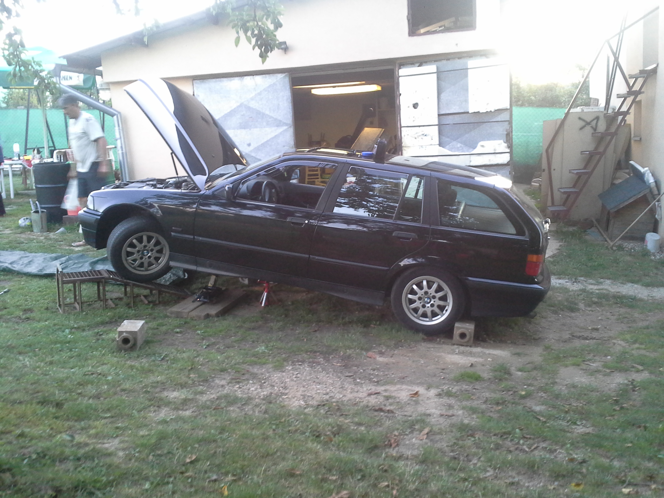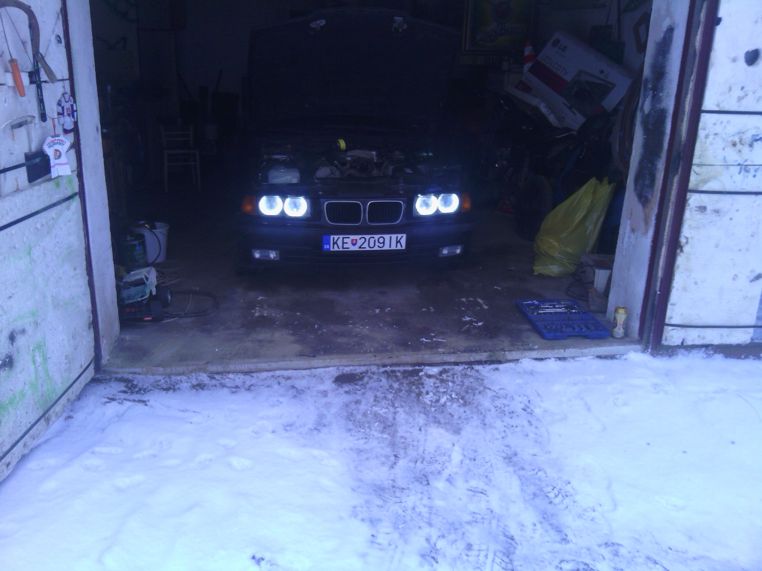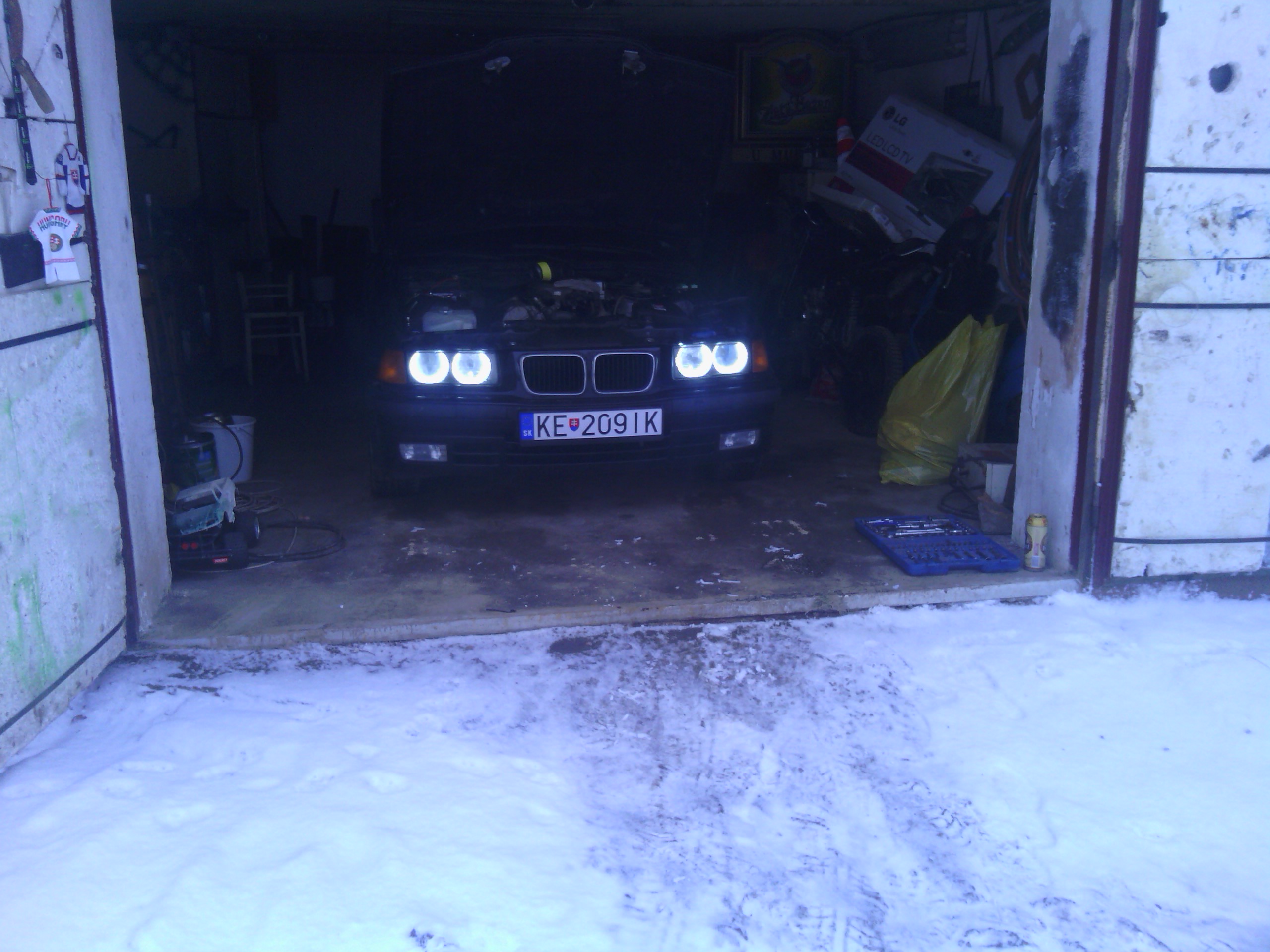 Nastal čas opisať a približiť trochu toto moje približovadlo... som majtelom tohto bmw a az teraz som si našiel čas urobiť ako taky pribeh.... všetko to začalo tym že sa na mojom učte zhromaždilo zopar eur, tak som sa rozhodol si kupit nejake premiestnovadlo.Pozeral som po značkach typu škoda audi no ani jedno nevyhovovalo ....az kym mi raz kamarat neukazal inzerat na jedno e36 coupe ktore sa mi zapacilo no 3 dvere nieje moj vkus... tak som začal hľadať tzv. kombíčka alias touringy az som nasiel jednu peknu e39 2,0 benzin tak som sa šiel nanu pozrieť na spiš .Co cert nechcel po ceste mi chlapec oznamil ked som mu volal ze je uz predana.tak som badal dalej a nasiel som dva e36 tour-y jeden svetlomodry v M-packete ktory mal najazdene okolo280 000 niekde od Zvolena a spol a druhy cierny na plechačoch z namestova z najazdenymi 160 000cami. tak som sa vybral do namestova a doniesol som si ho...spokojnosť 100 bodov nakolko som dovtedy jazdil na audi 80 rv. 87. Najlepsie natom bolo že chlapik zanho pytal 2500.. po telefone som to dal na 2200 a po ceste, ked som mu volal ze som na ceste povedal ze cena ostava povodna. Nakoniec som na mieste dohodol cenu 2300 stym že mi zal letne gumy na diskoch + jednu gumu do rezervy, nove nepouzite Monroe reflex predne tlmiče, rohožky ´´vaničky´´ , predny naraznik (polamany) a kopec dokladov bločkov a papierov o historii auta.Takze 20.12.2012 som sa stal hrdym majtelom BMW.:)