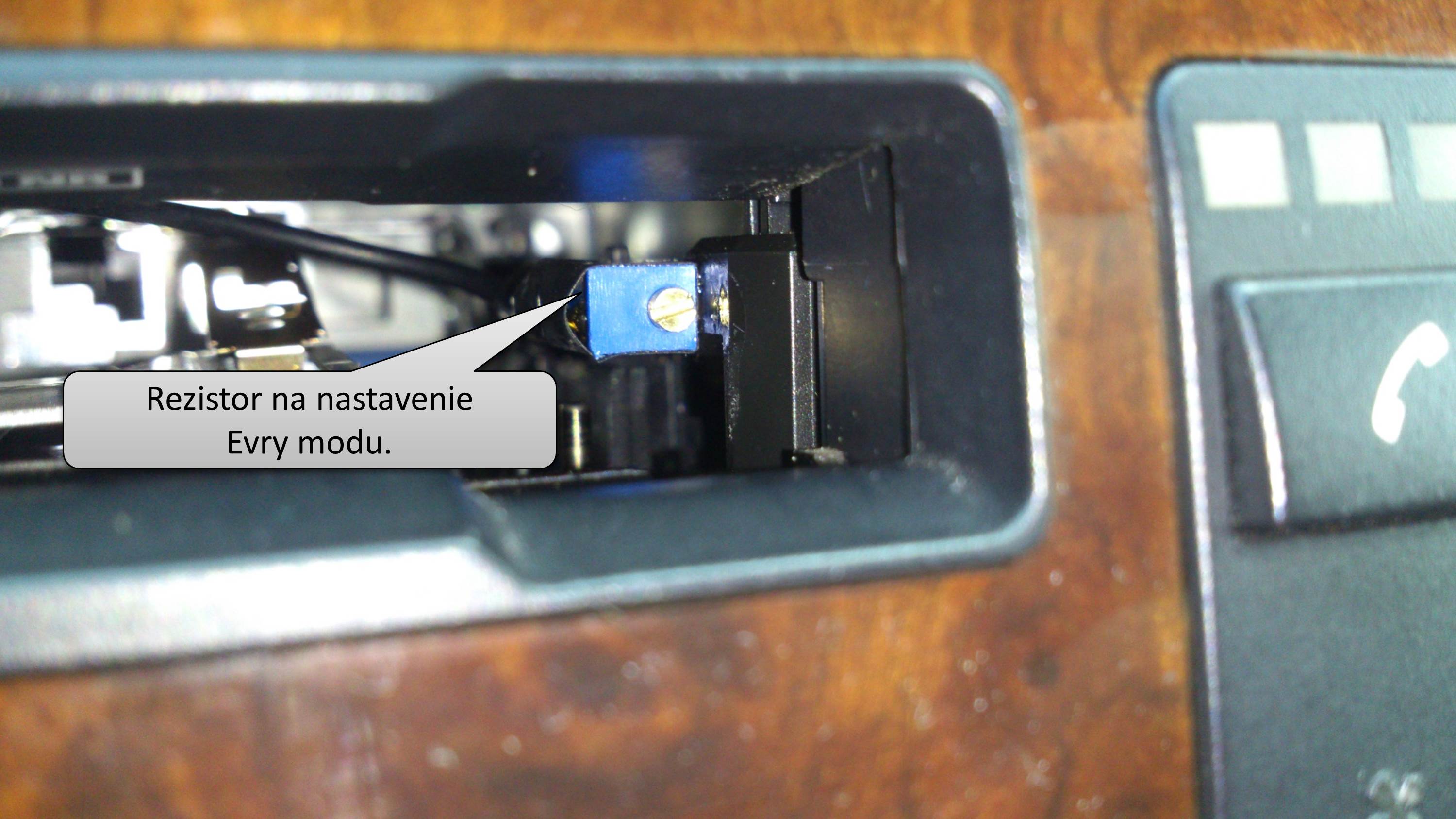 Aby som v prípade potreby prenastavenia hodnoty rezistora nemusel zhadzovať celý BM, prilepil som rezistor do priestoru pre kazety a teda stačí mi len odklopiť krytku a šrobováčikom naladiť požadovanú hodnotu.