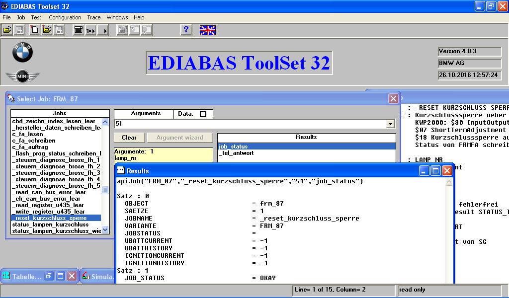 2/ spustte EDIABAS ToolSet 32 (Tool32)