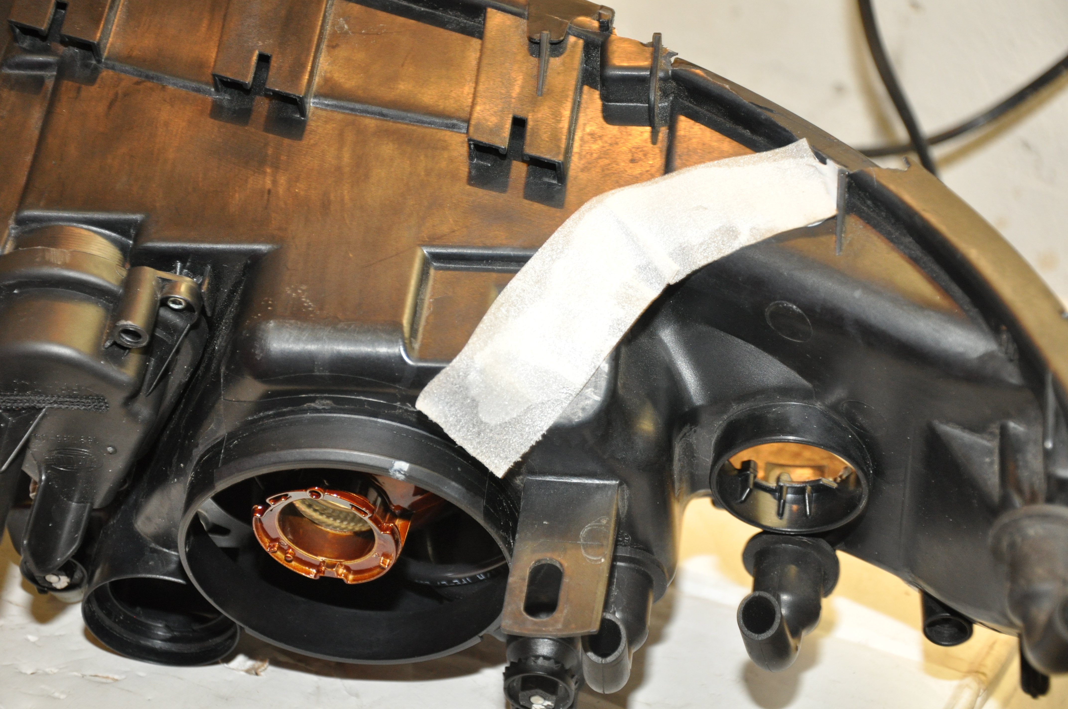 Nepríjemné tušenie sa potvrdilo a to, že srna, ktorá rozbila plexi kompletne rozhasila svetlo. Vonkajší obal bol lepený akrylátovým lepidlom a následne z oboch strán ešte poistený bielym polyuretánovým tmelom. Podobne sa postupovalo aj s projektorom xenónov, ktorý bol vo svetle už iba voľne "položený". Odlomený úchyt motorčeka ďalšie drobnosti sa takisto lepili a poisťovali aby sa do svetiel nemuselo liezť opäť.