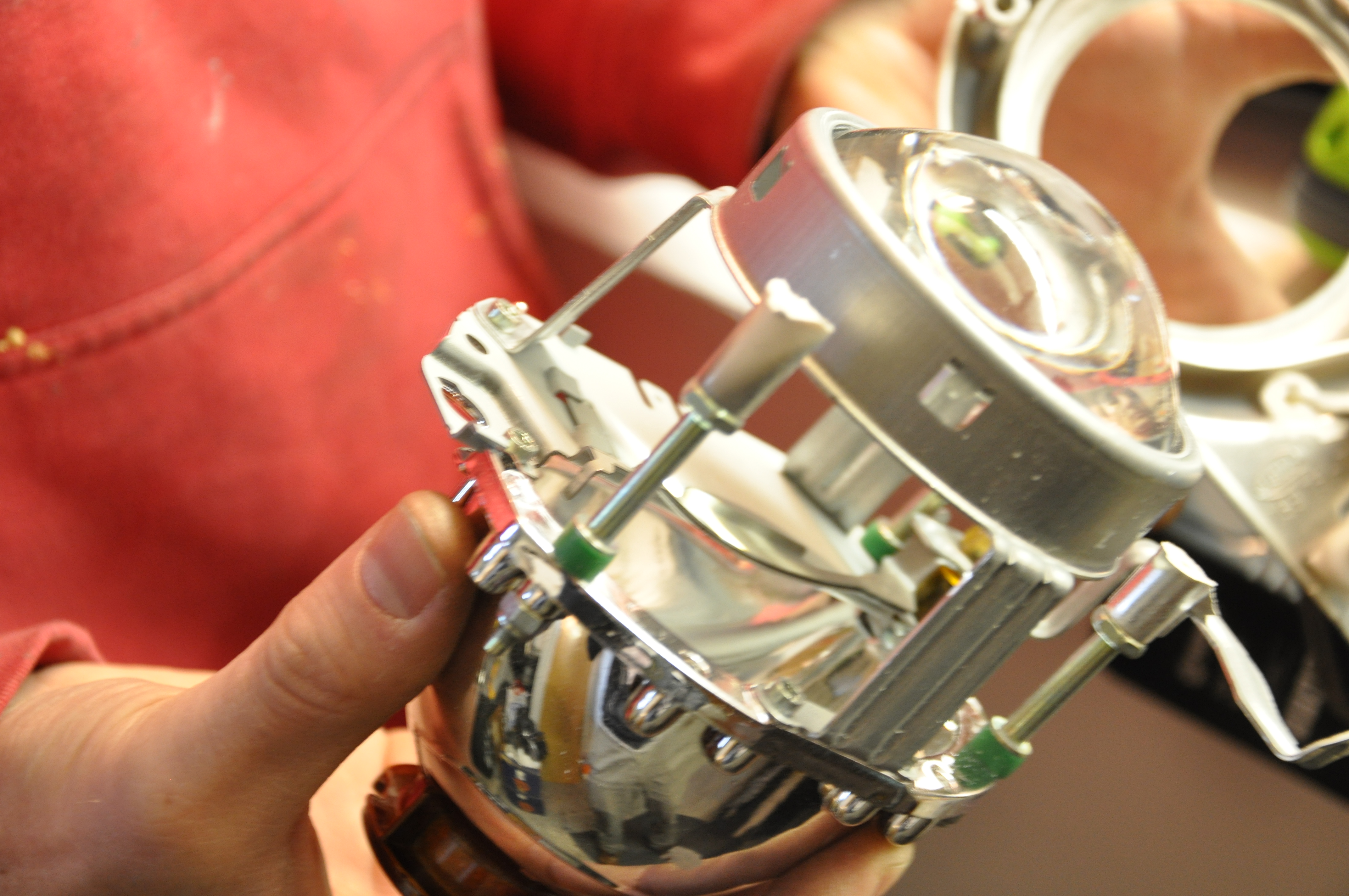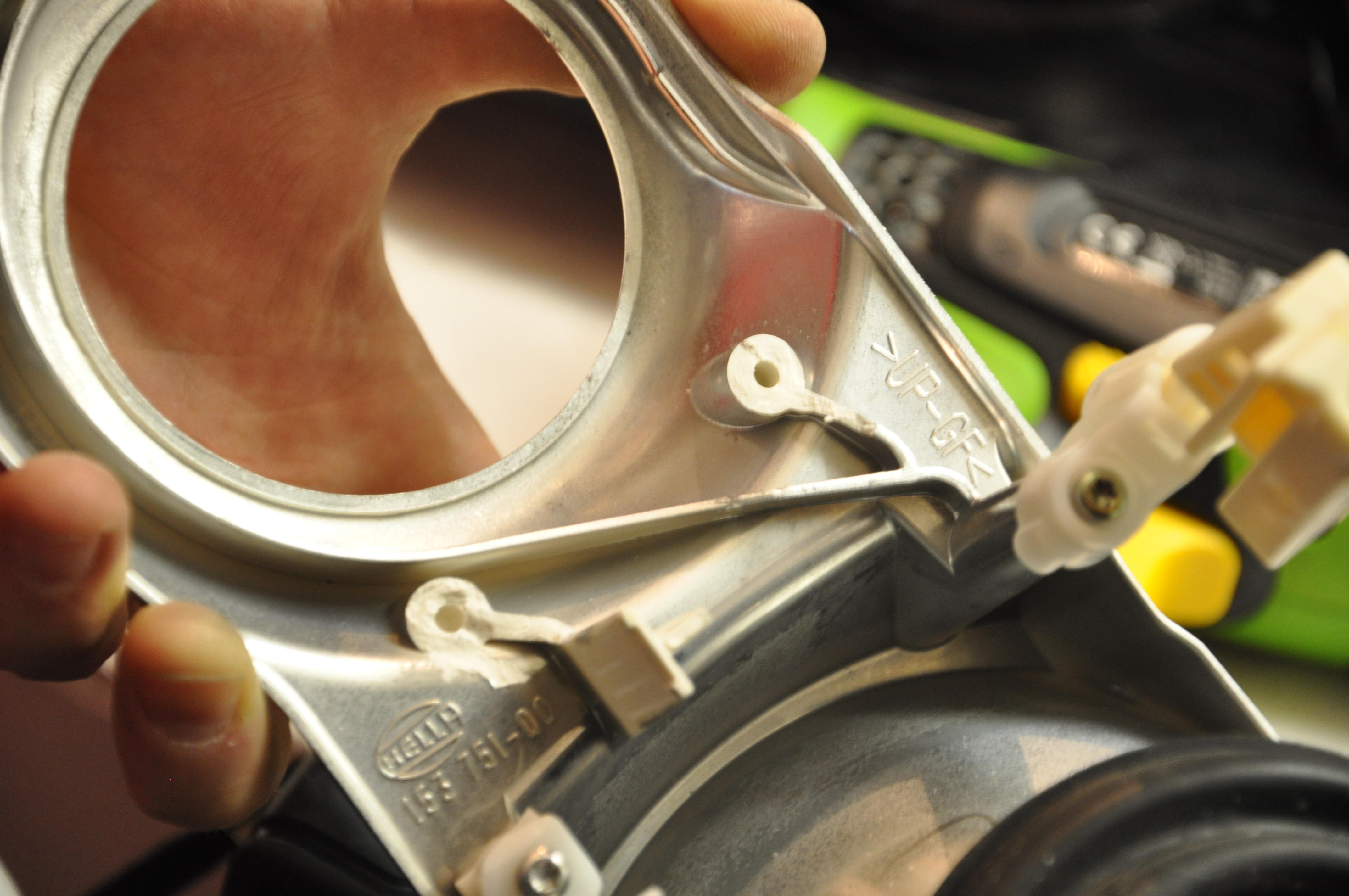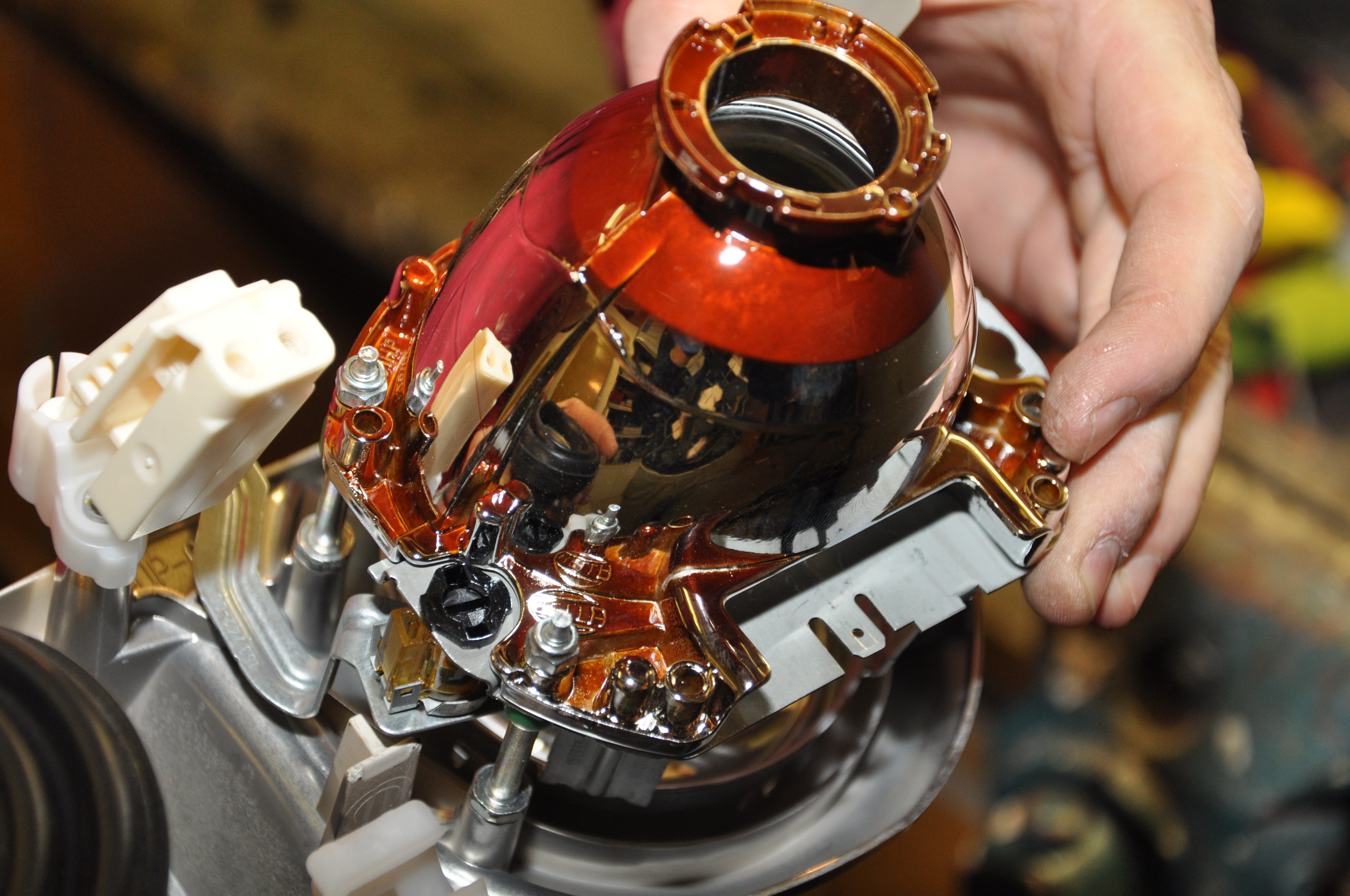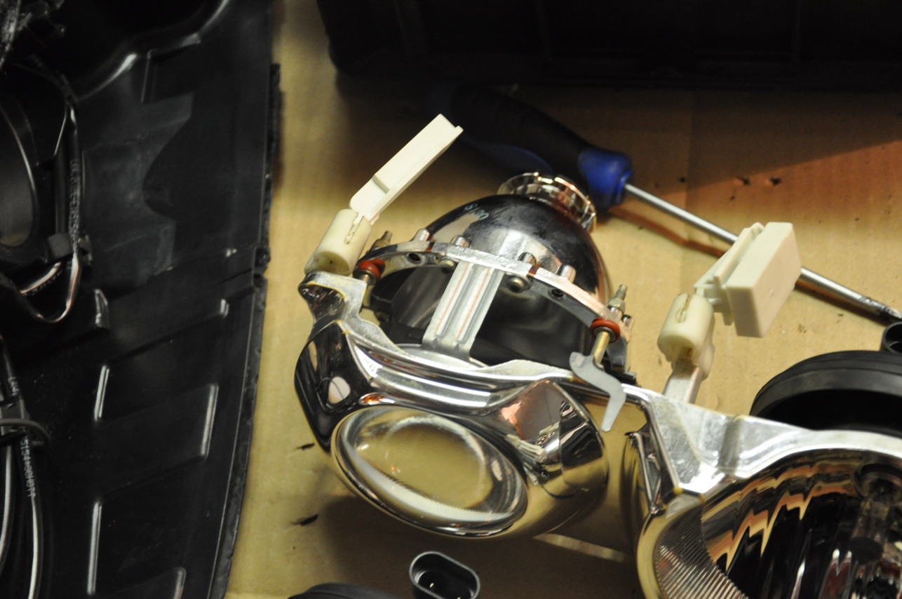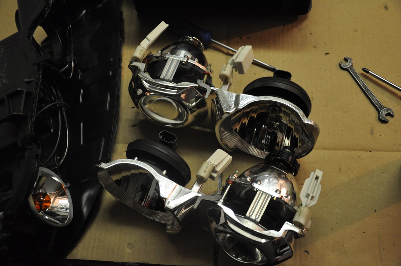 Tu musím pochváliť kvalitu projektorov. Šošovky ako je vidieť na foto po očistení liehom vyzerajú ako úplne nové. Rovnako aj odrazové plochy vnútri v parabole projektoru. Celkovo je výkon svetiel s novými výbojkami PHILLIPS 85122+ veľmi slušný. (bixenónový projektor z toho dôvodu neprešiel ako opodstatnený výdavok)