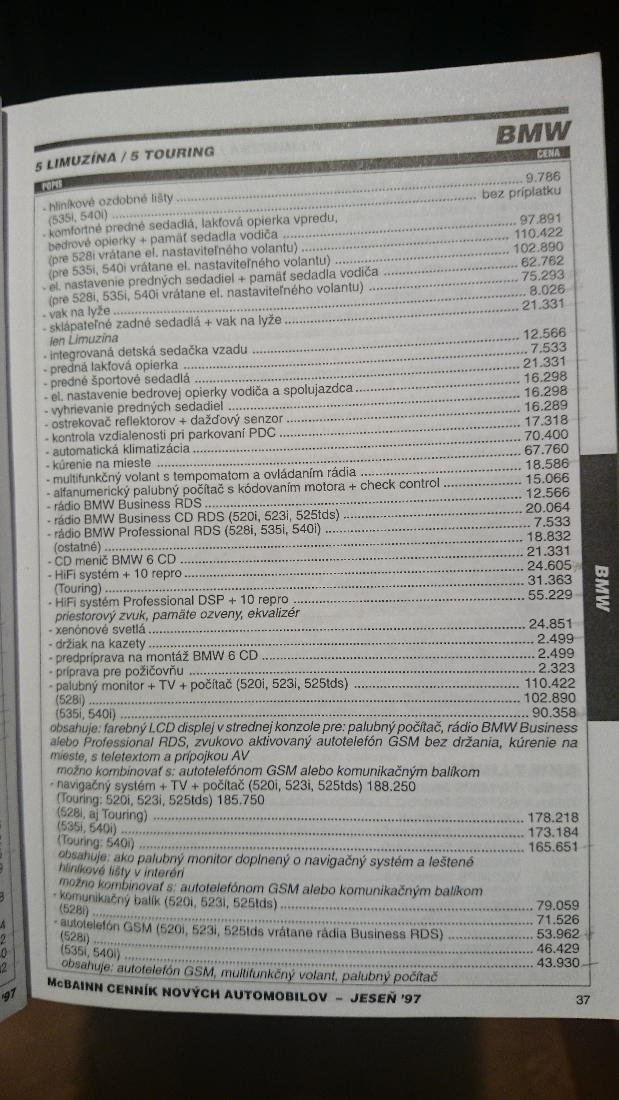 sinedko mi posielal cennik e39 a cennik priplatkovej vybavy este v korunach... skuste jeho poprosit...