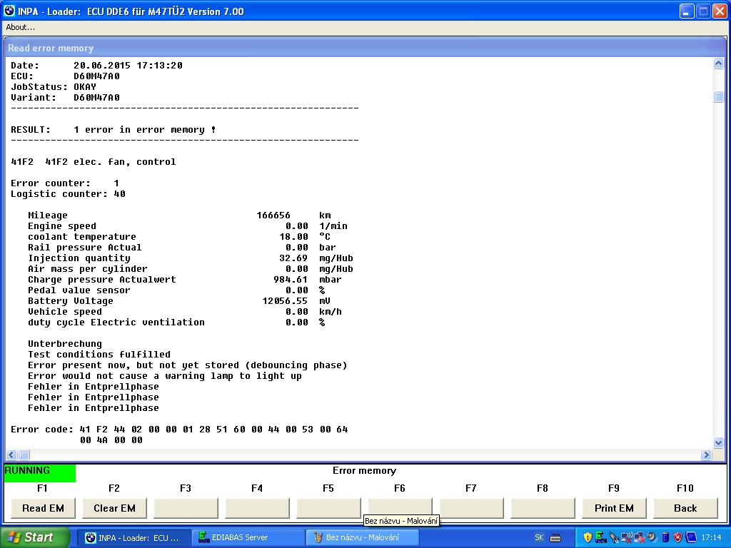 Diagnostika mi vypisuje chybu 41F2 a potrebujem radu či už sa niekto s niečím podobným stretol a ako to vyriešil.