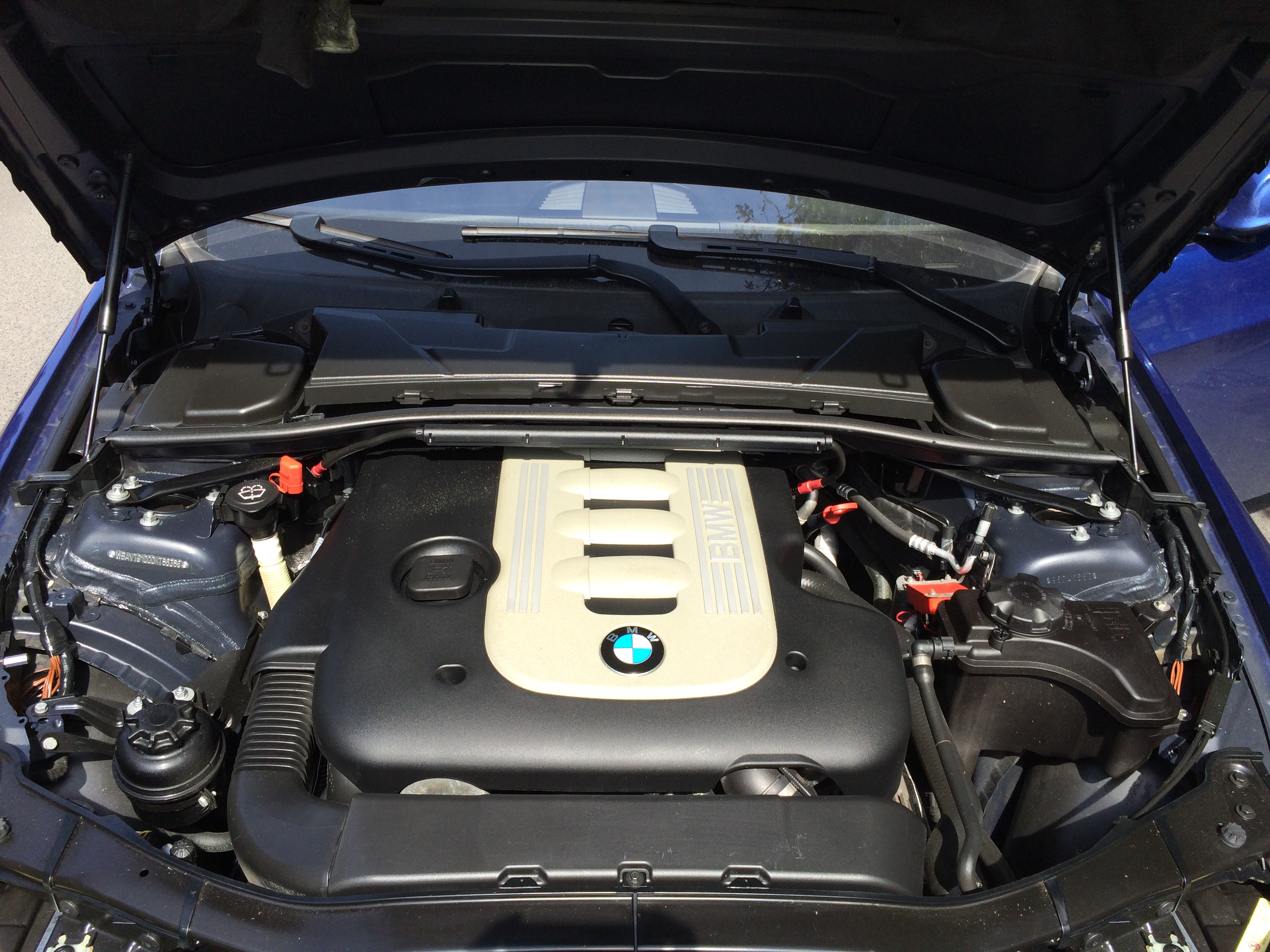 Čo sa týka jazdy oproti E46. To je úplne o inom, iné sedenie, iný volant, iná spojka a mnoho iného. človek si ale rýchlo zvykne. Radosť z jazdy ostala a môžem povedať že je ešte väčšia. Čo ma prekvapilo boli brzdy. Tie nakoľko majú zodraté kotúče (podľa servisu) brzdia neskutočne citlivo proti E46. Jedinú výhradu mám voči výkonu. Ale asi to je len môj pocit. V starom 330d (bol chip na 250k) keď som šliapol na pedál pri 2000 už ma zatláčalo do sedadla a pri 3 - 4 tis. ot. sa to auto bralo neskutočne dopredu. Tento motor má taký plynulý nábeh že si ten výkon človek ani neuvedomí. Ale asi to je len tým že má iný graf výkonu od otáčok.