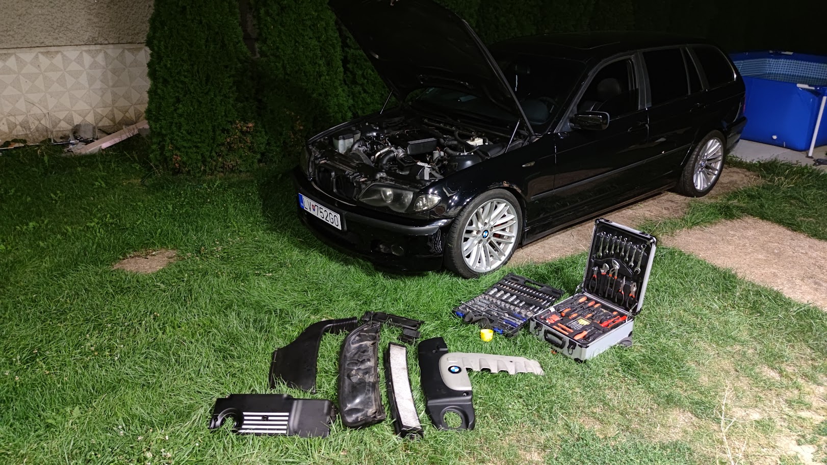 A keďže som mal ísť s priateľkou na týždeň preč tak kedy je ideálny čas robiť auto? No predsa deň pred odchodom v noci, na dvore